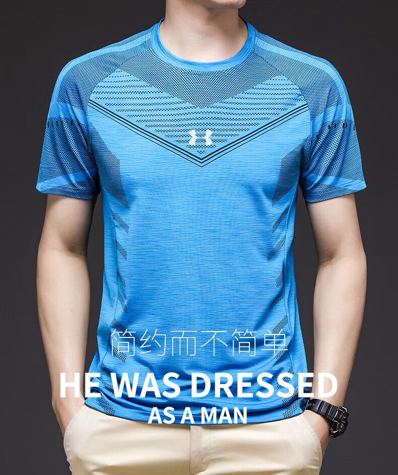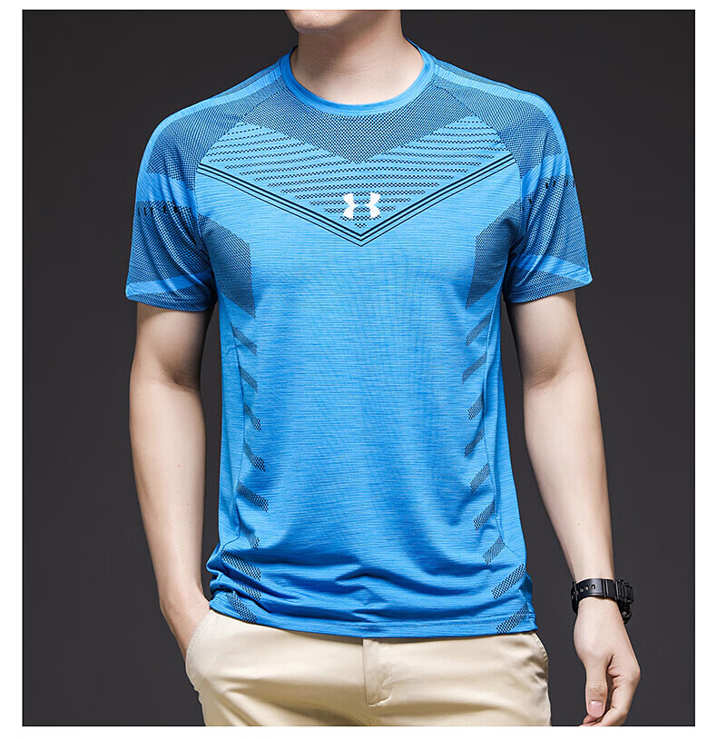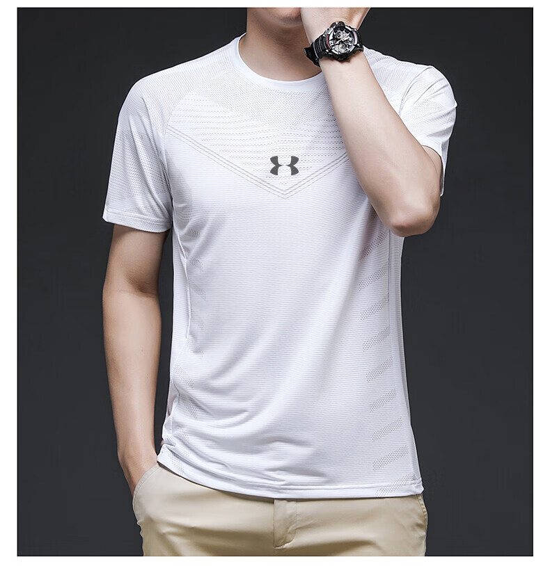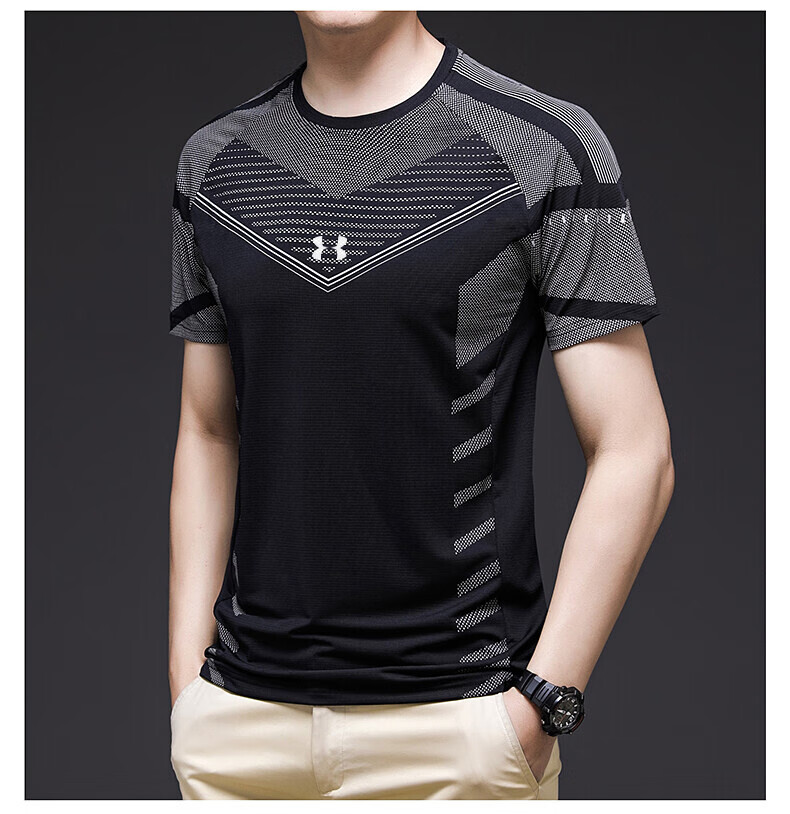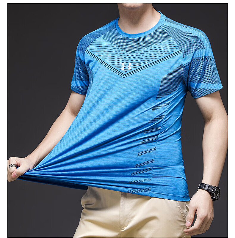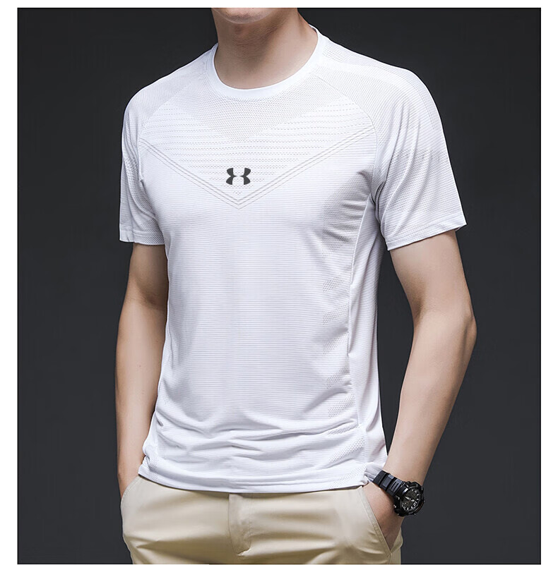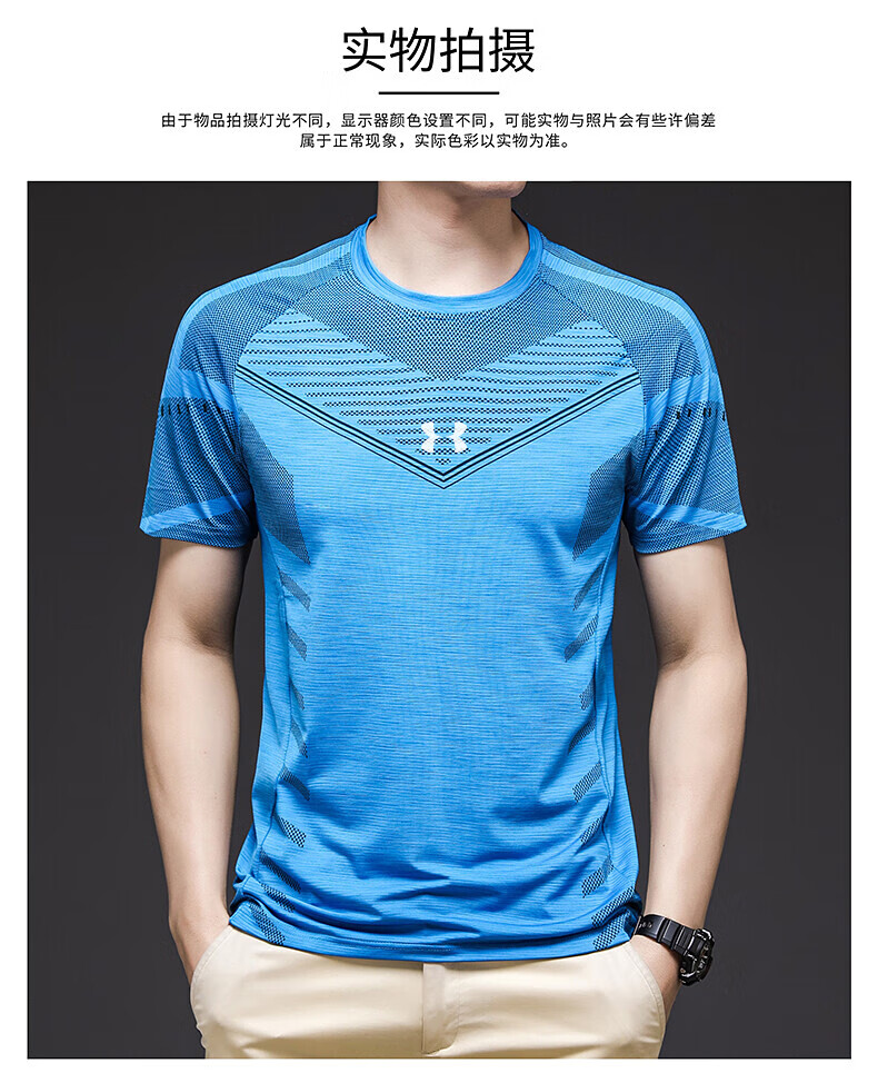 运动短袖t恤男冰丝跑步健身速干衣男士圆领上衣夏季宽松半袖体恤 UA702063绿灰 3XL(170-185斤)