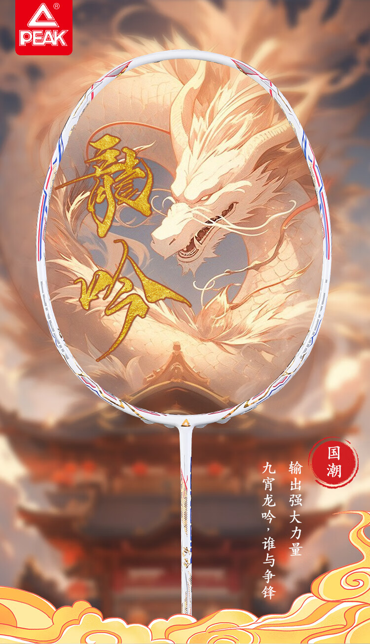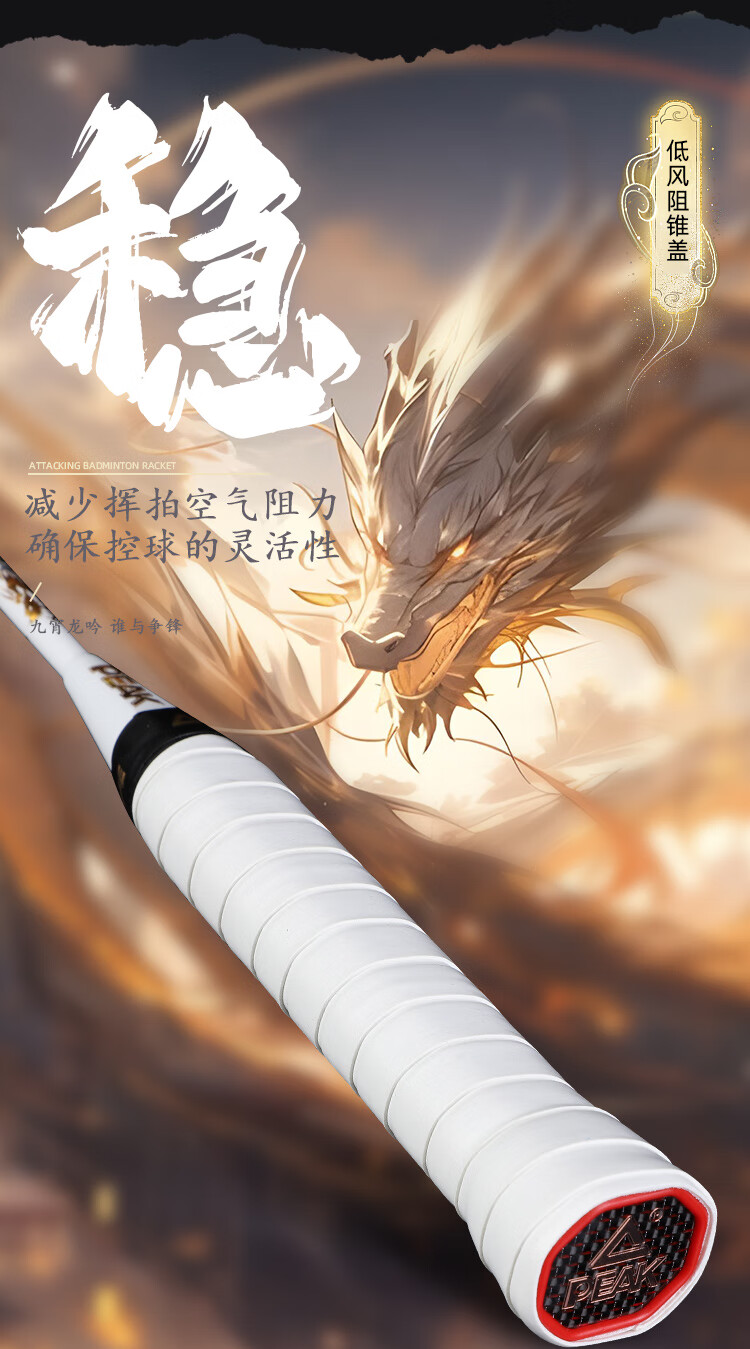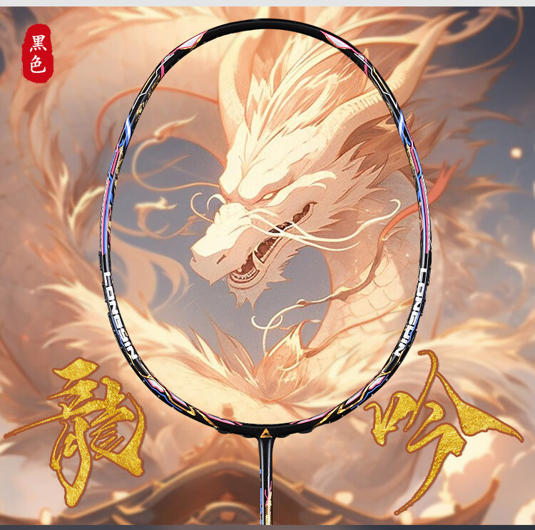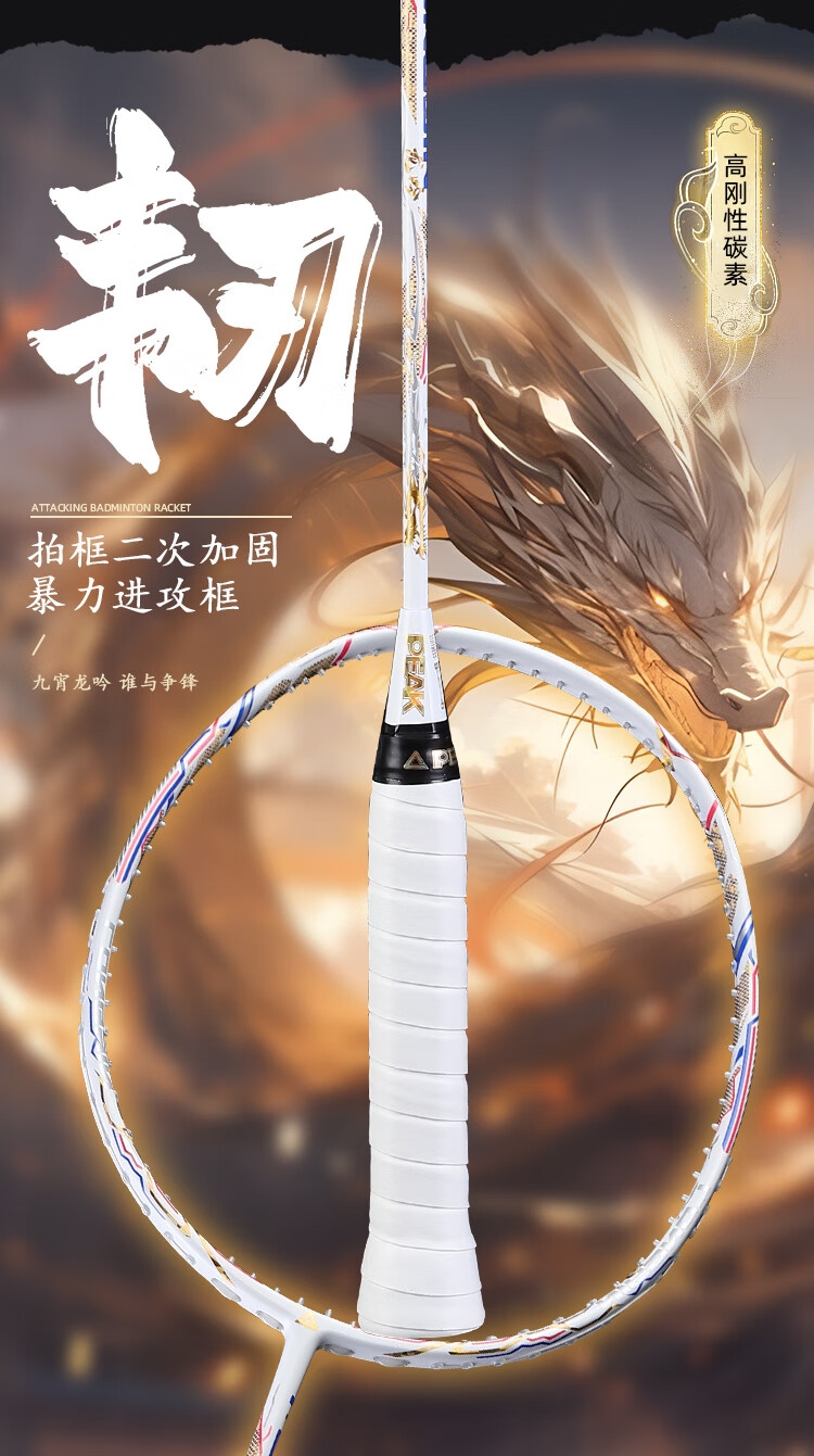 PEAK匹克全碳素纤维羽毛球拍5U超轻进攻型专业男女学生高弹力耐打单拍 国潮龙吟5U黑色-单拍 28磅(专业中级)