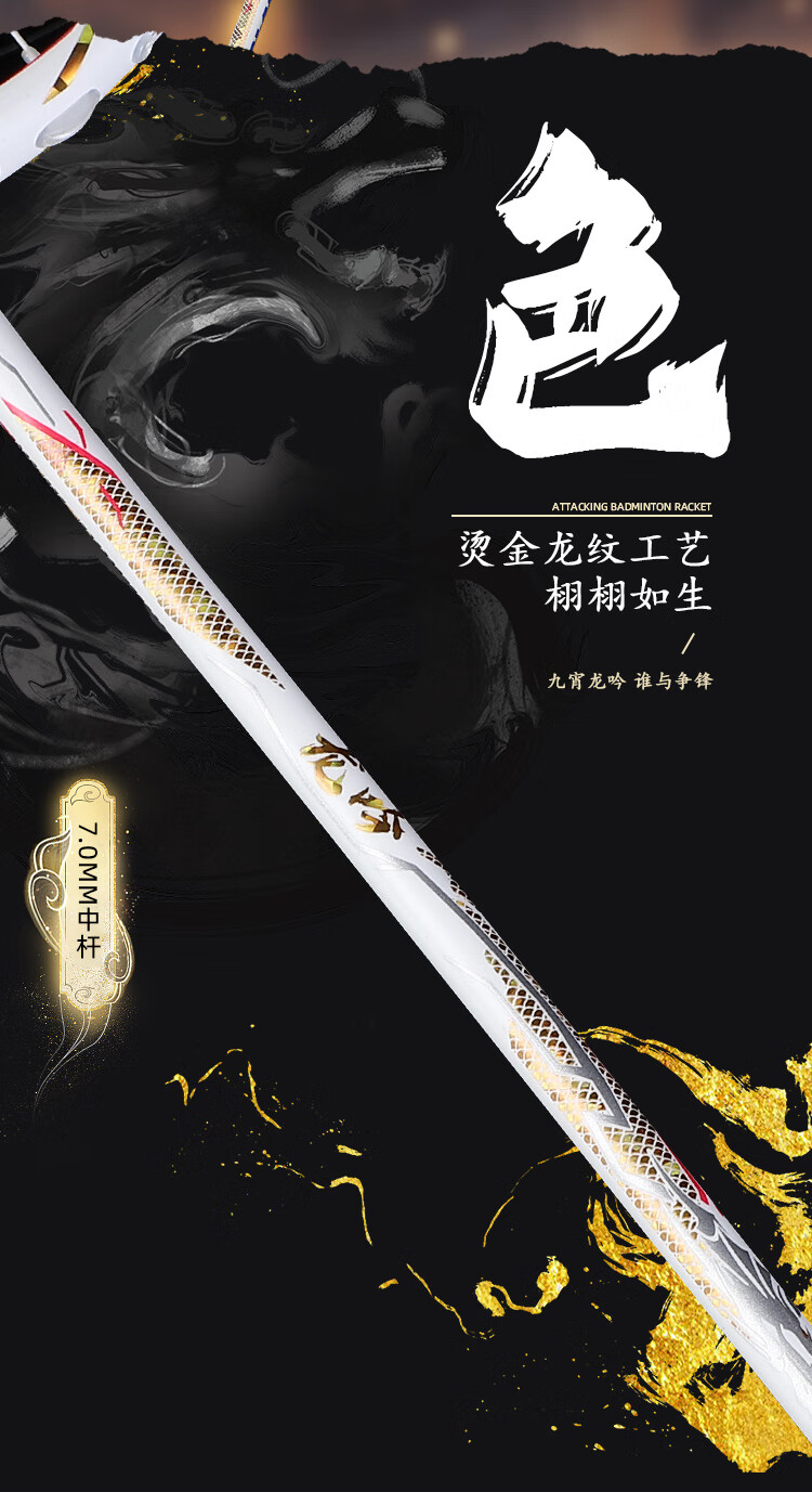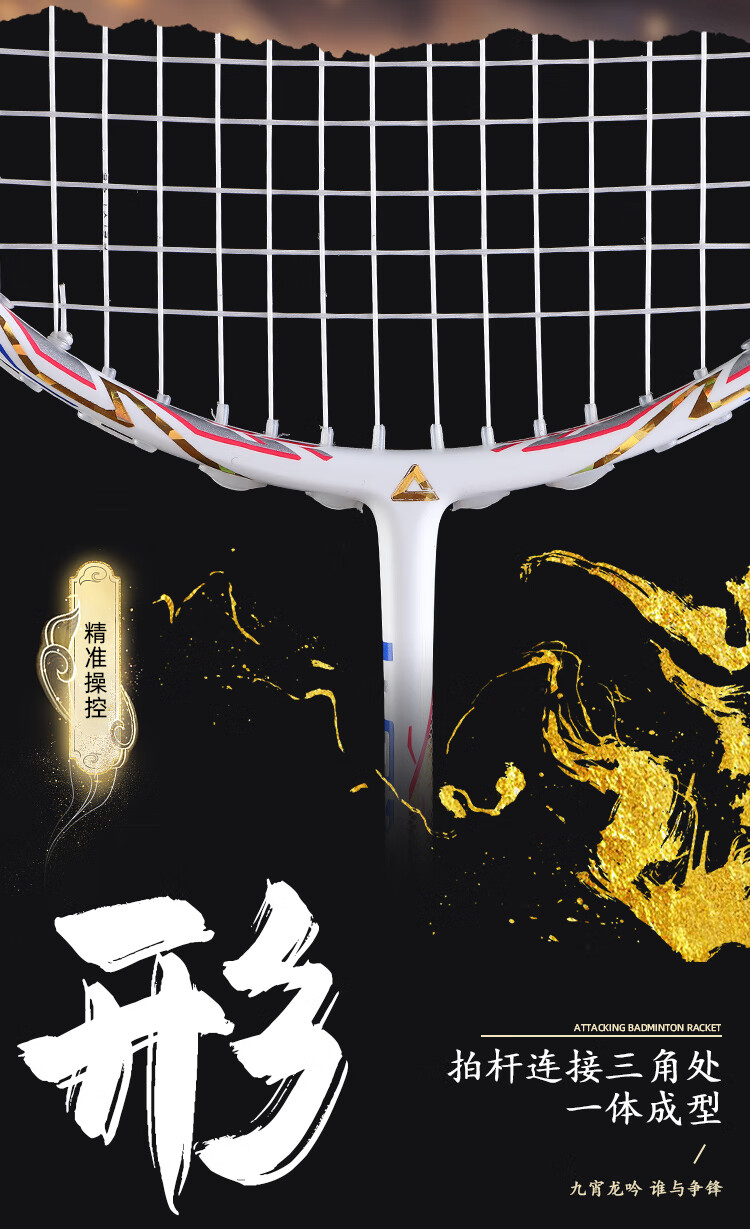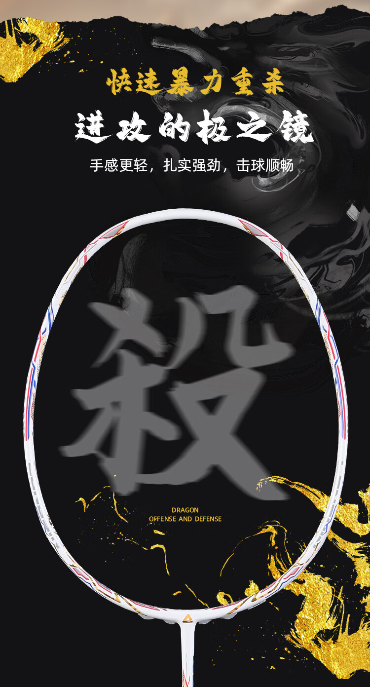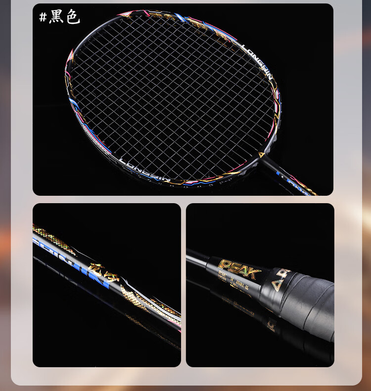 PEAK匹克全碳素纤维羽毛球拍5U超轻进攻型专业男女学生高弹力耐打单拍 国潮龙吟5U黑色-单拍 28磅(专业中级)