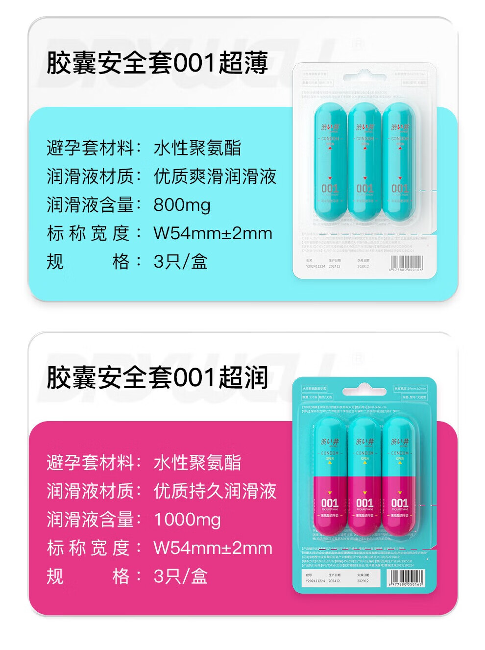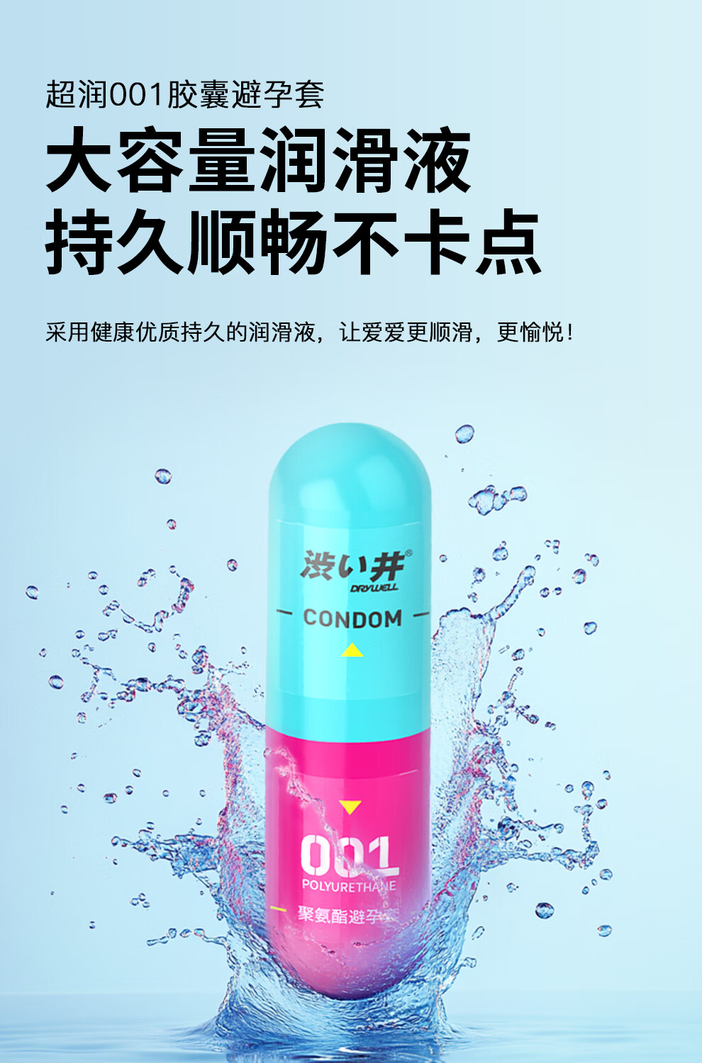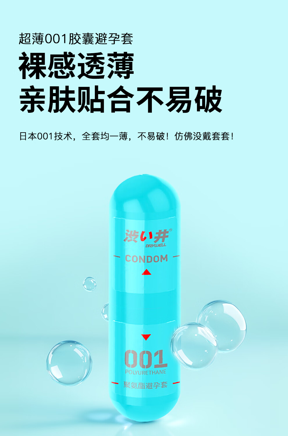 涩井日本涩井胶囊001超薄避孕套新款隐形祼入聚氨酯安全套套 0.01避孕套 超爽3只 日本涩井胶囊水性聚氨酯