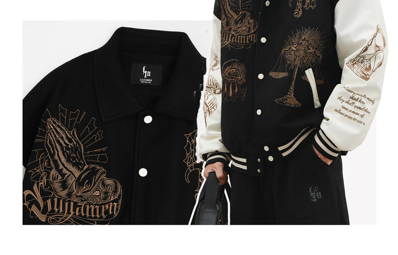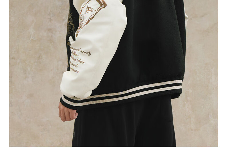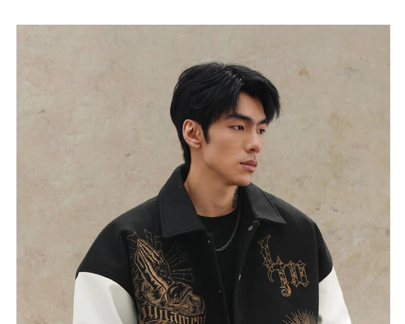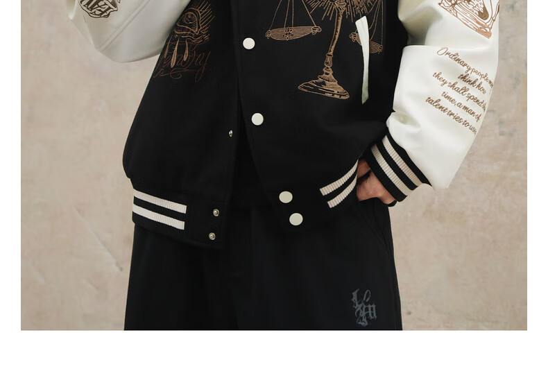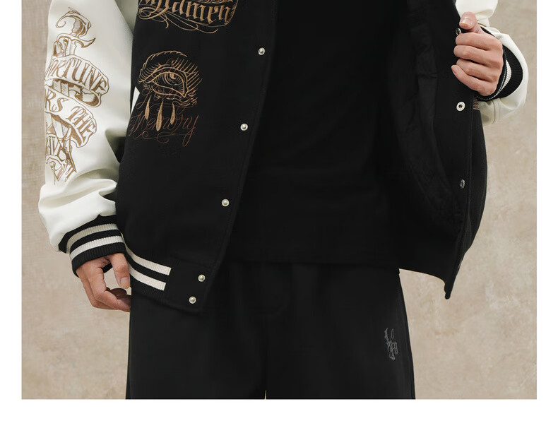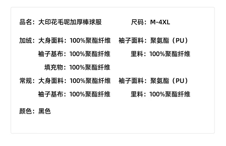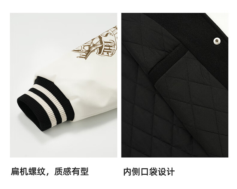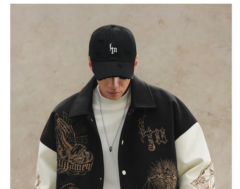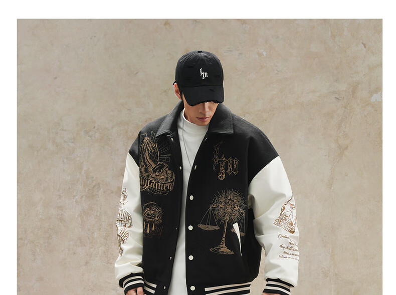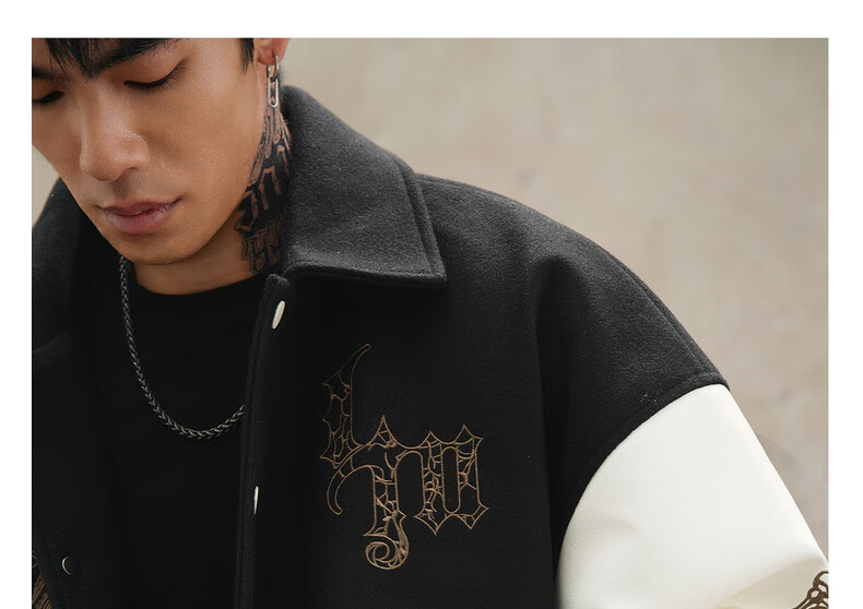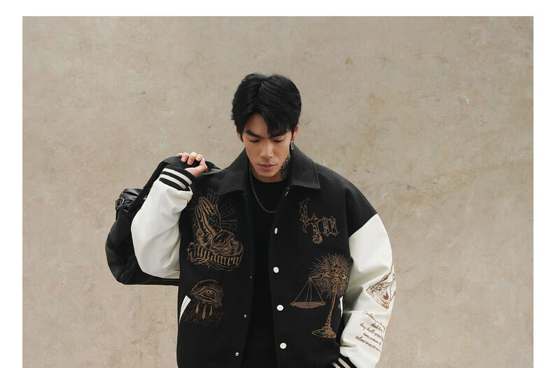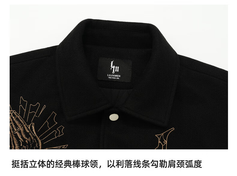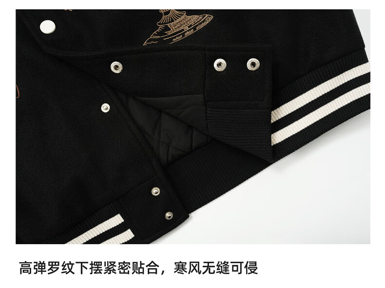 鹿家门原创毛呢加厚棒球服男士秋冬重工运动外套宽松大码保暖棉服 黑色(加棉款) L 推荐140-160斤