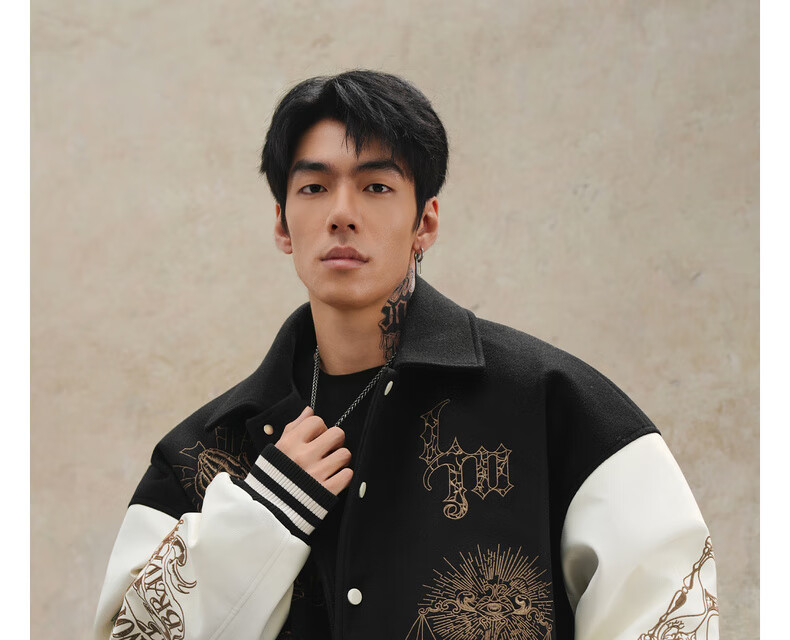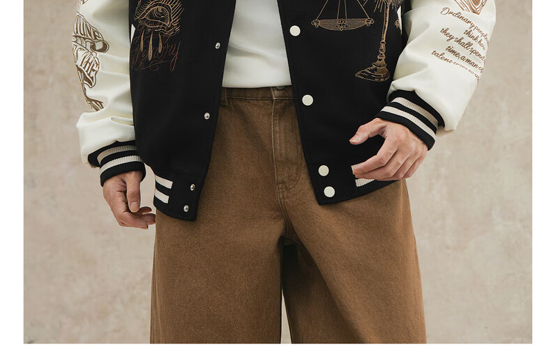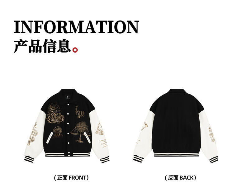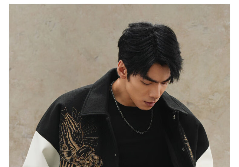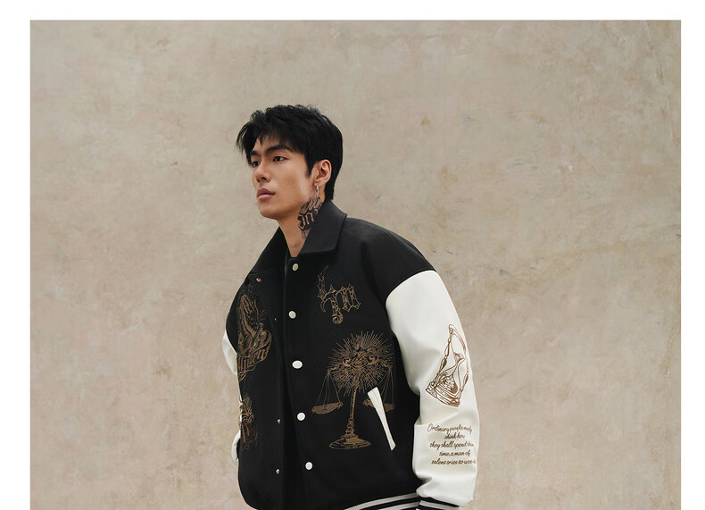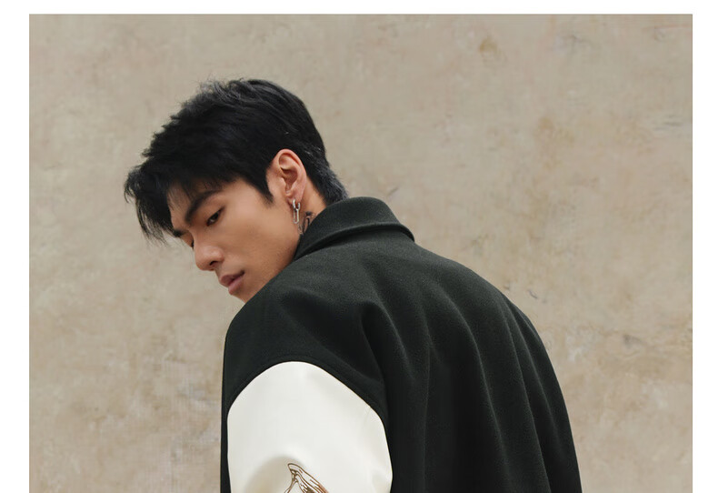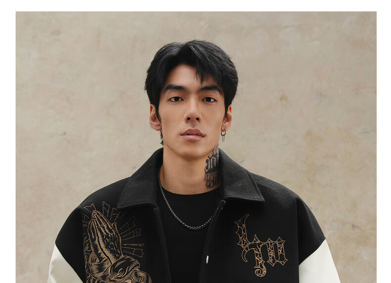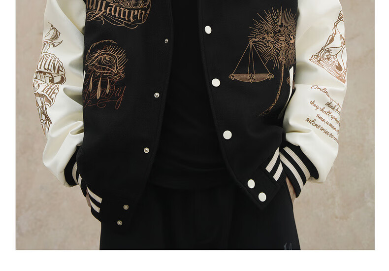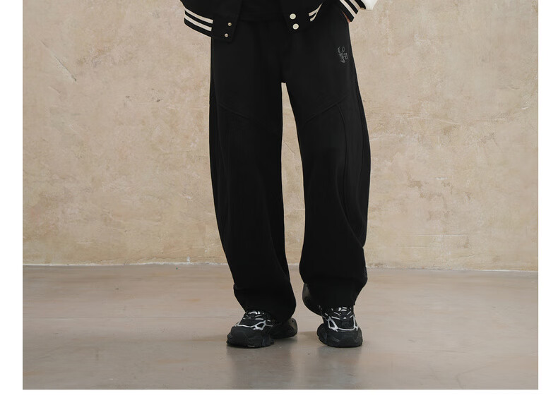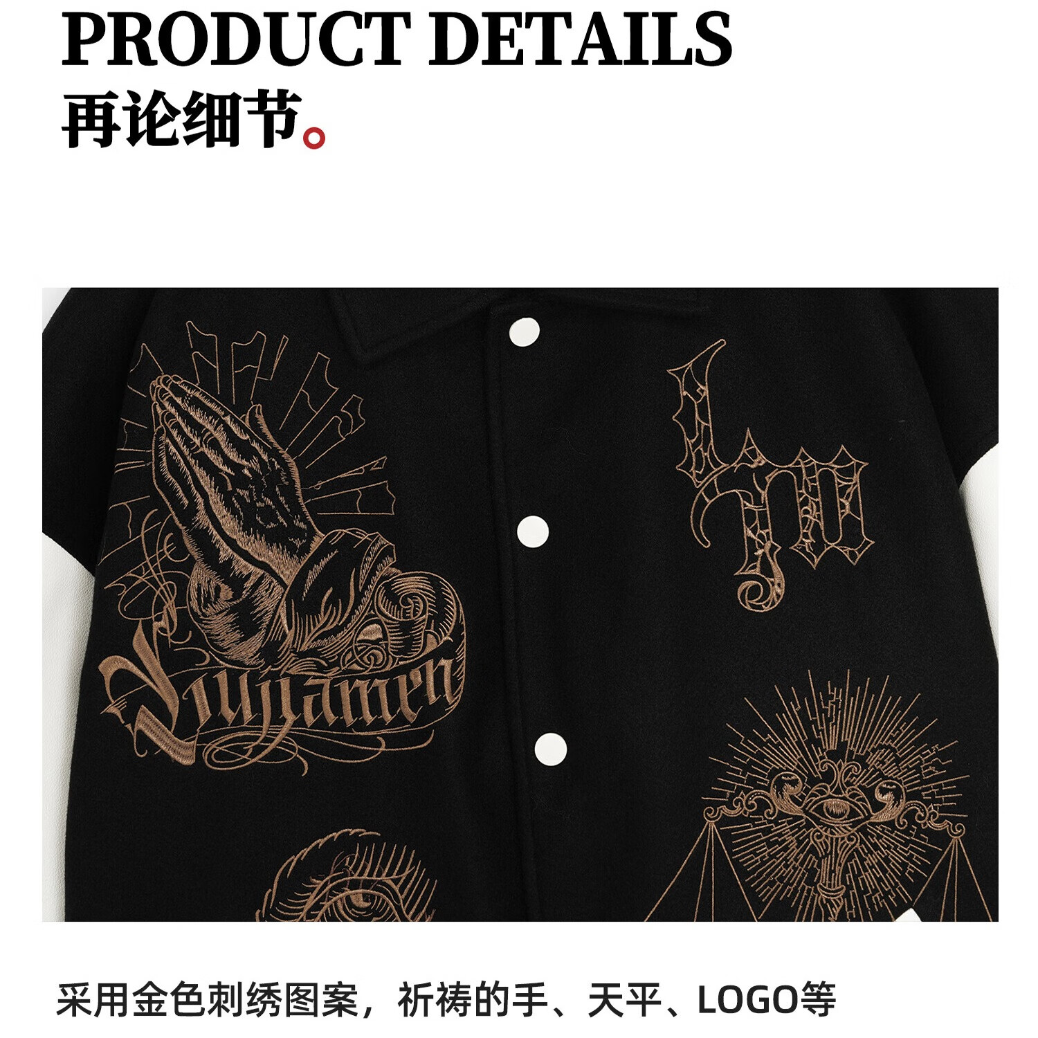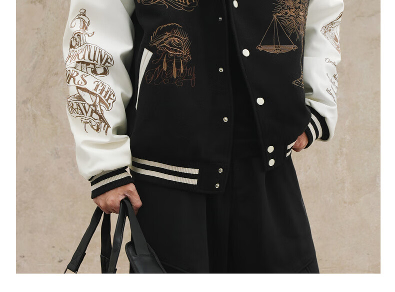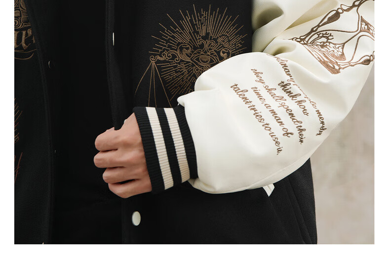 鹿家门原创毛呢加厚棒球服男士秋冬重工运动外套宽松大码保暖棉服 黑色(加棉款) L 推荐140-160斤