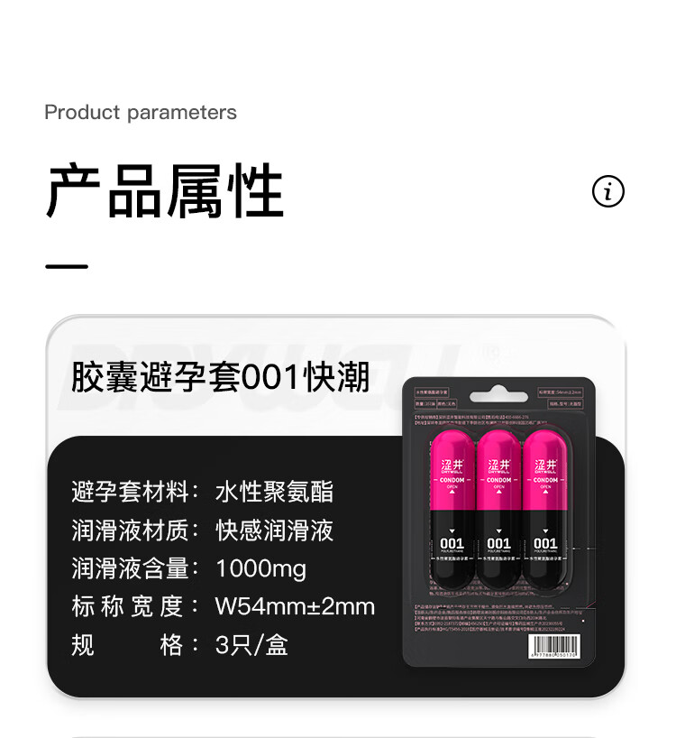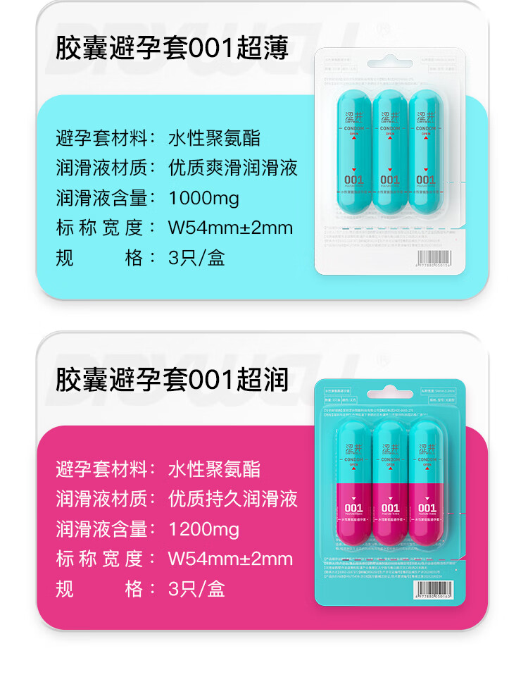 涩井避孕套胶囊001超薄避孕套新款隐形祼入聚氨酯安全套套 超爽3只0.01避孕套 涩井胶囊水性聚氨酯