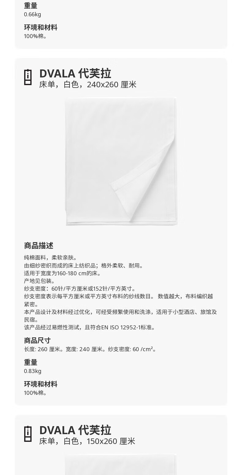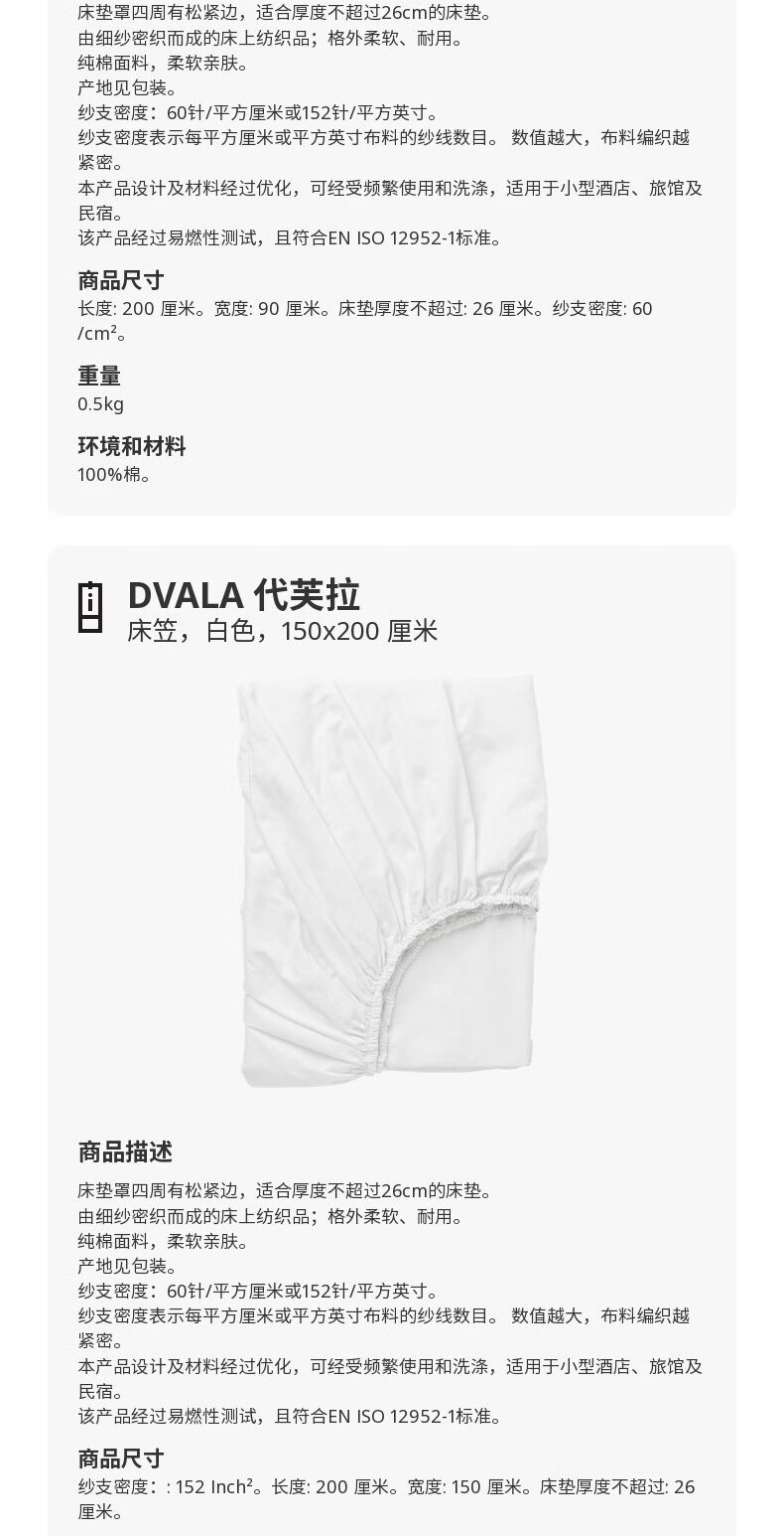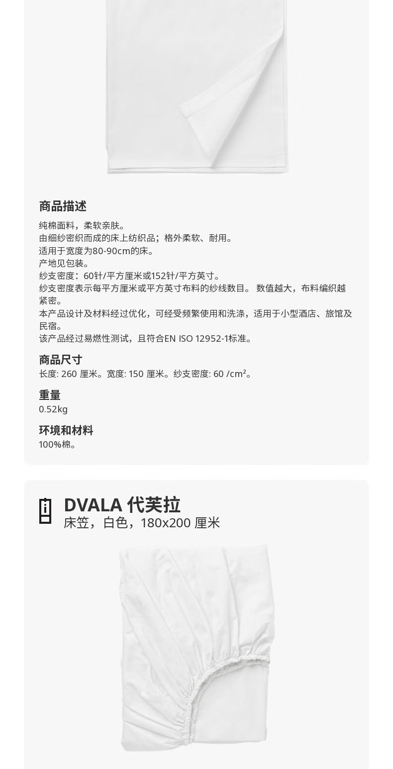 宜家(IKEA)【新品】SCHERSMIN斯奇斯敏被套枕套被套单件纯棉被罩 白色单被套和枕套150X200cm+床笠0.9m床