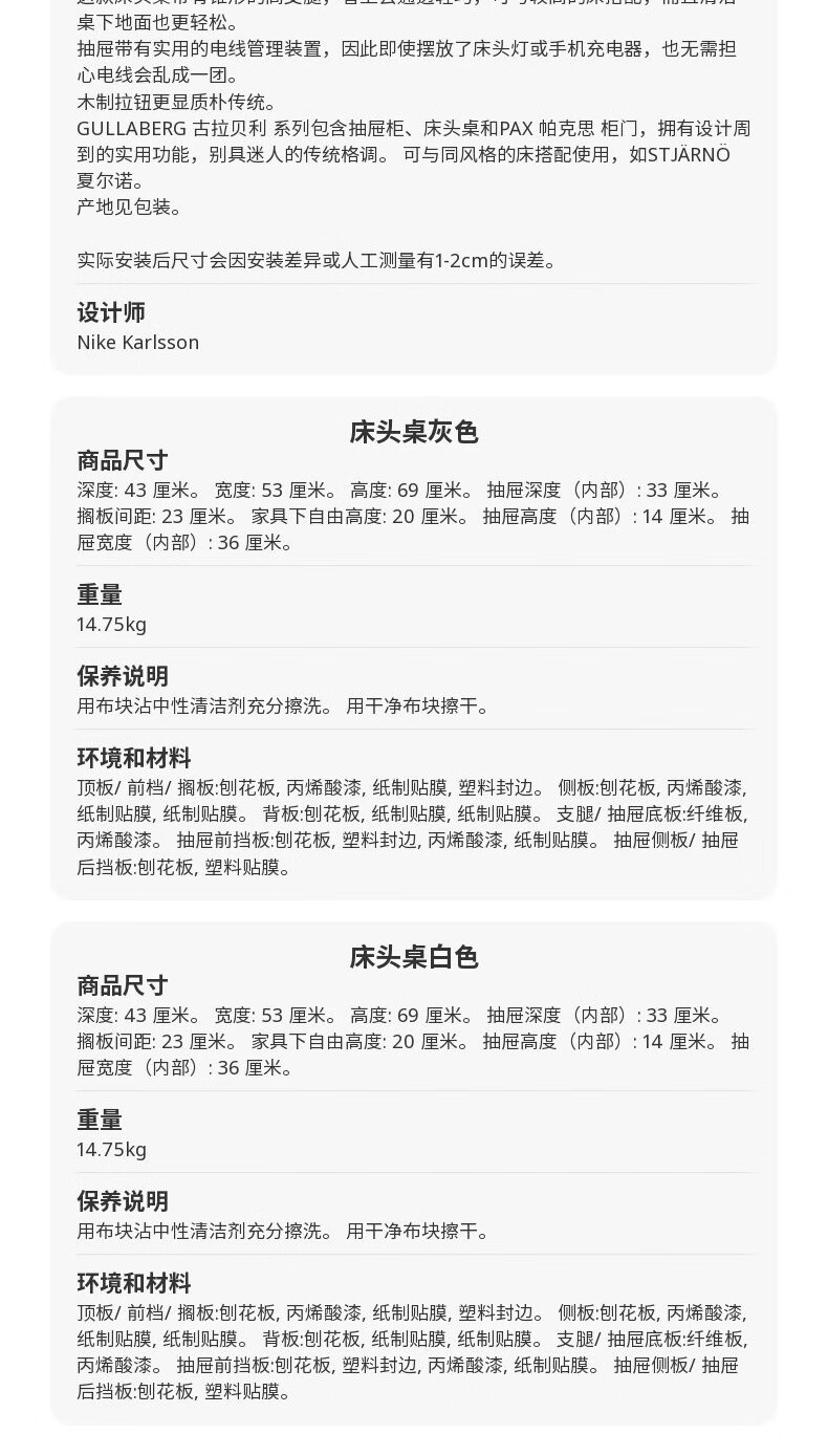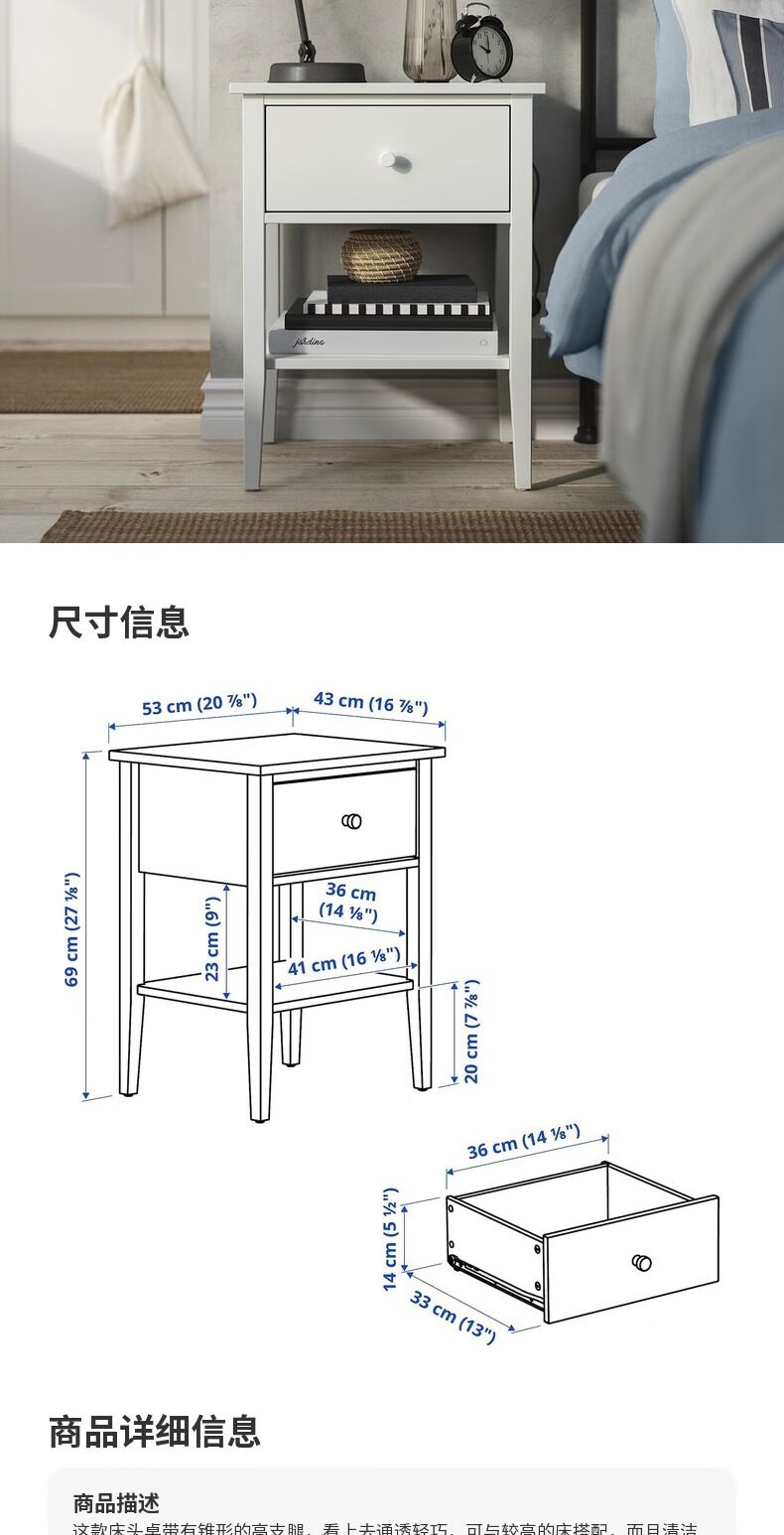 宜家(IKEA)GULLABERG古拉贝利床头桌收纳柜子床边 床头桌白色