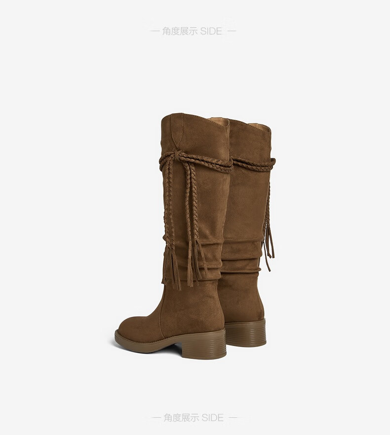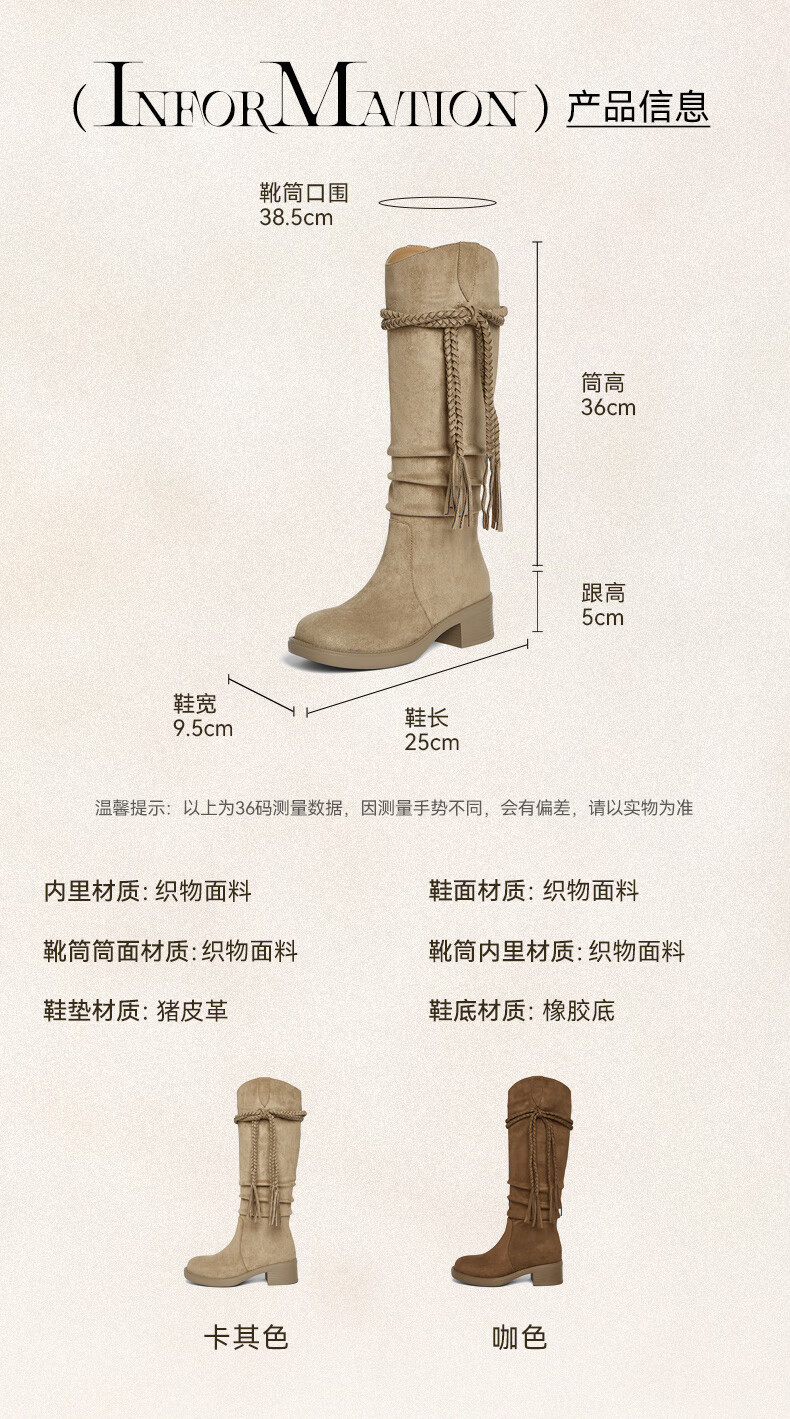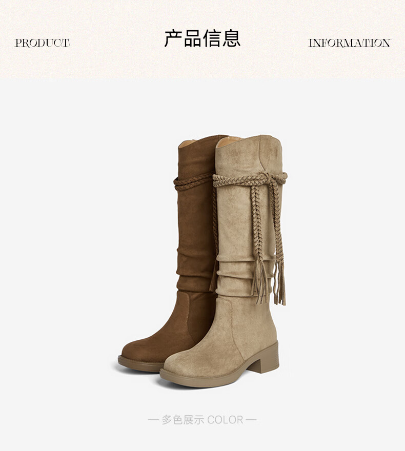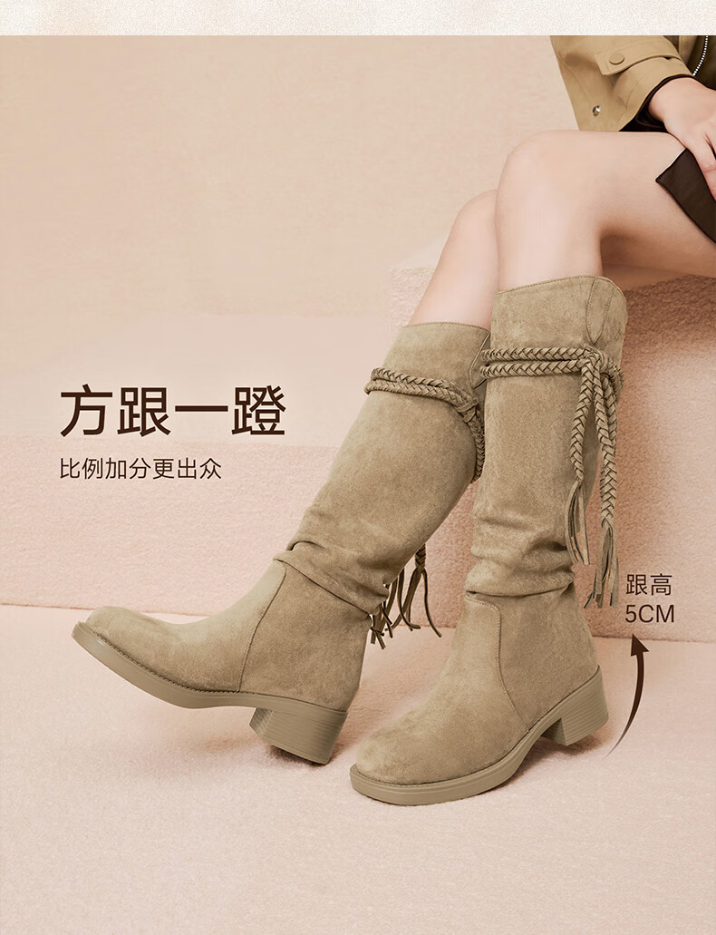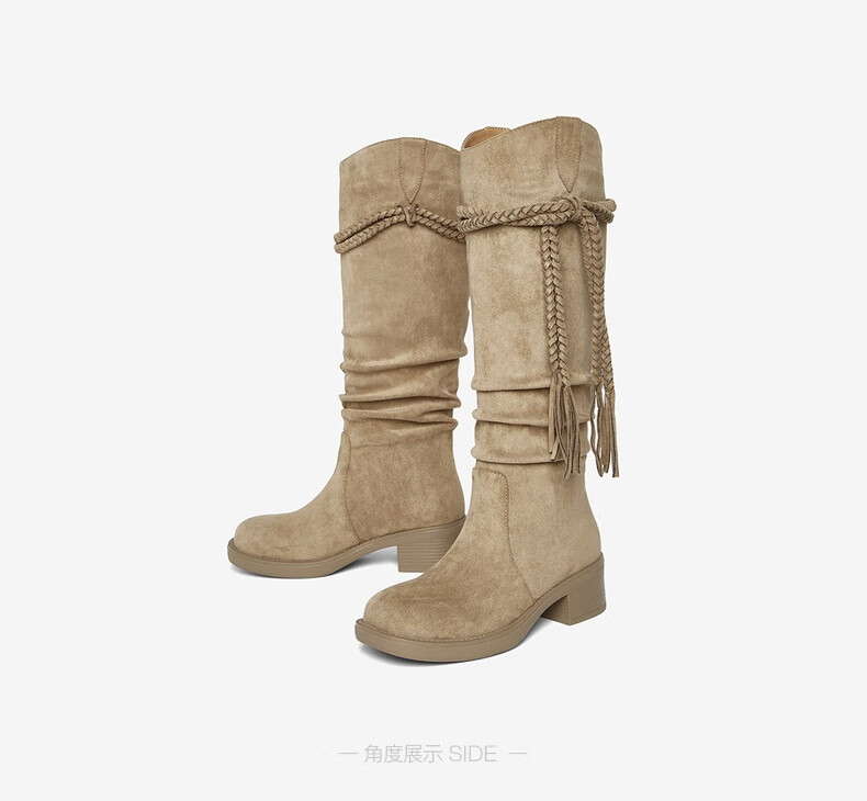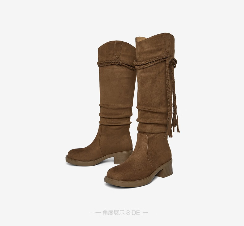 百思图2025冬季新款时尚复古西部靴堆堆长靴粗跟女高筒靴B9200DG5 咖色 37