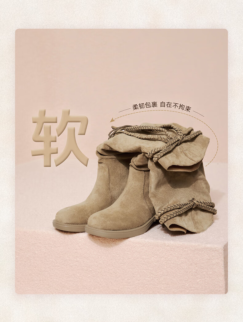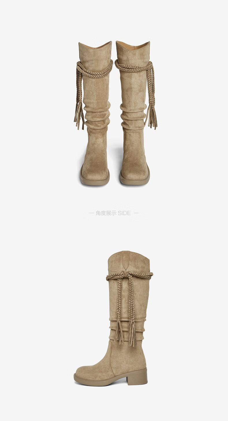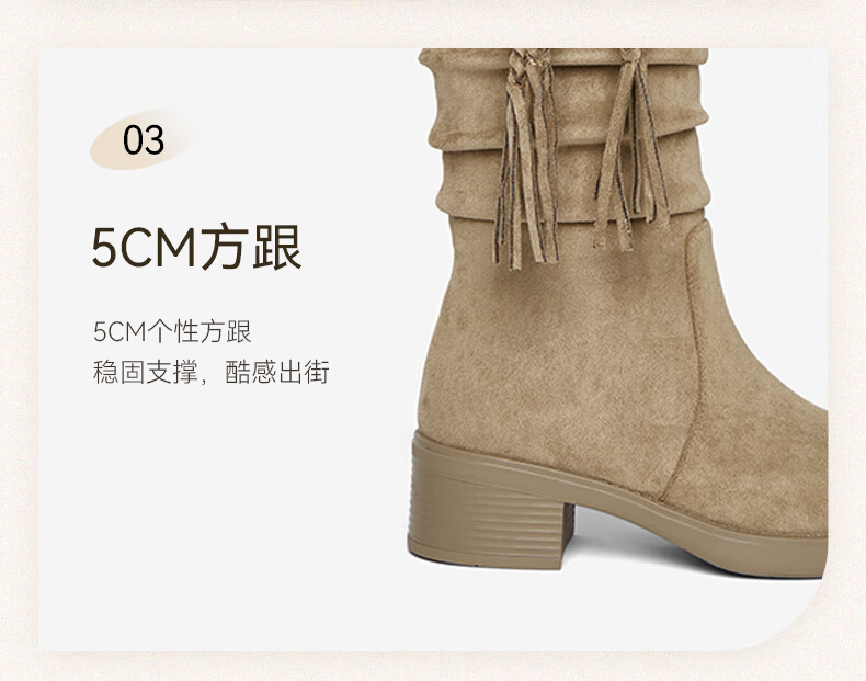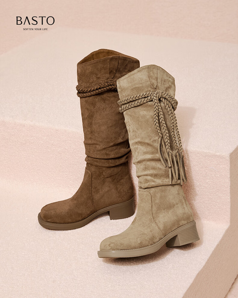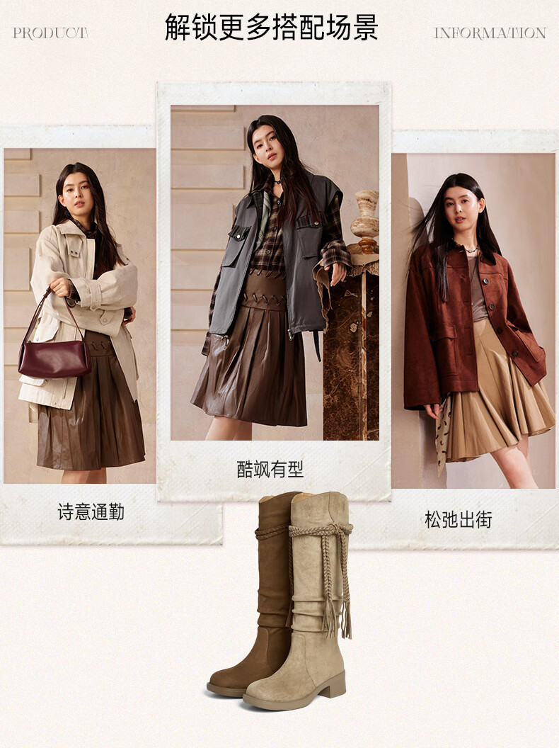 百思图2025冬季新款时尚复古西部靴堆堆长靴粗跟女高筒靴B9200DG5 咖色 37