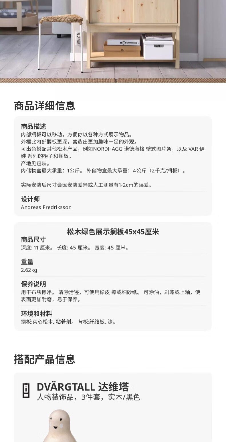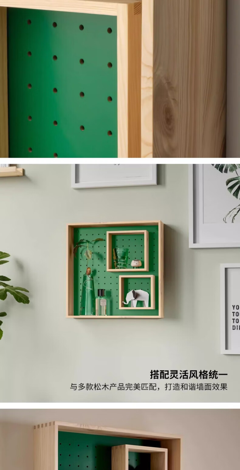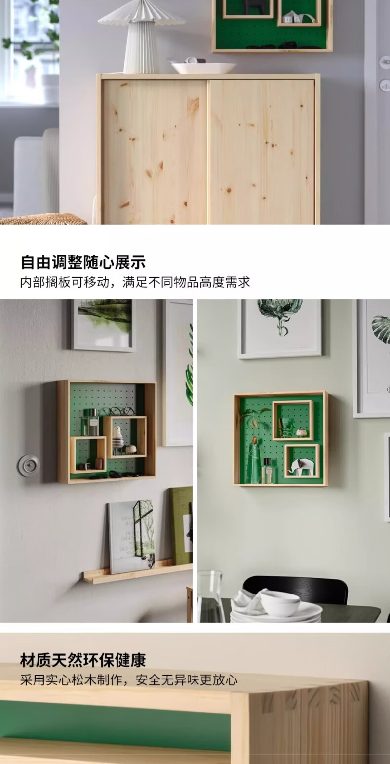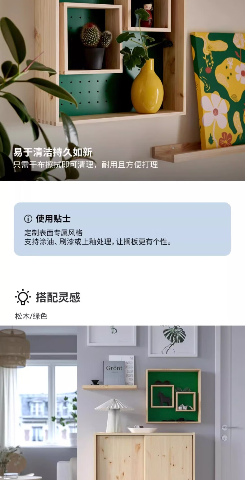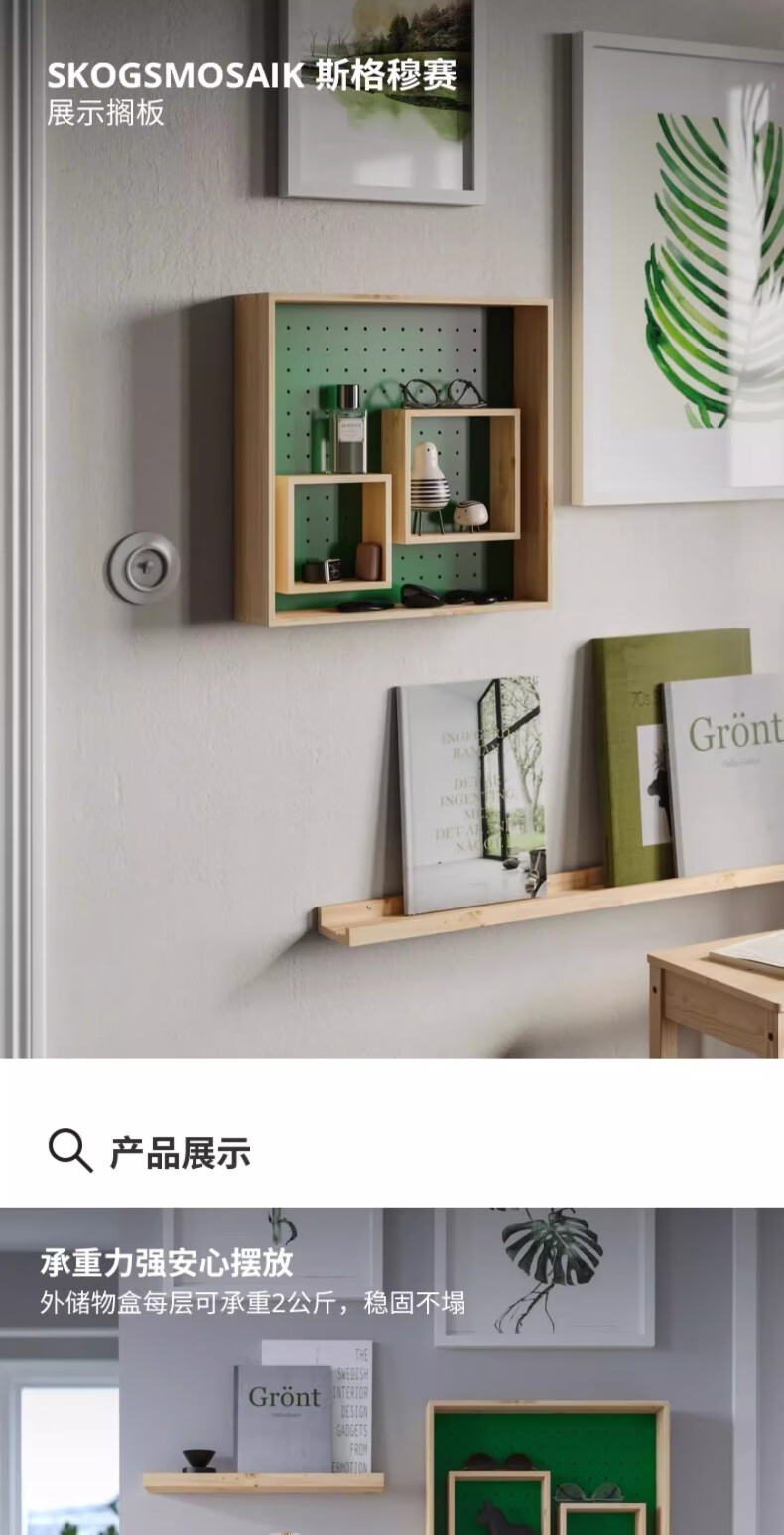 宜家(IKEA)SKOGSMOSAIK斯格穆赛展示墙面家用置物搁板 松木/绿色展示搁板45x45cm