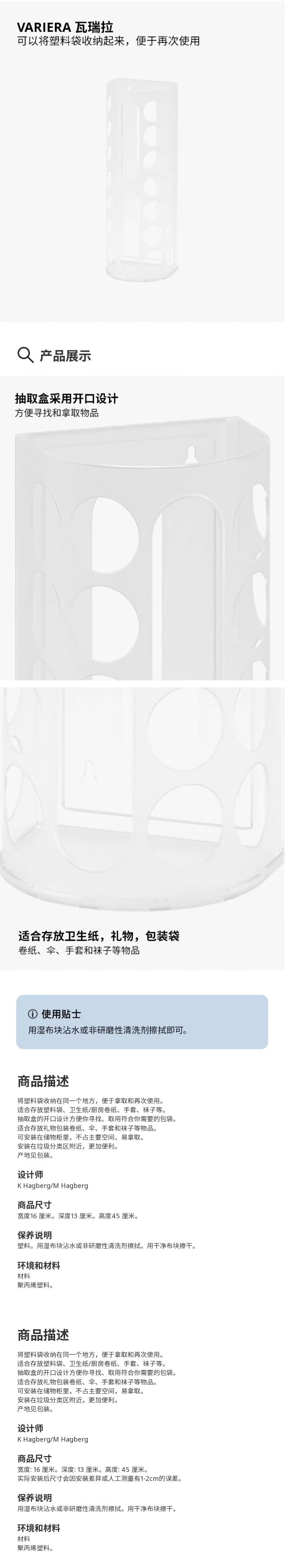 宜家(IKEA)顺手买一件VARIERA瓦瑞拉塑料袋抽取盒 白色 塑料袋抽取盒白色
