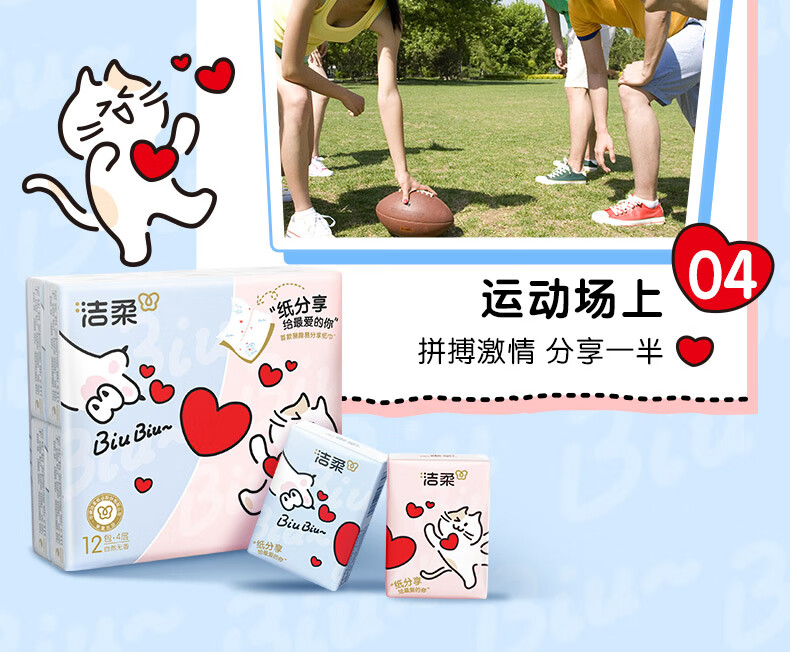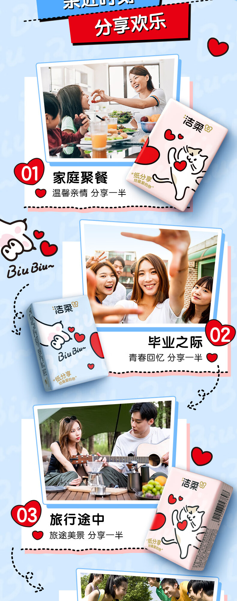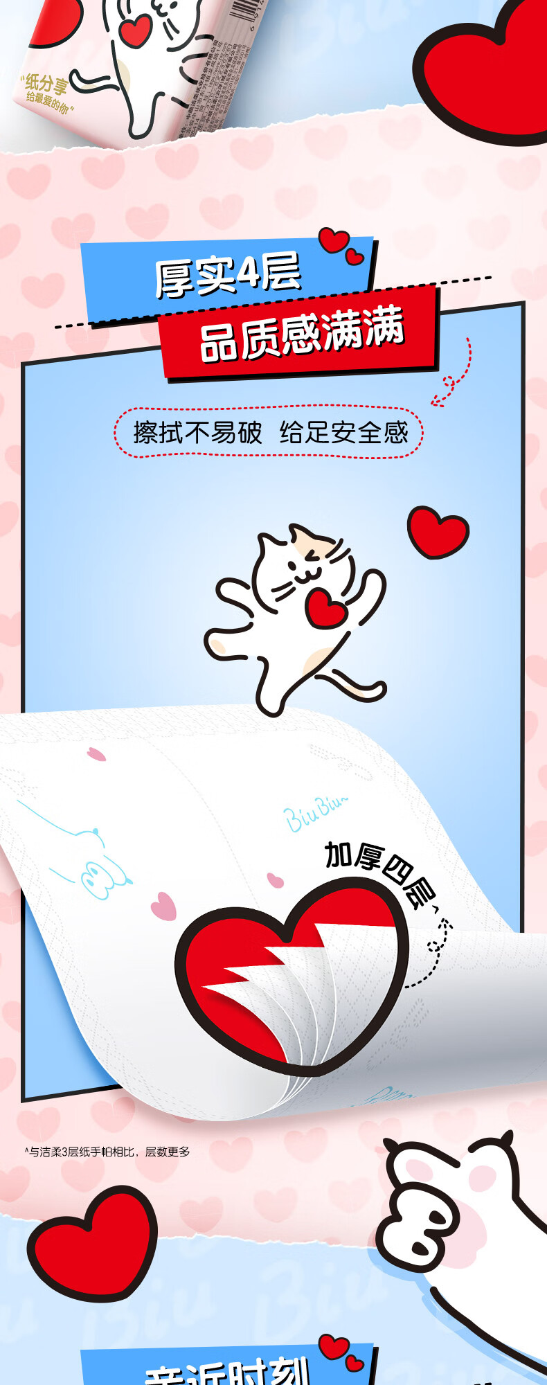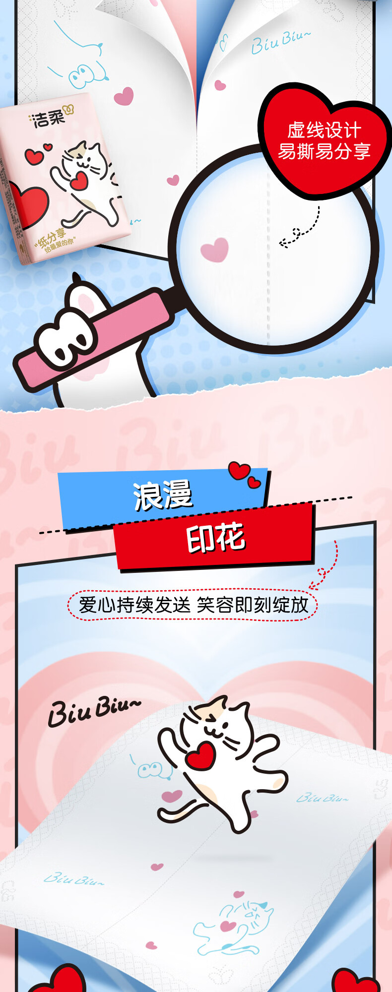 洁柔手帕纸对半撕分享式4层7片*60包可爱小猫咪印花迷你可湿水无香