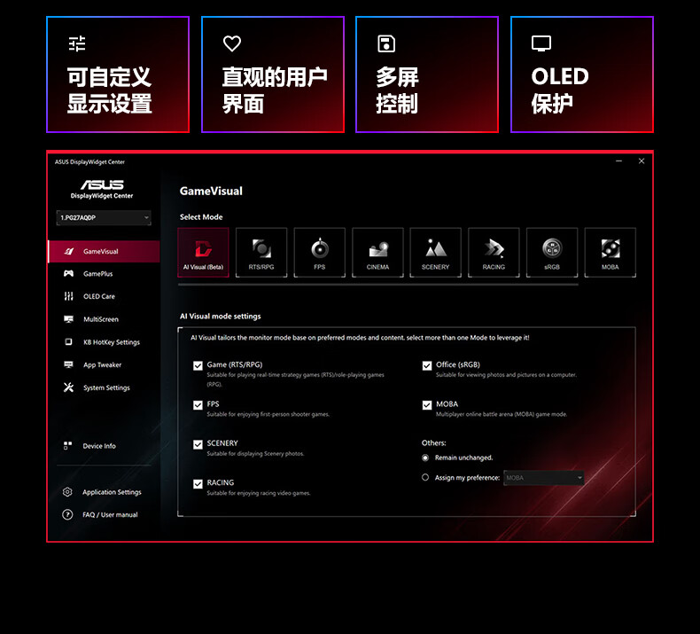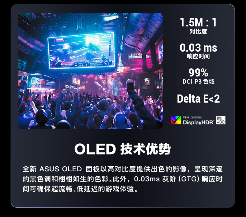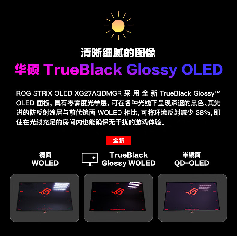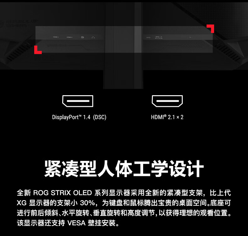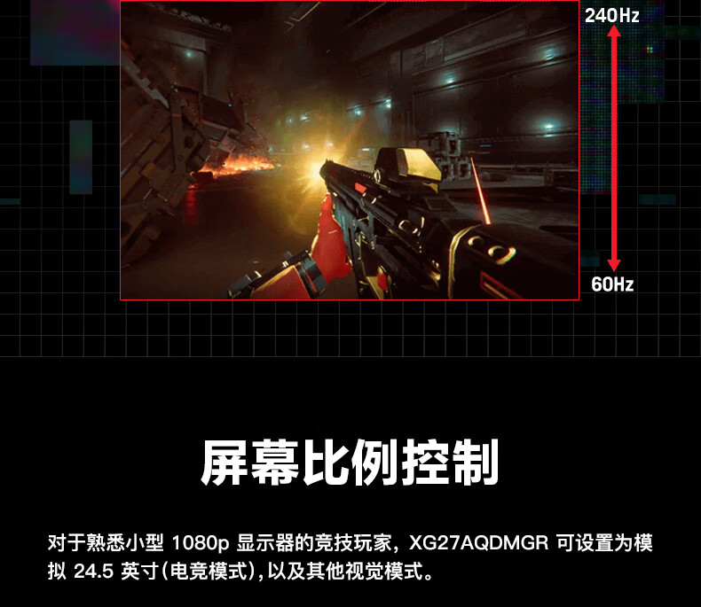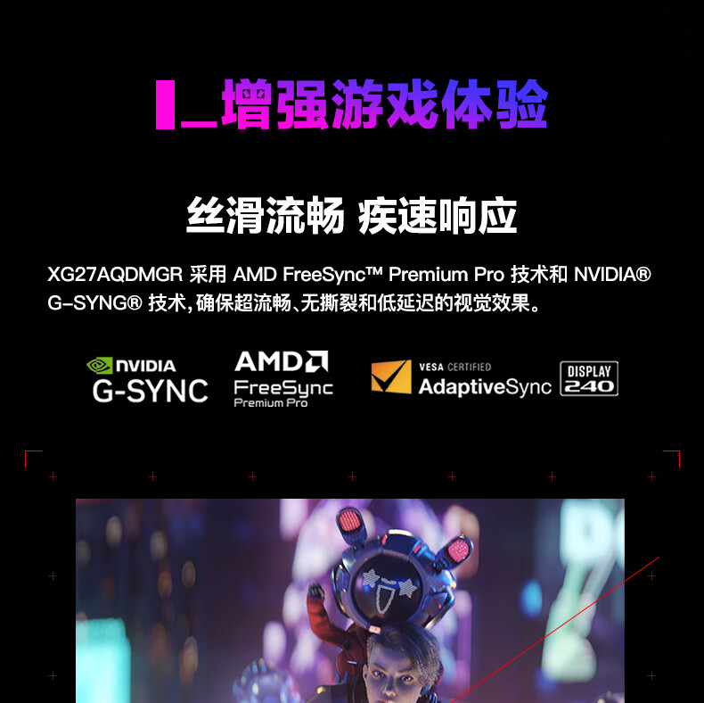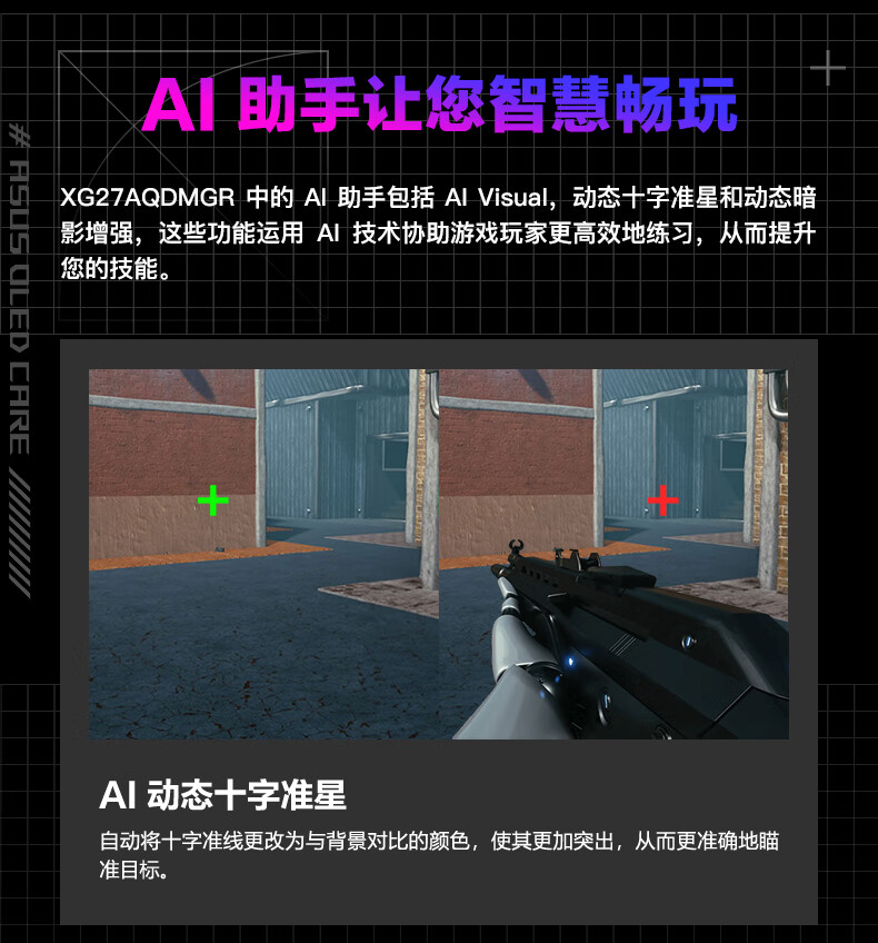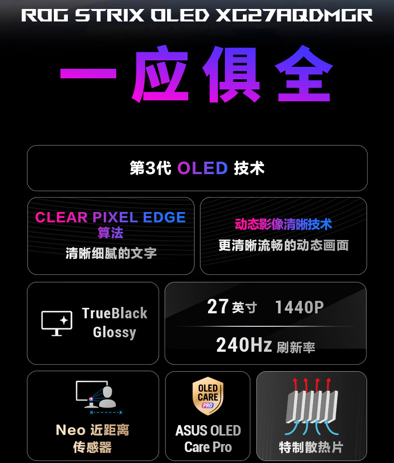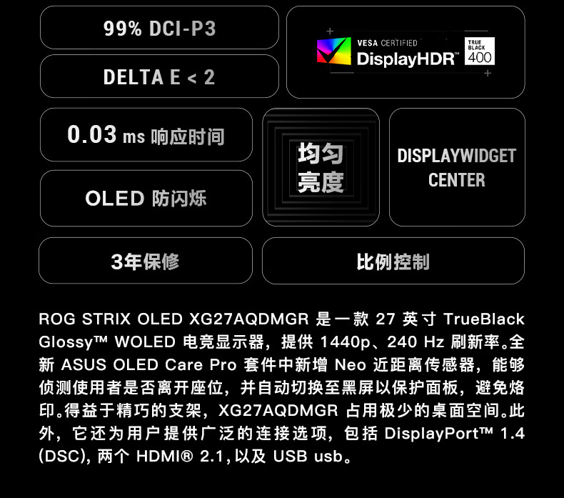 华硕ROG XG27AQDMGR 27英寸2K电竞显示器2K 240Hz显示器OLED 0.03ms响应HDR400 G-SYNC HDMI2.1显示器