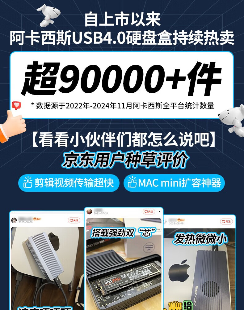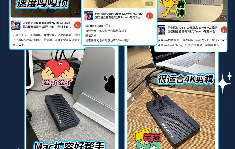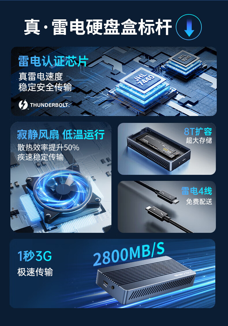 阿卡西斯雷电4/3移动硬盘盒M.2 NVMe固态硬盘盒usb4.0高速40gbps机械外置硬盘盒台式机电脑SSD雷电硬盘盒 【风扇款】USB4.0(可向下兼容)灰