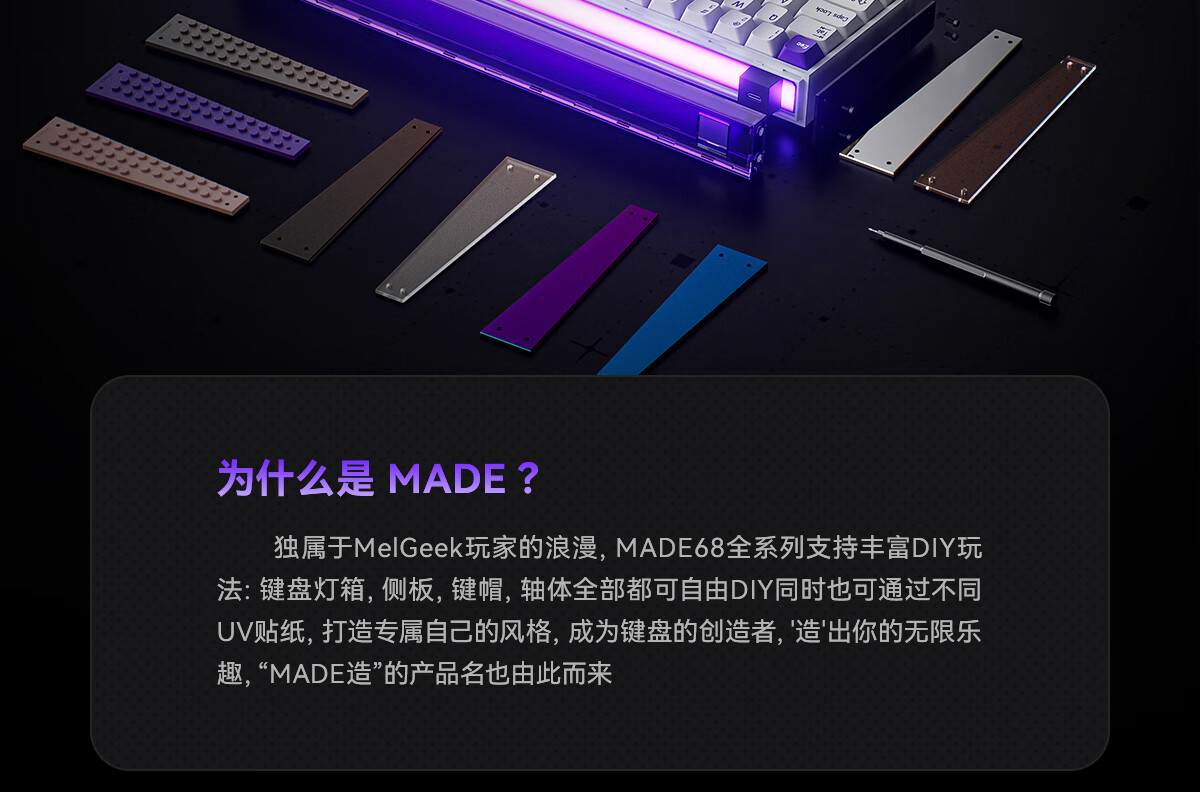 MelGeekMADE68 PRO+磁轴键盘TTC万磁王紫心轴RT0.01电竞游戏客制化机械无畏契约打瓦小蜜蜂情侣 MADE68 PRO+紫光【紫心轴】 有线MelGeek 68键