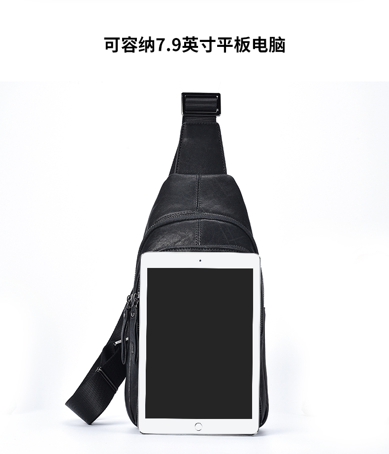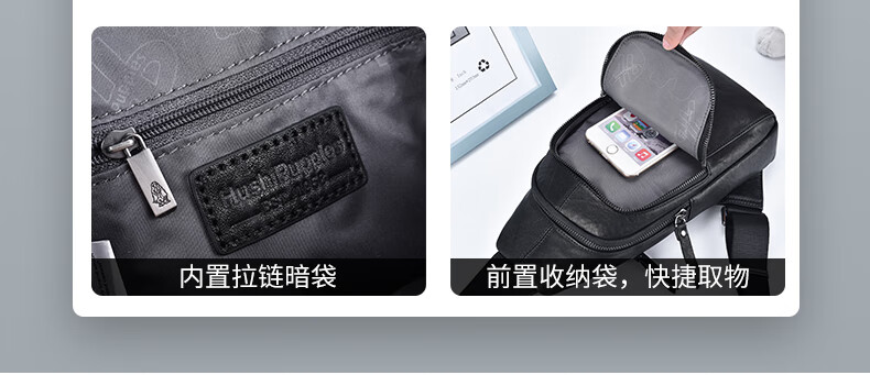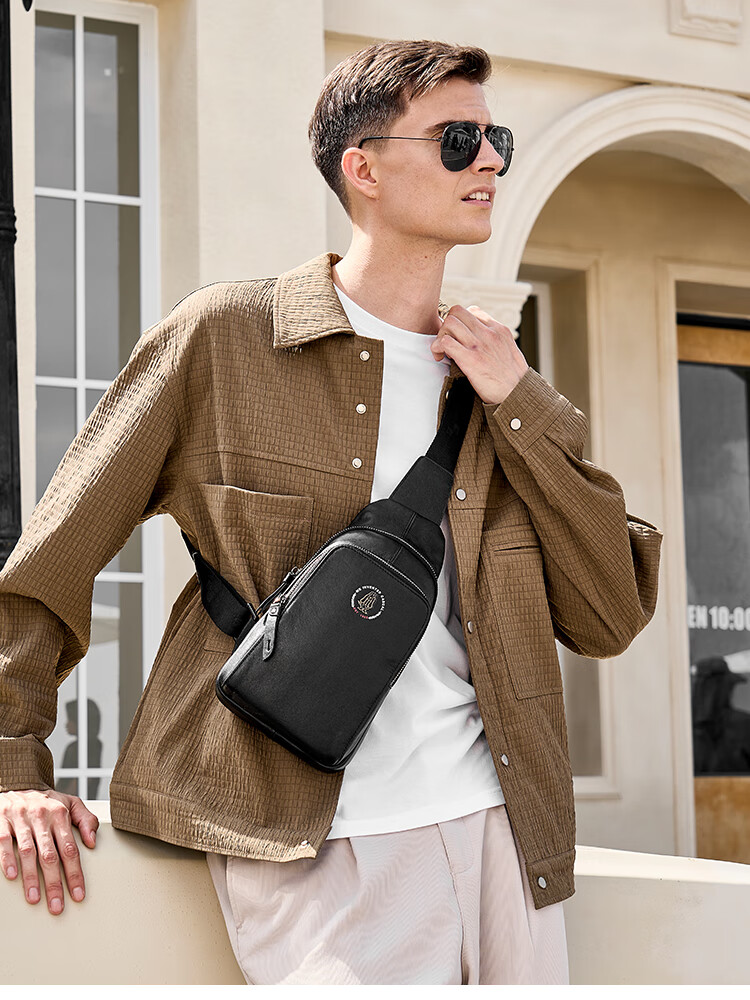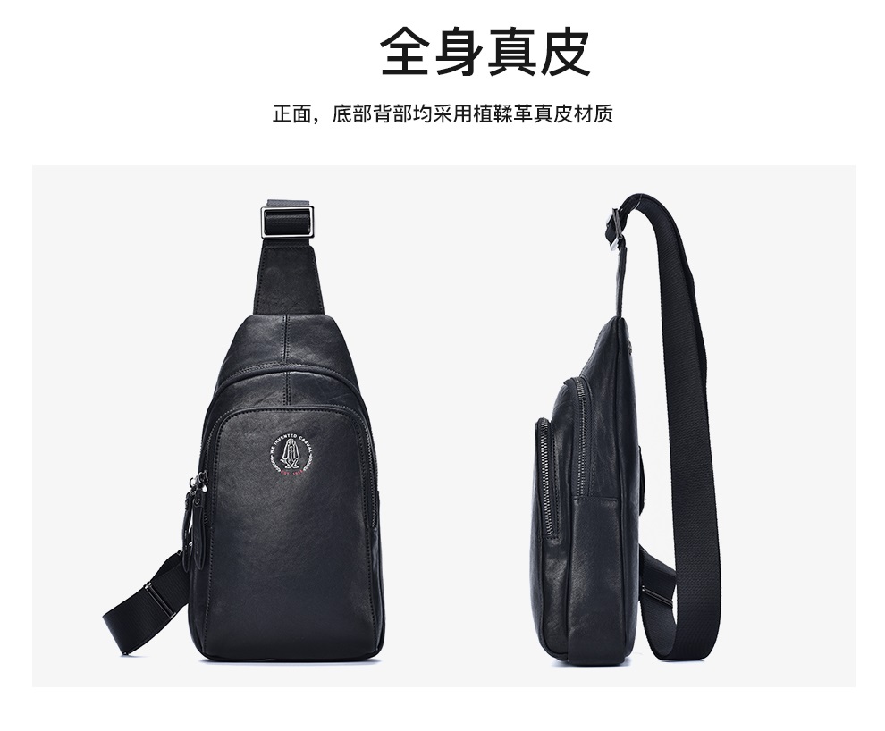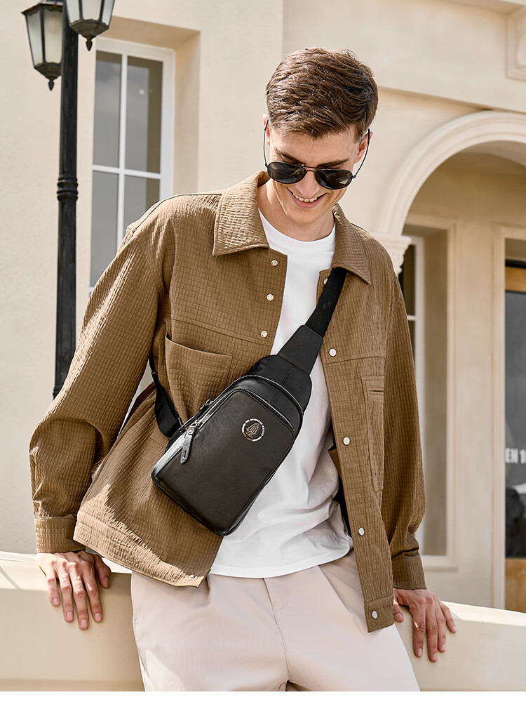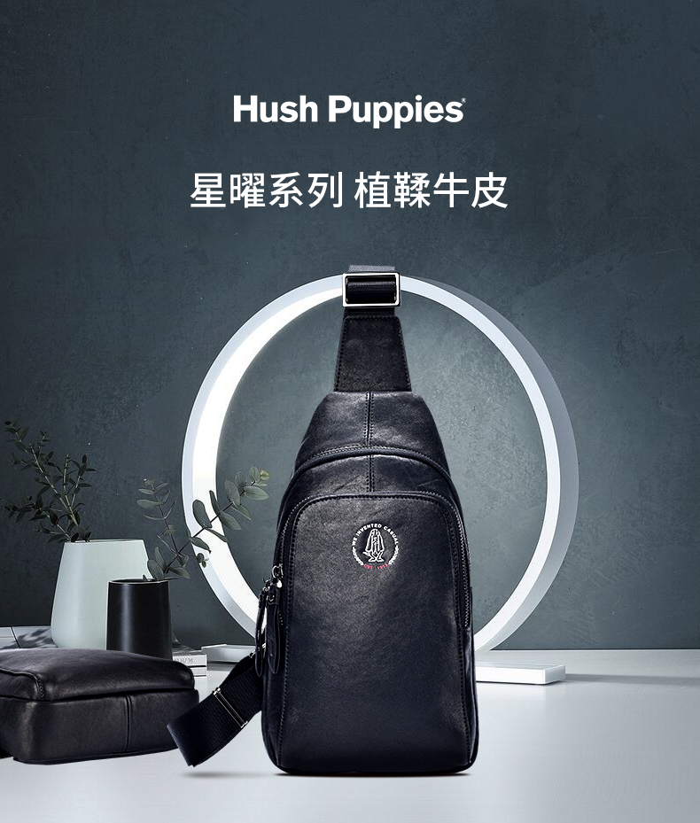 暇步士(Hush Puppies)胸包男斜挎包腰包复古休闲大容量植鞣牛皮运动单肩包生日礼物