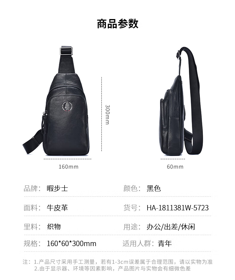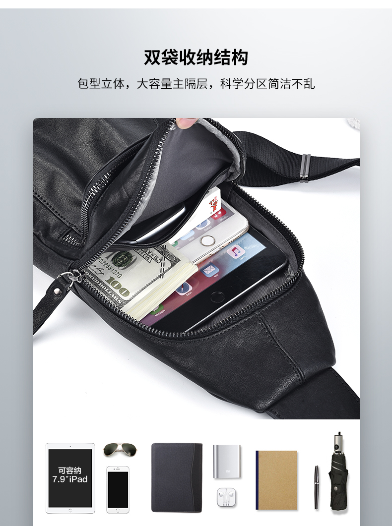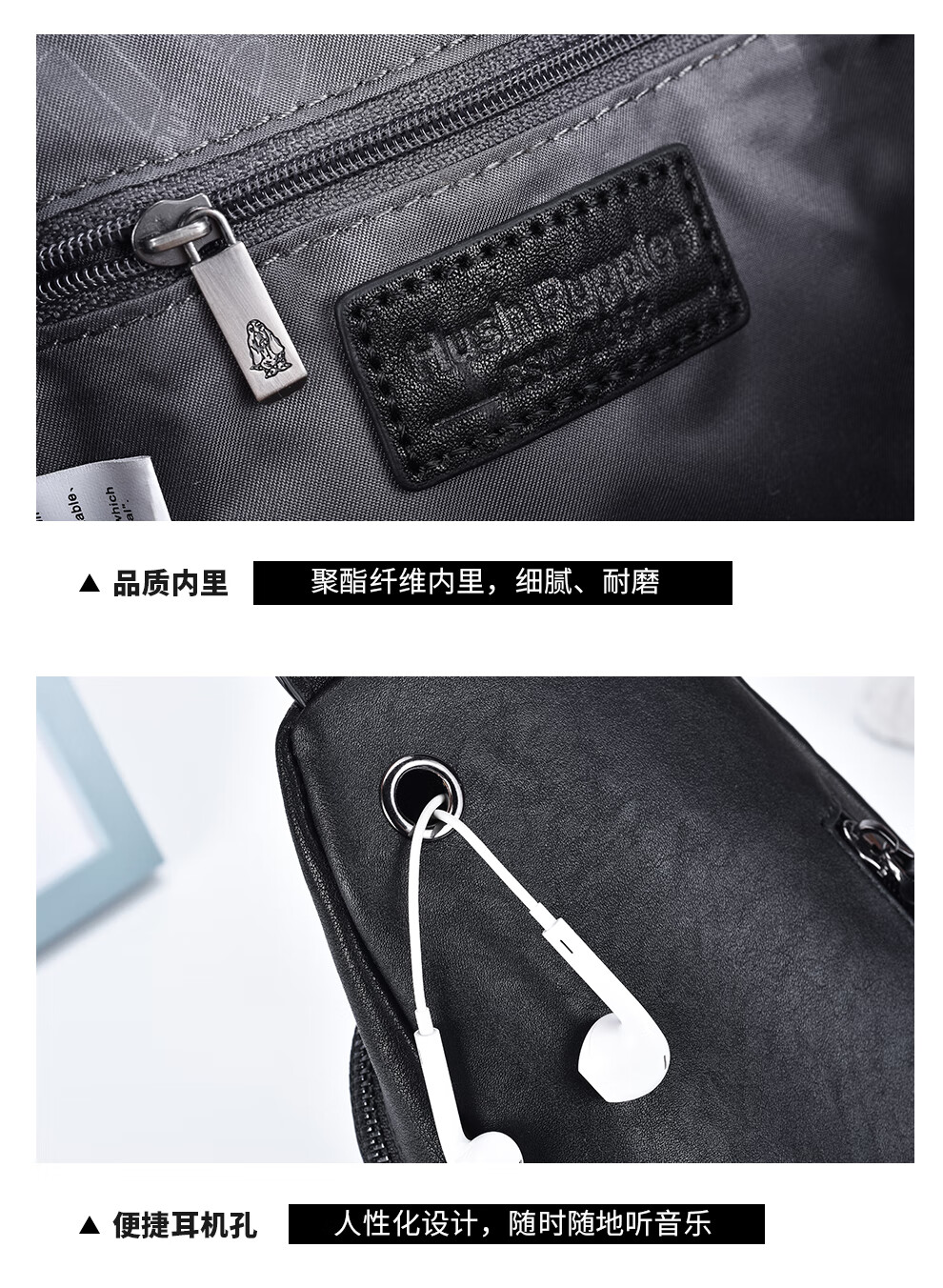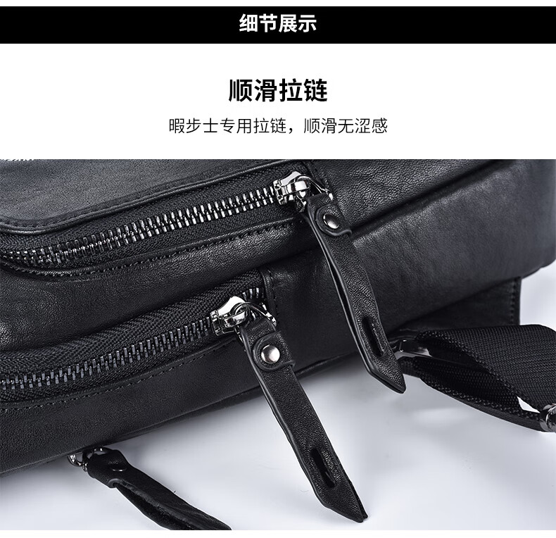 暇步士(Hush Puppies)胸包男斜挎包腰包复古休闲大容量植鞣牛皮运动单肩包生日礼物
