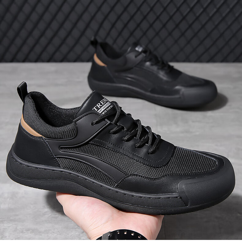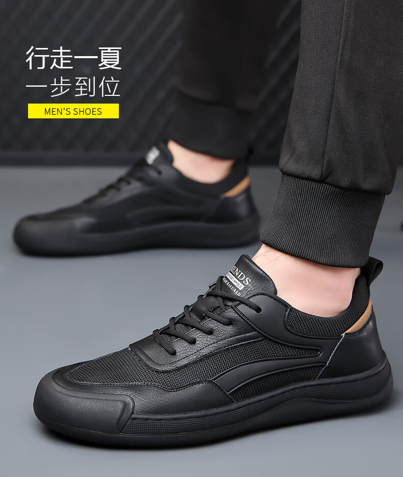 GIAUSA轻奢男鞋秋季新款高端品牌休闲鞋男士跑步运动鞋男网面透气老爹鞋 黑金-高端男鞋 42