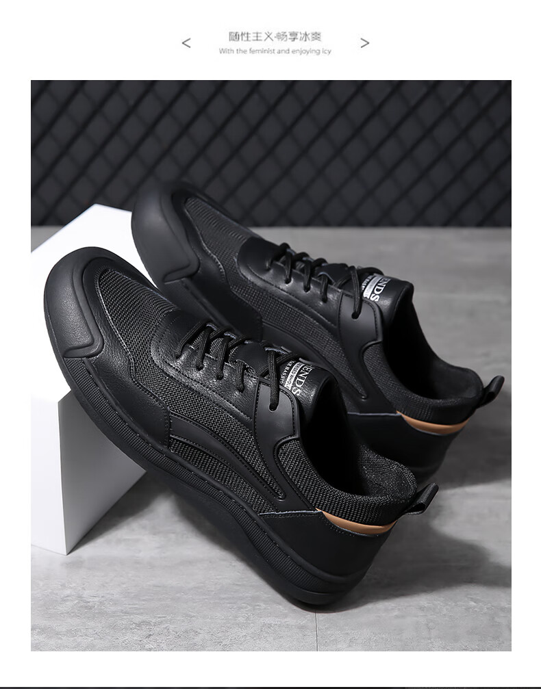 热风(Hotwind)男鞋2025年冬季新款厚底增高板鞋百搭休闲鞋加绒保暖黑色鞋子 01黑色 38