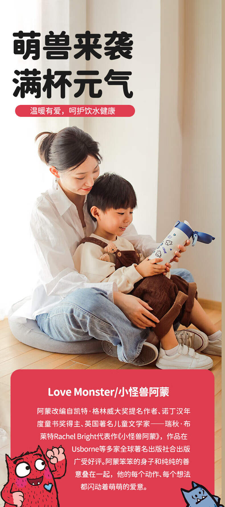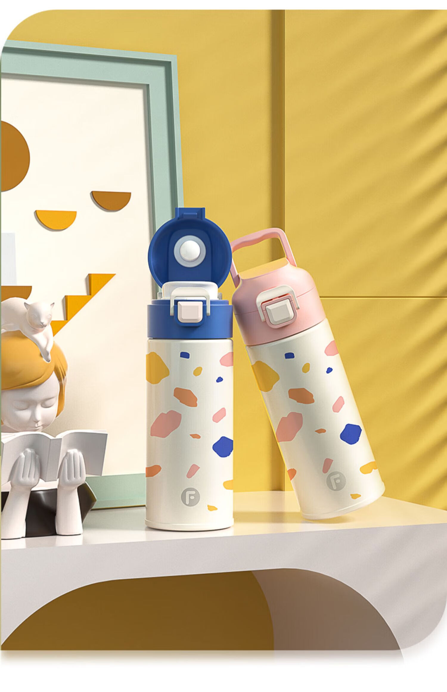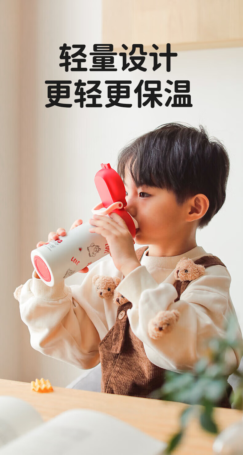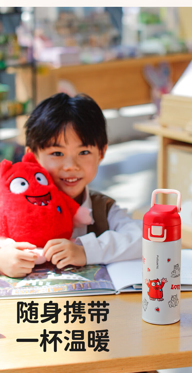 富光智趣保温杯儿童316不锈钢真空杯小学生水杯简约男女便携式茶杯子 蓬蓬兔粉 400mL【IP款】