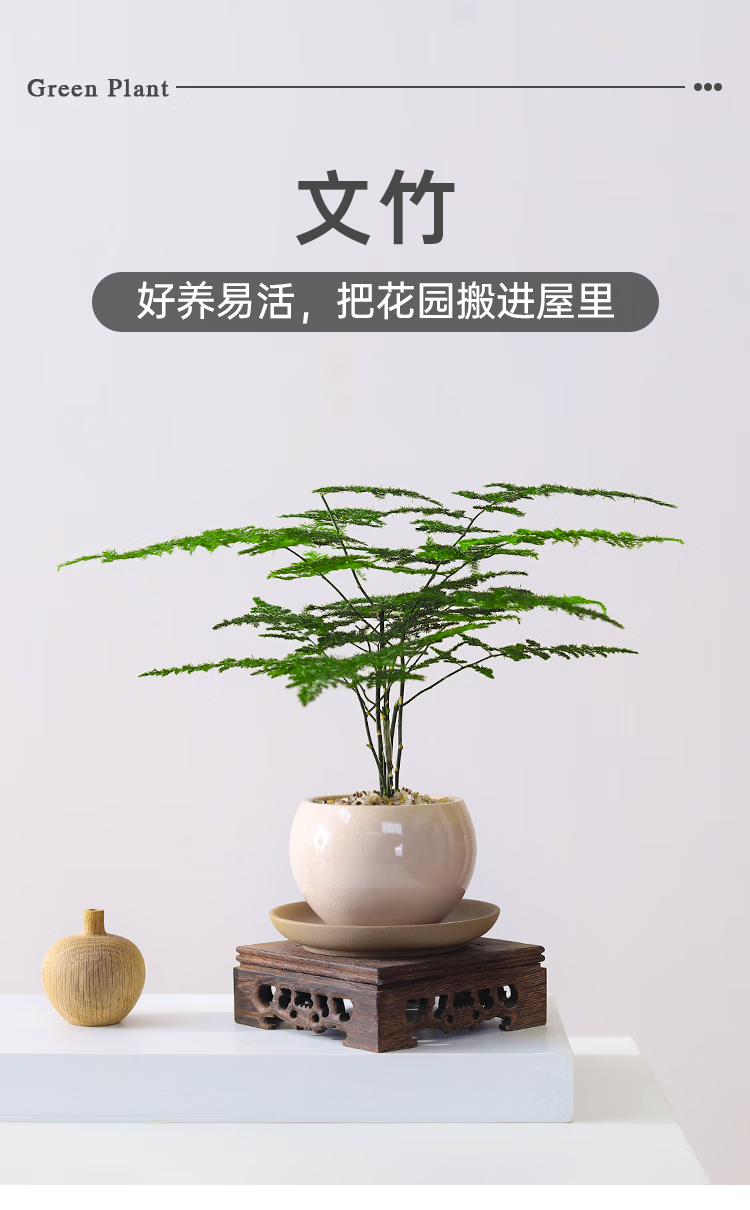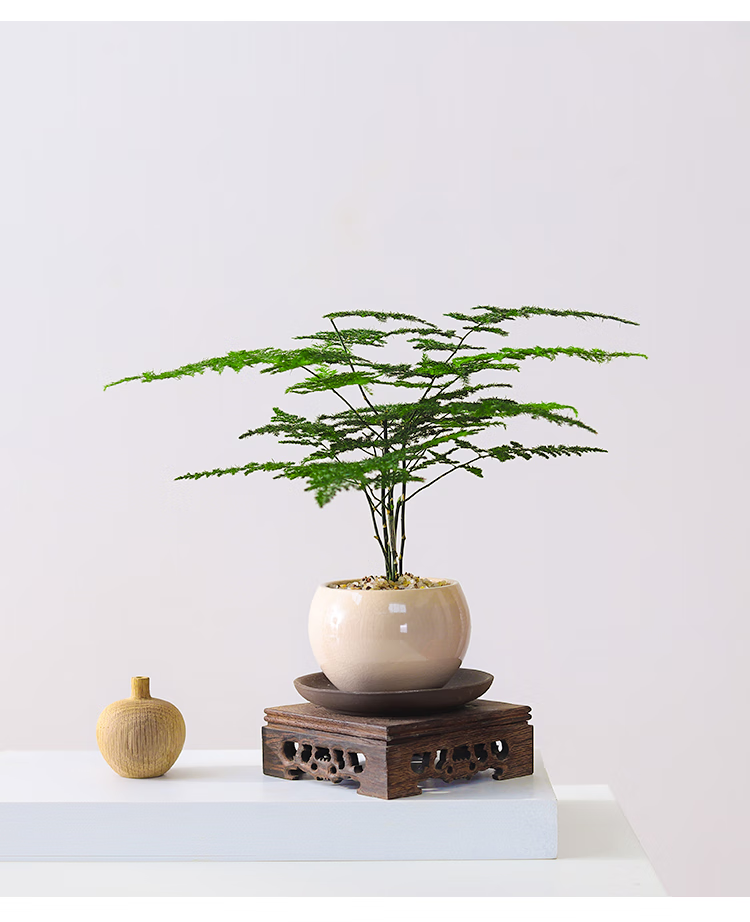 喜鹊说文竹盆栽绿植室内云竹盆景植物四季常青茶桌客厅防辐射花卉好养 文竹-舍得盆-密胺托盘 带盆栽好
