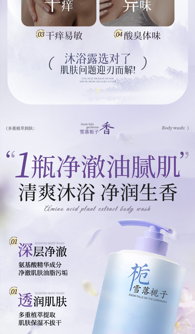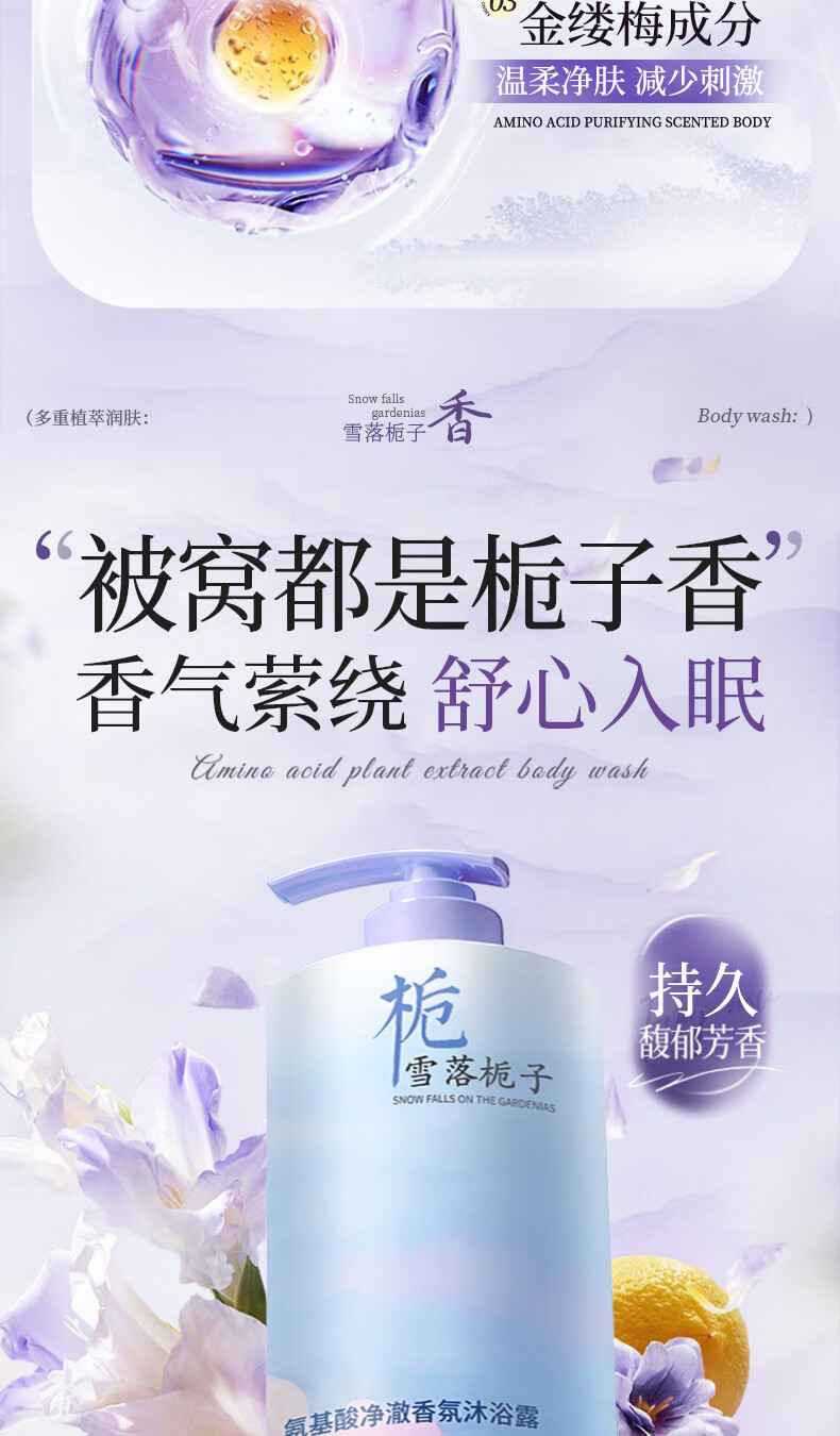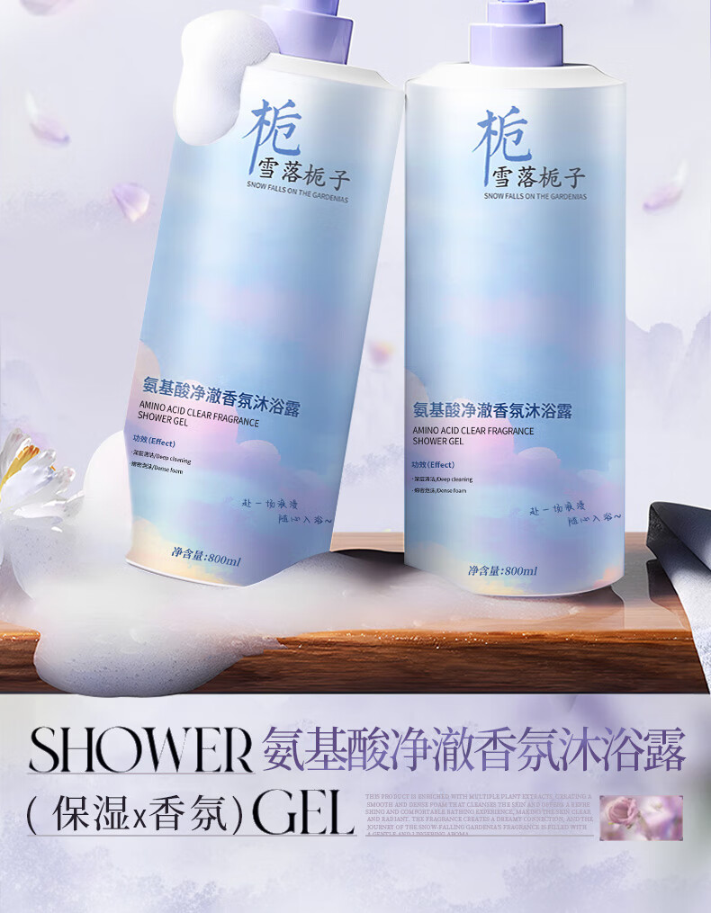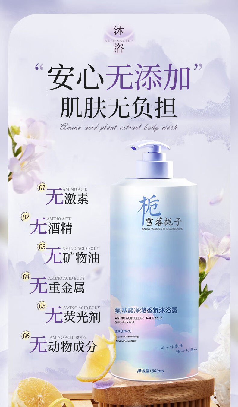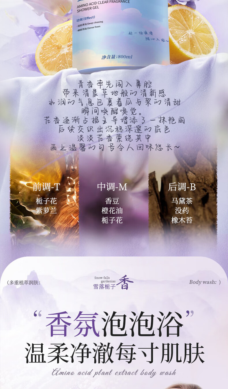 琪瑟氨基酸沐浴露雪落栀子持久留香沐浴乳清爽保湿男女士大容量800ml 【雪落栀子】氨基酸沐浴露800ml