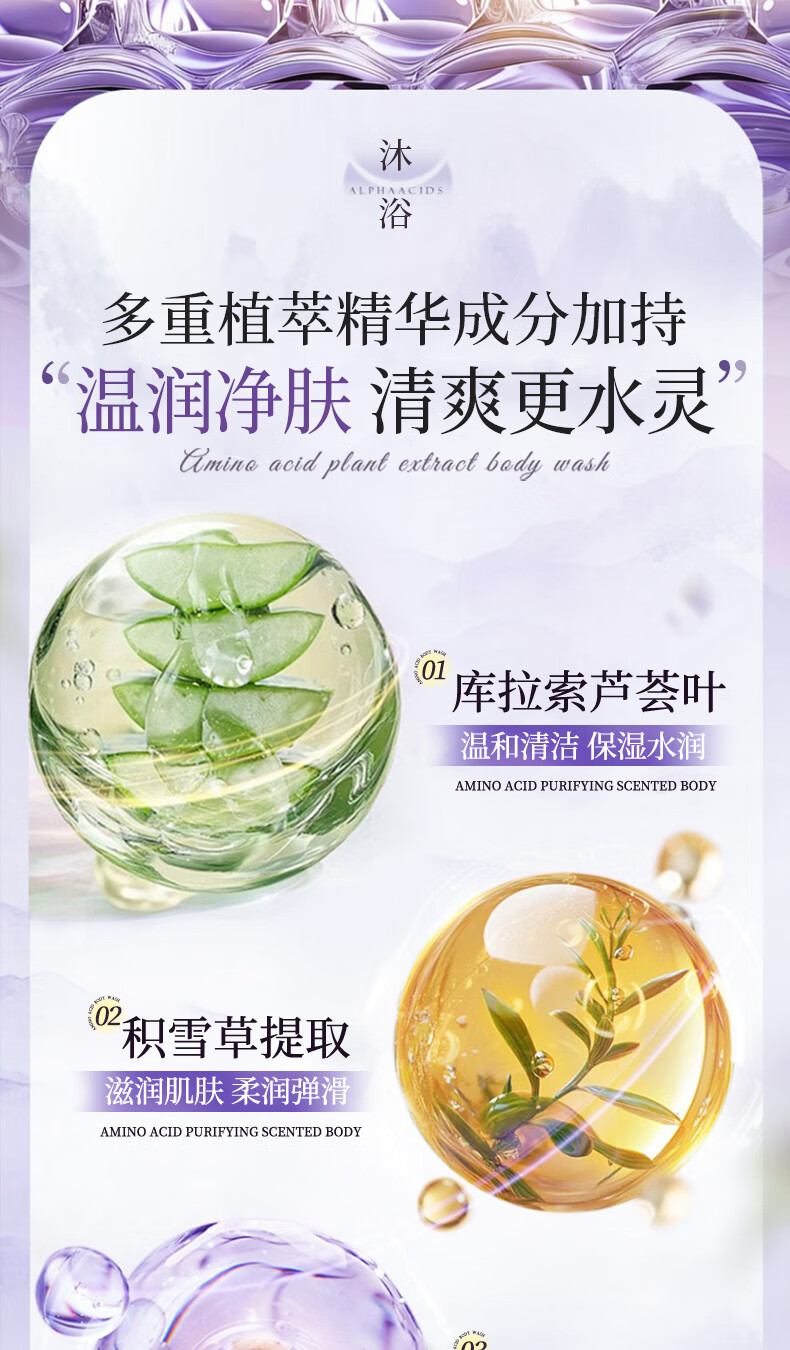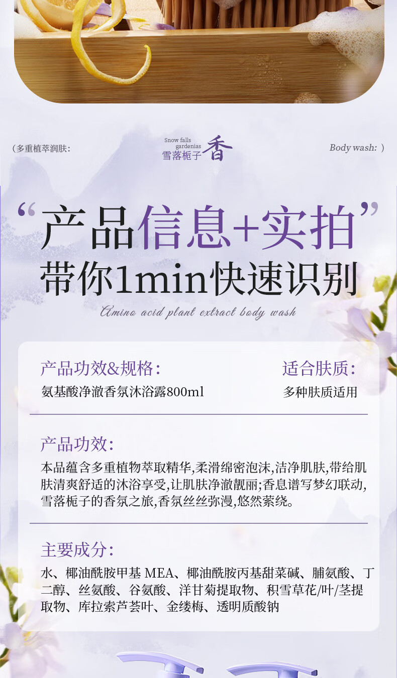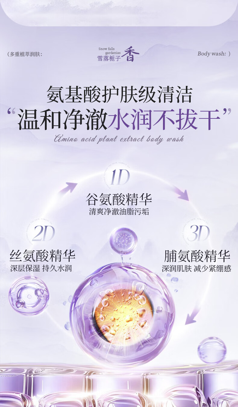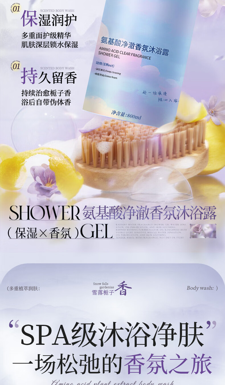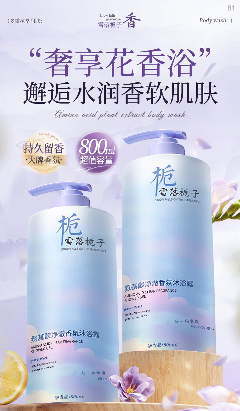 琪瑟氨基酸沐浴露雪落栀子持久留香沐浴乳清爽保湿男女士大容量800ml 【雪落栀子】氨基酸沐浴露800ml