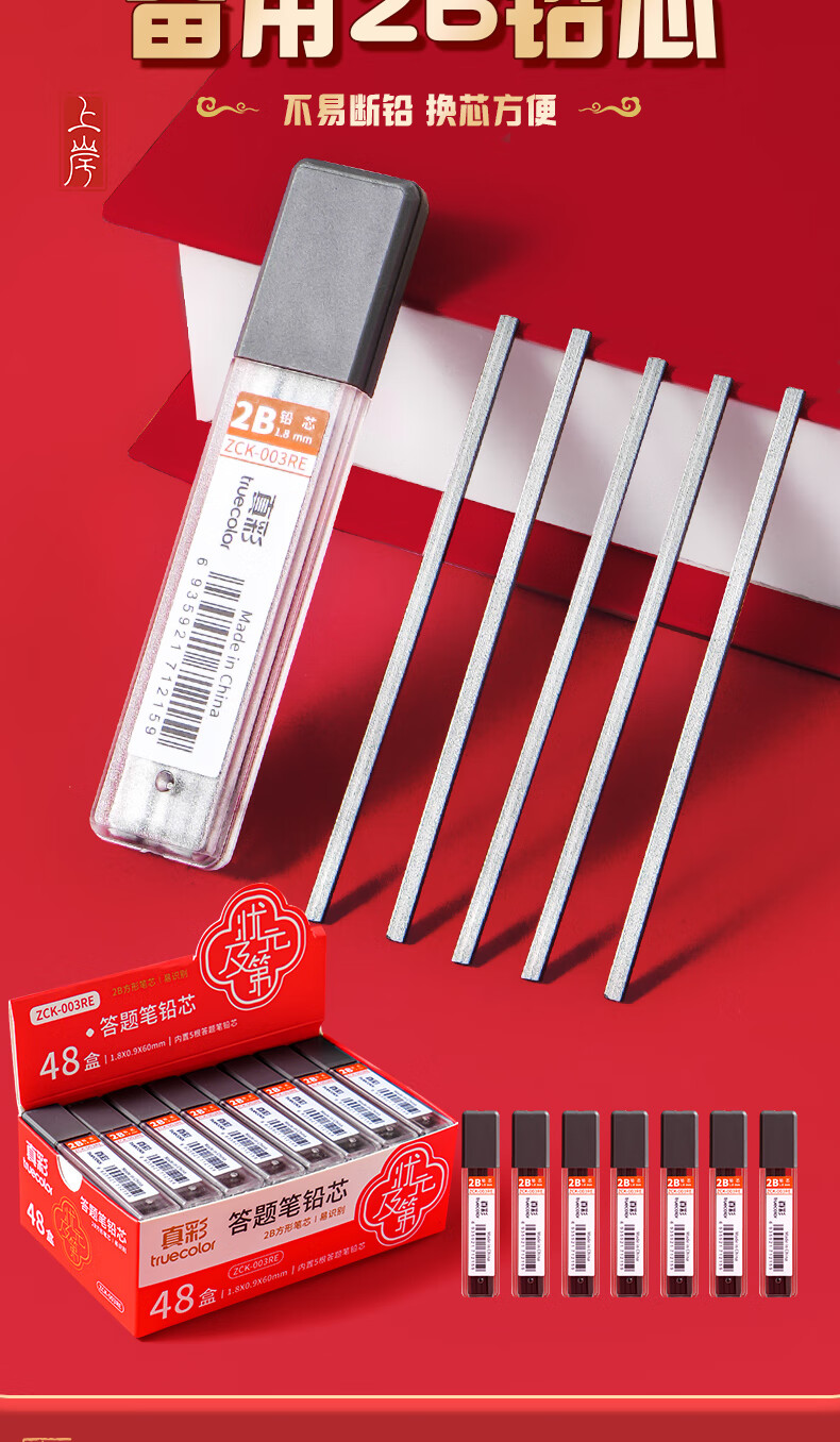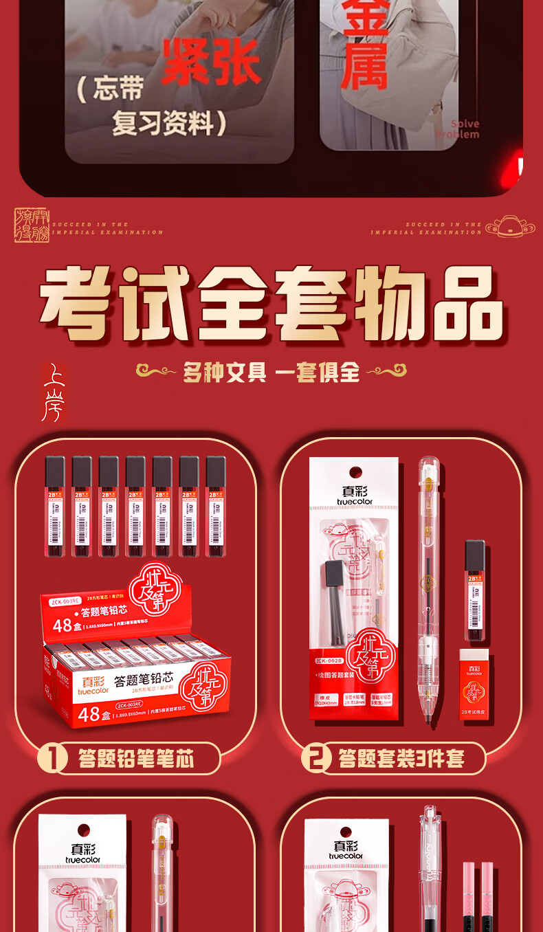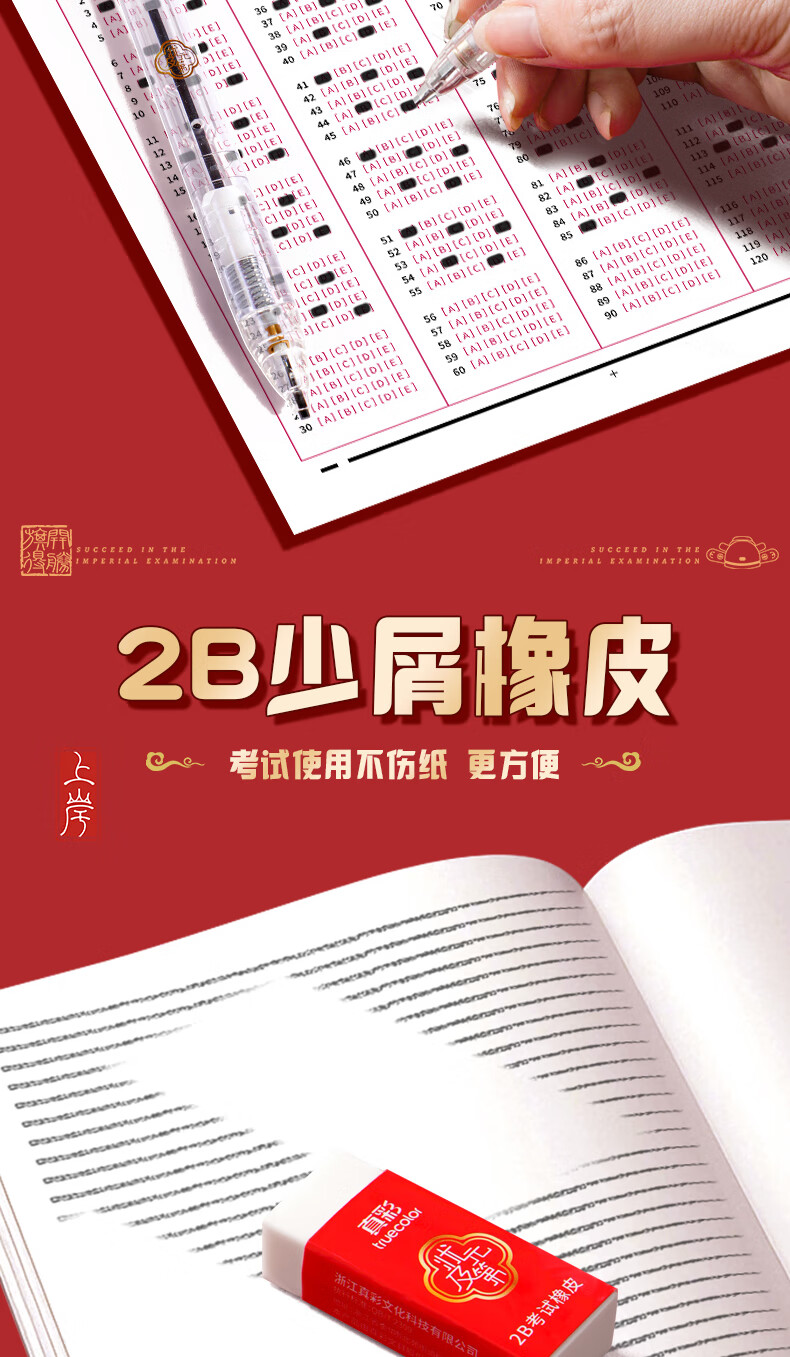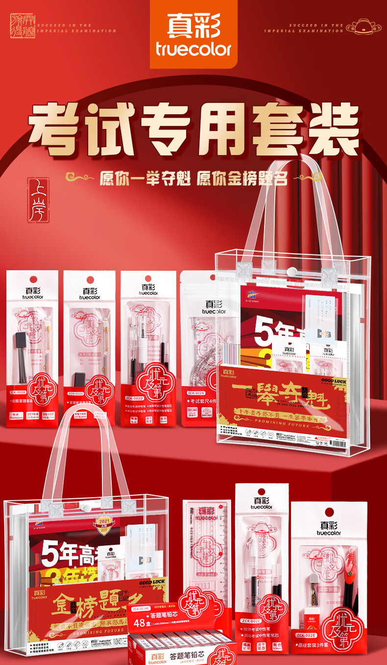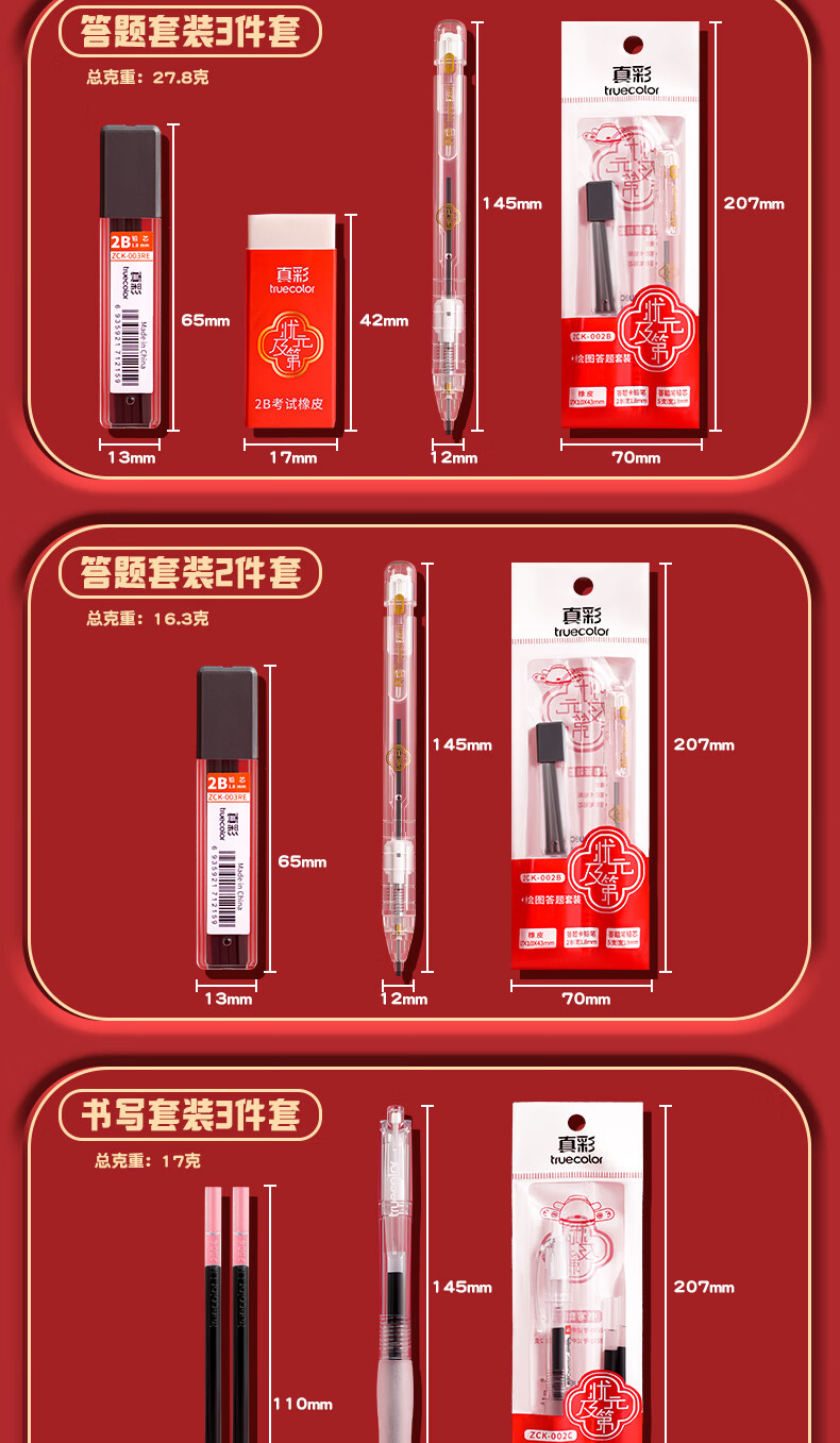 真彩(TRUECOLOR)状元红金属圆规套装 (替芯+2B橡皮)小学生初高中绘图制图工具考试专用画图作图中高考必备文具002E