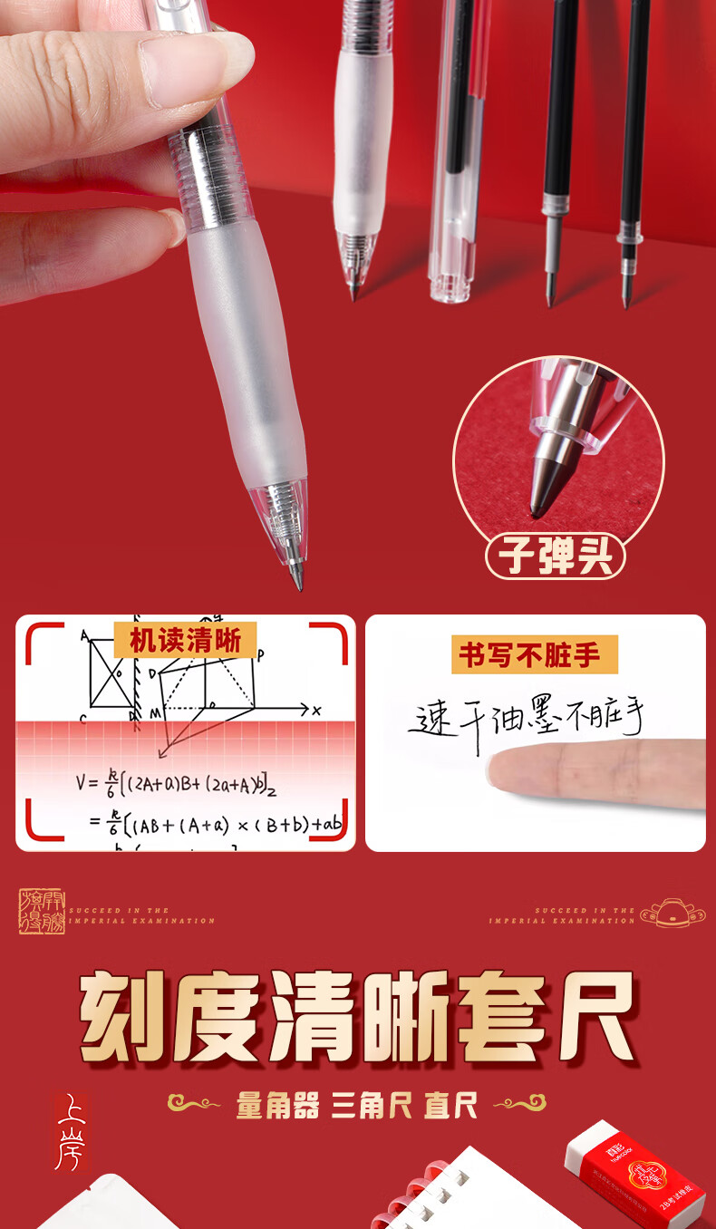 3 更好上 根号三(官方旗舰)【百万学生家长选择】减负笔M6M7(5笔+10芯)CST头速干0.5黑学生中高考试按动中性笔 M6M7套装(5支笔+10支笔芯)