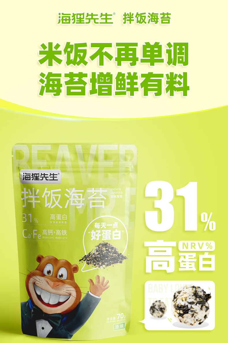 海狸先生拌饭海苔碎 儿童辅食海苔碎 寿司食材 100g*2袋