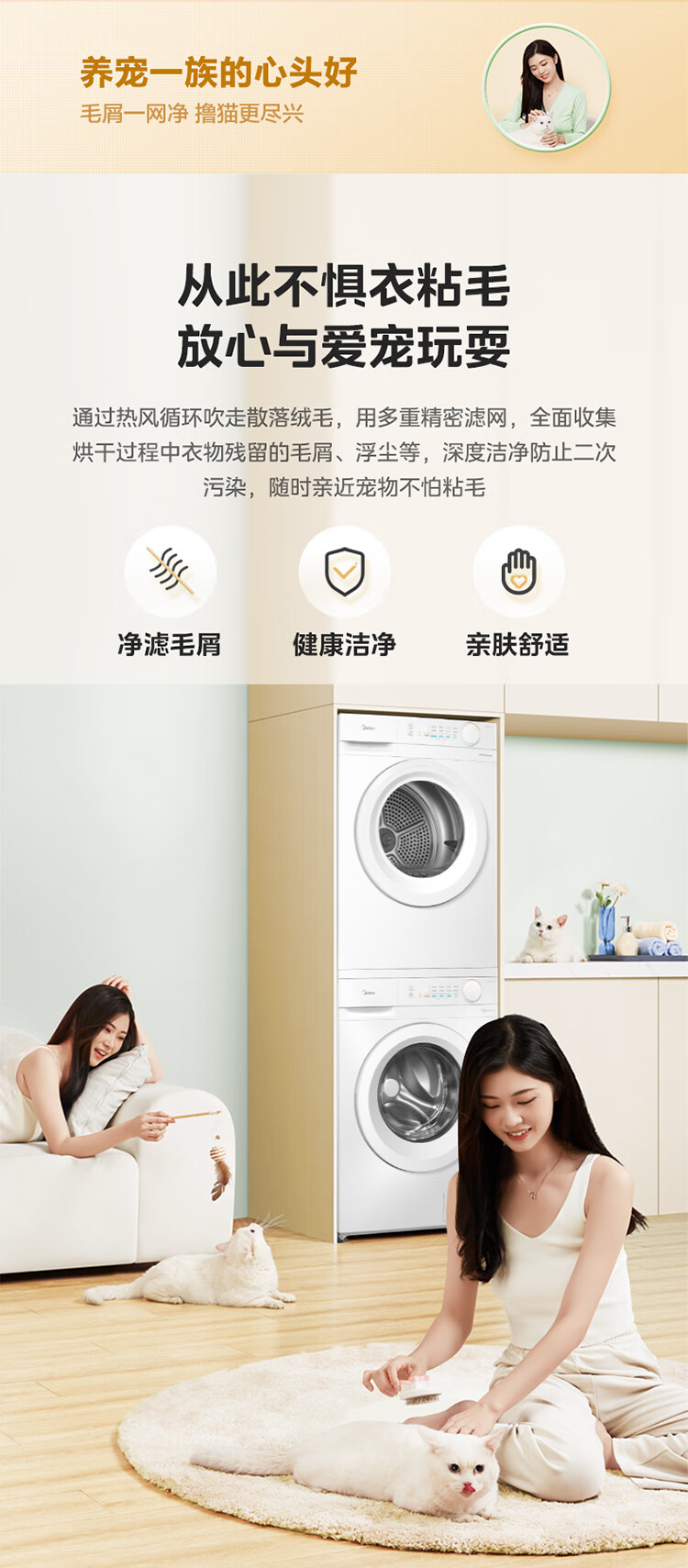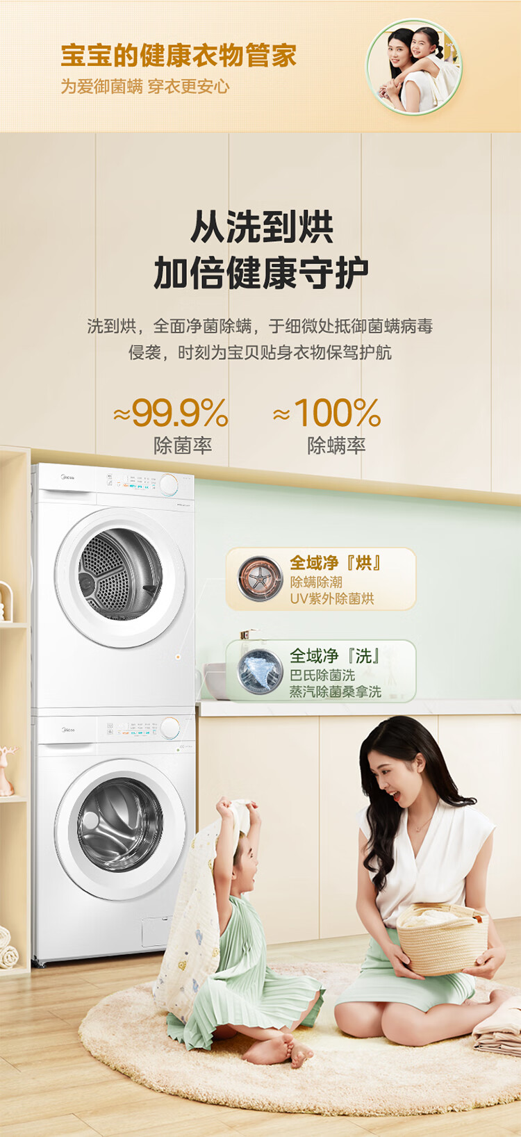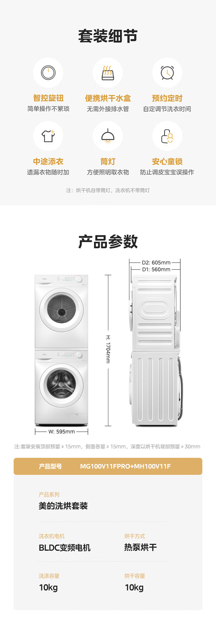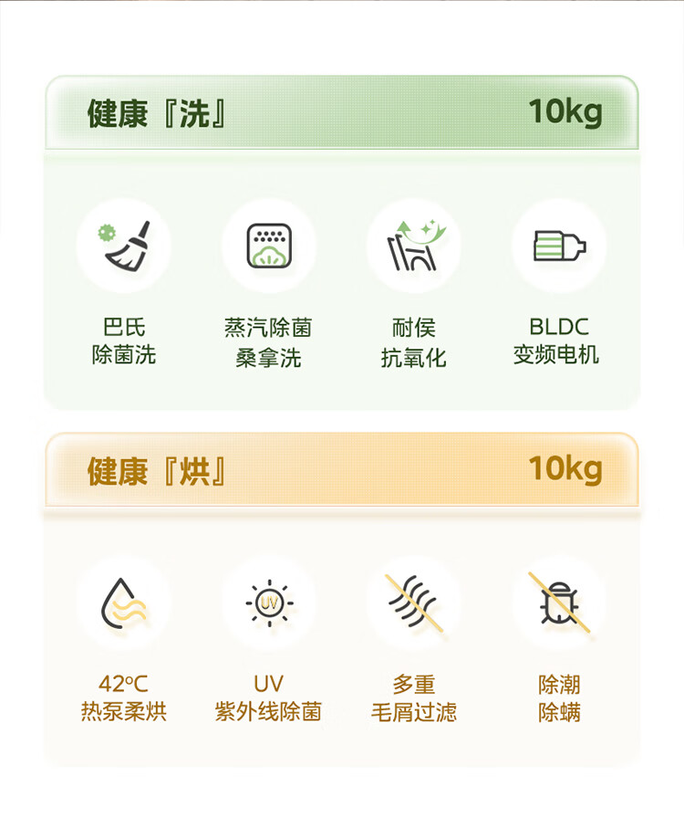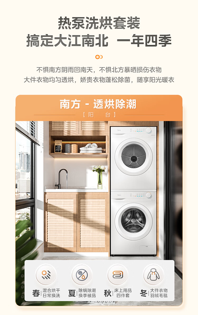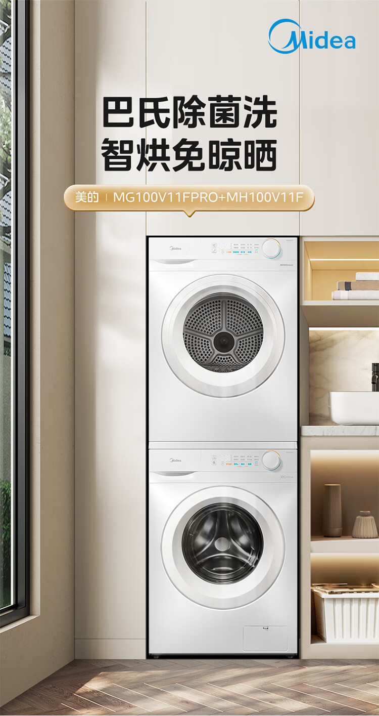美的(Midea)洗烘套装 10KG滚筒洗衣机全自动+热泵烘干机家用烘衣服 除菌除螨除潮 MG100V11FPRO+V11F 国家补贴