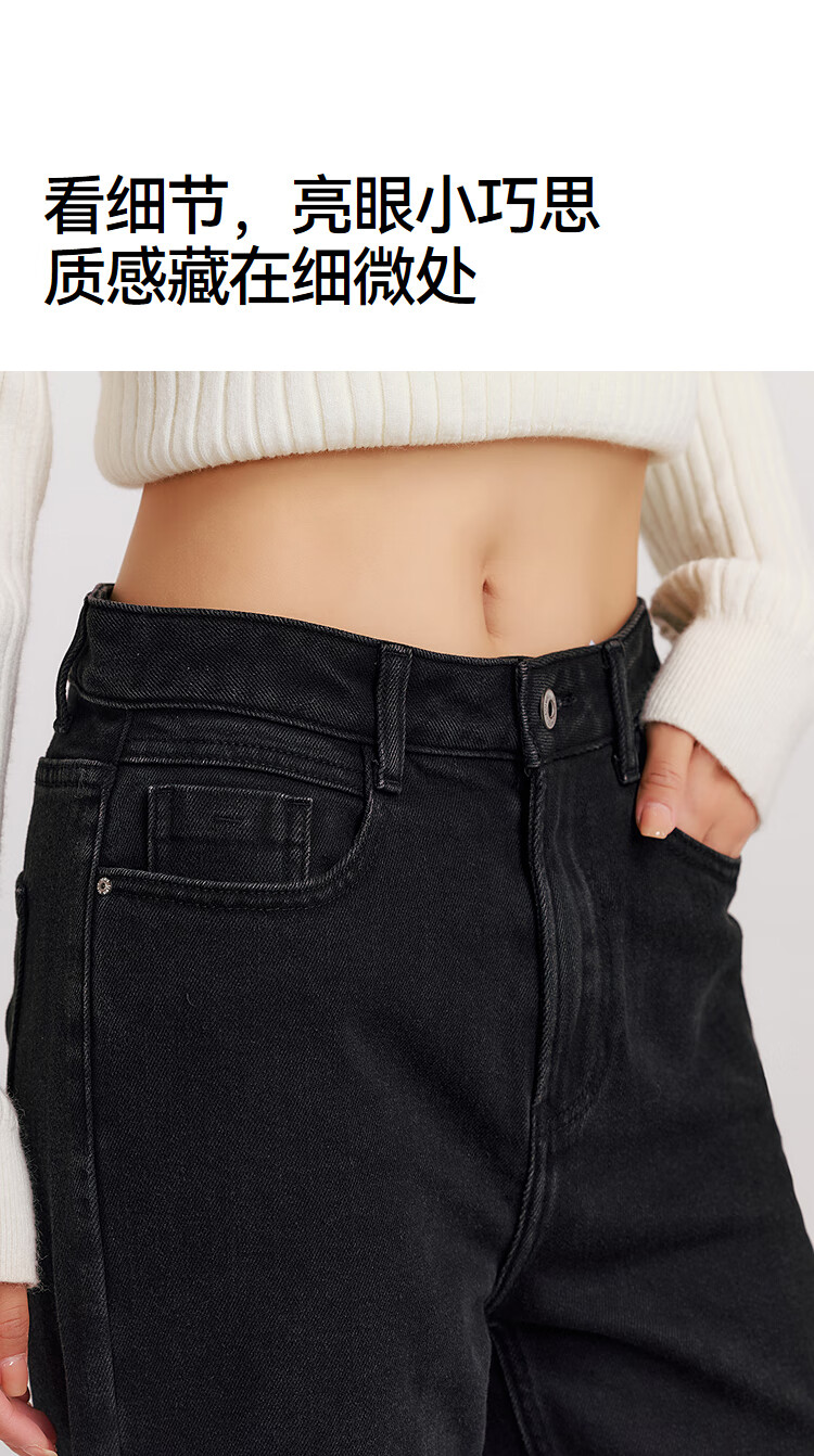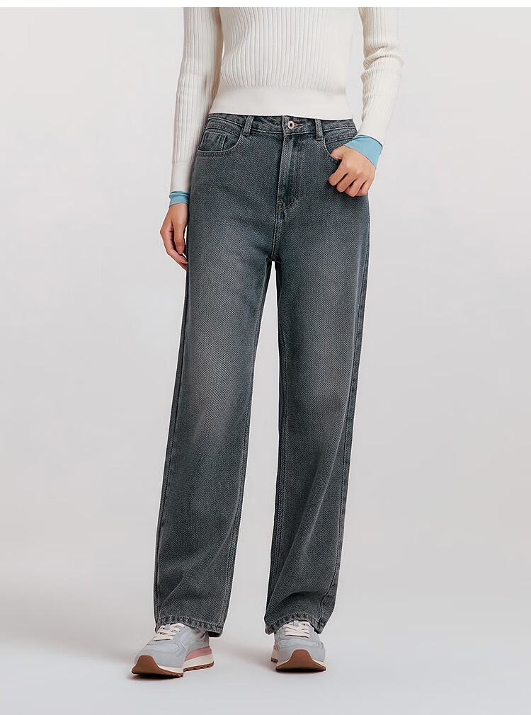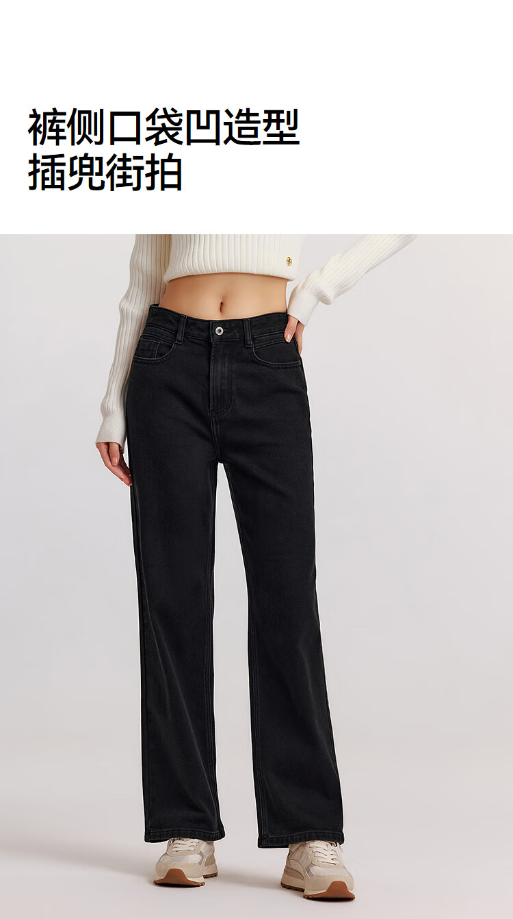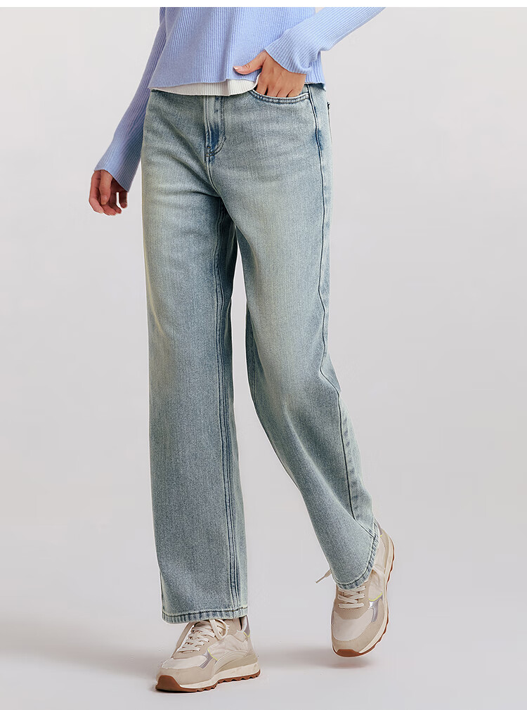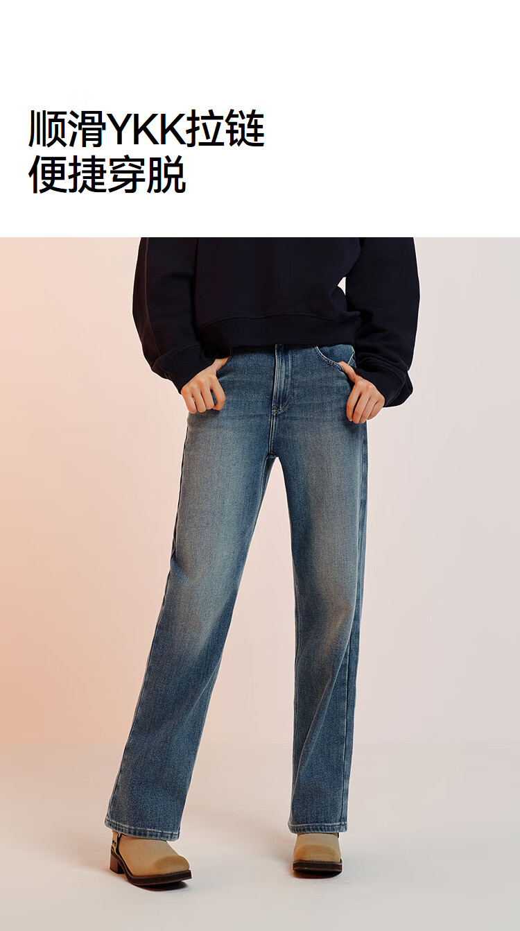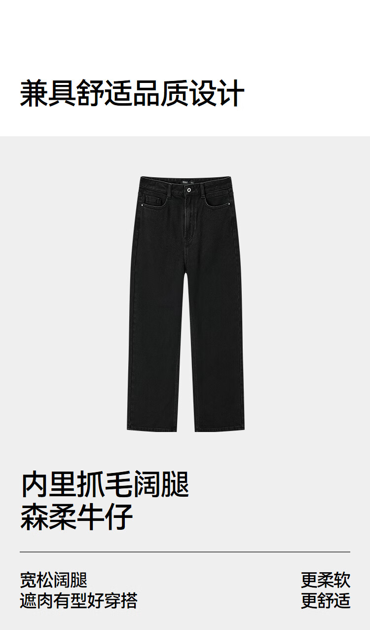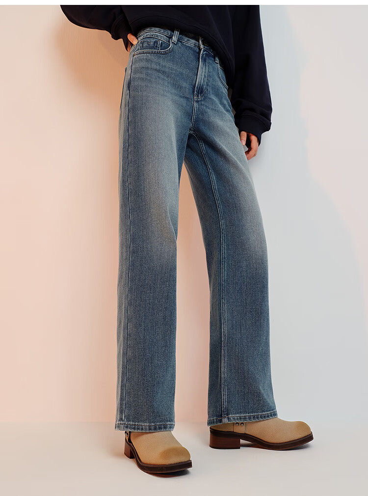 森马(Semir)森柔牛仔|牛仔裤女抓毛宽松阔腿裤冬季女士做旧长裤103724124001A