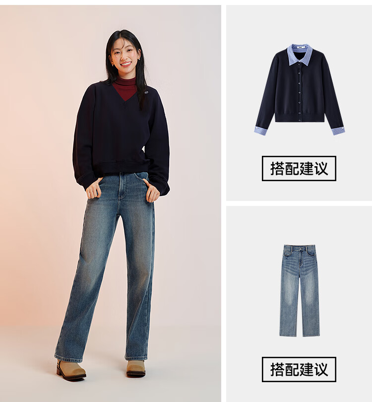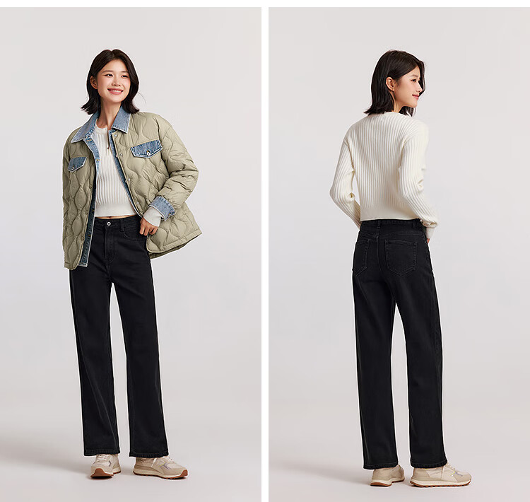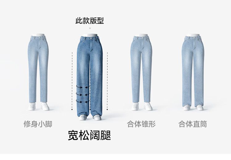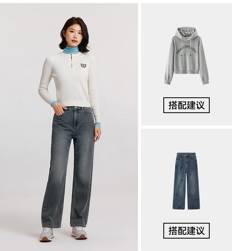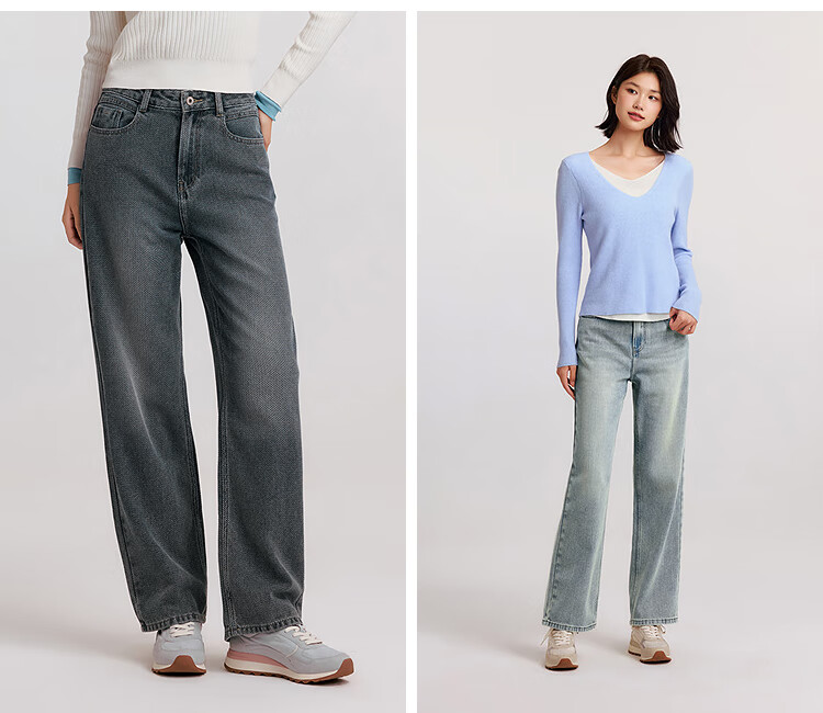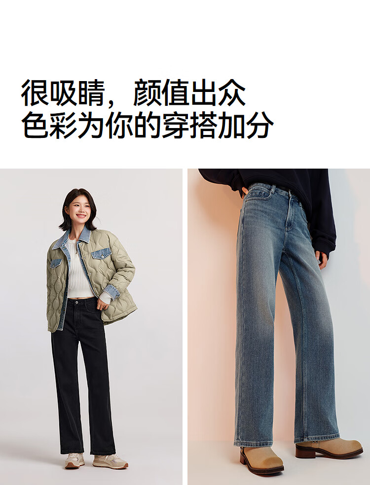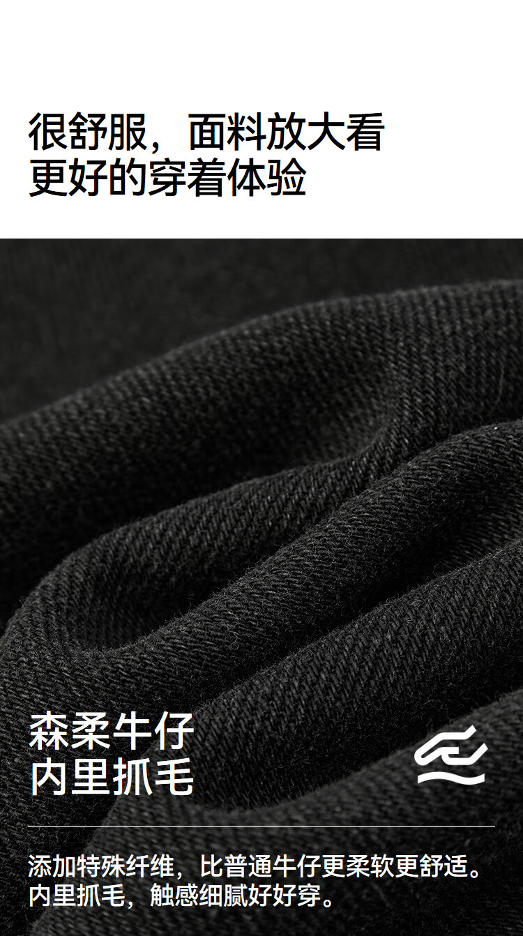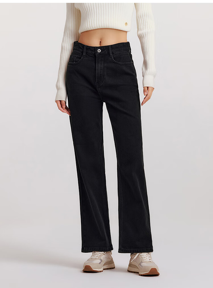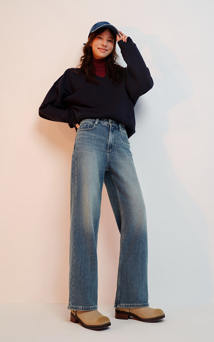 森马(Semir)森柔牛仔|牛仔裤女抓毛宽松阔腿裤冬季女士做旧长裤103724124001A