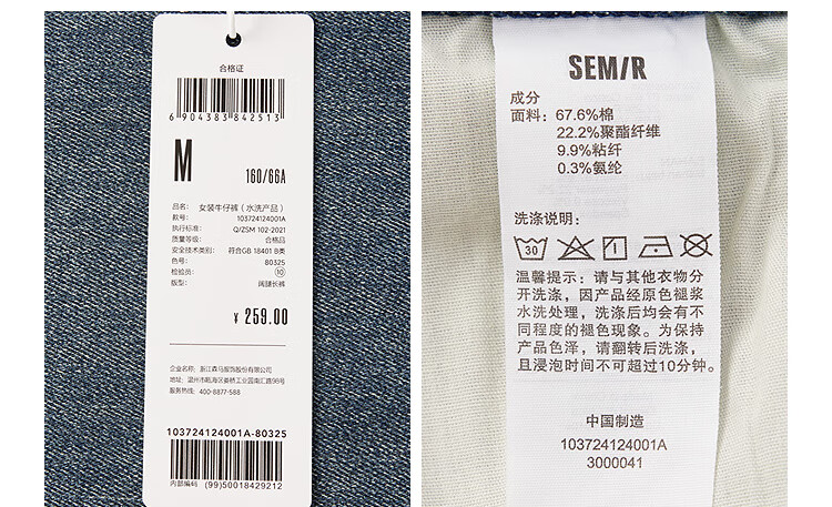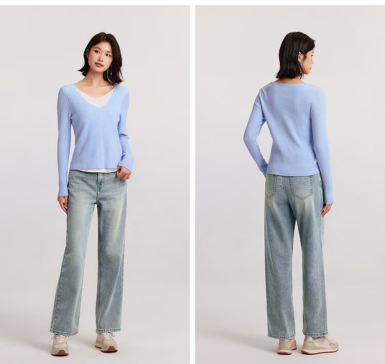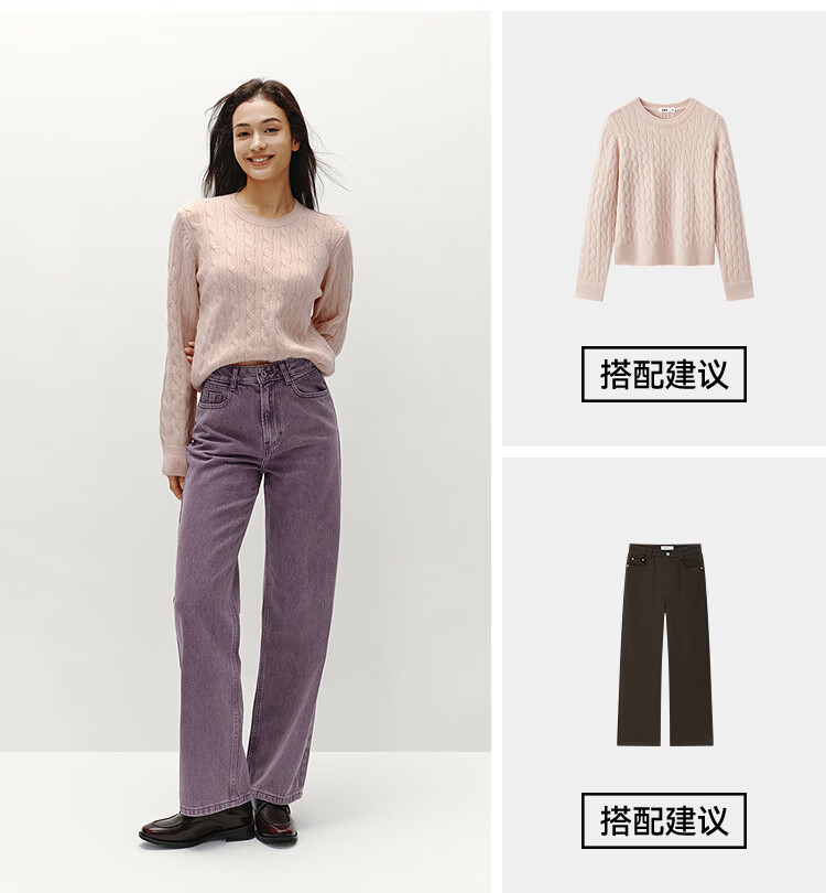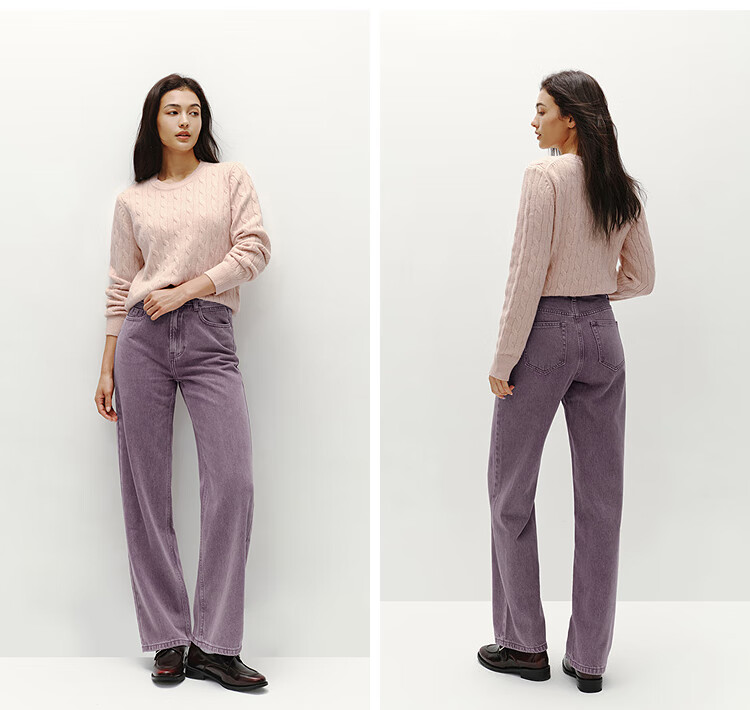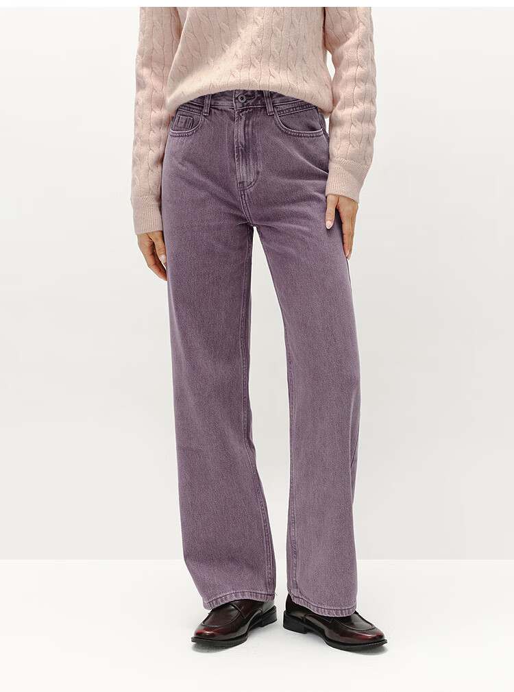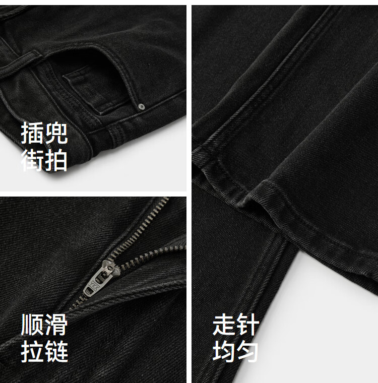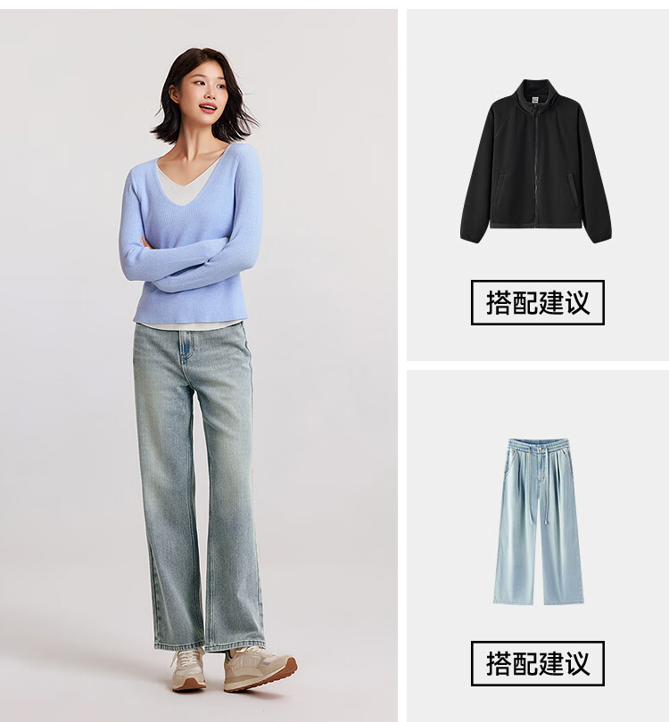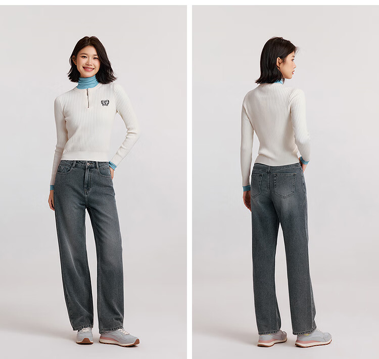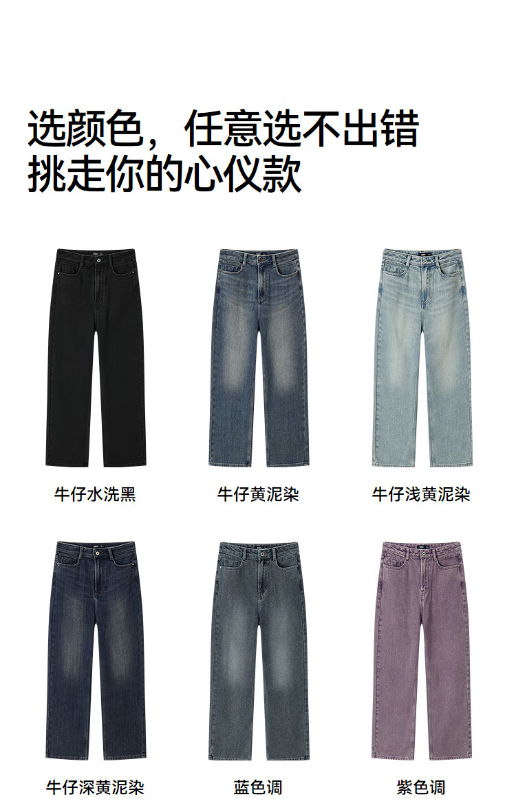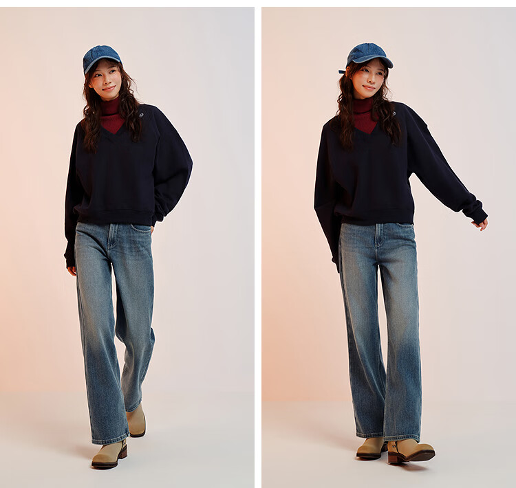 森马(Semir)森柔牛仔|牛仔裤女抓毛宽松阔腿裤冬季女士做旧长裤103724124001A