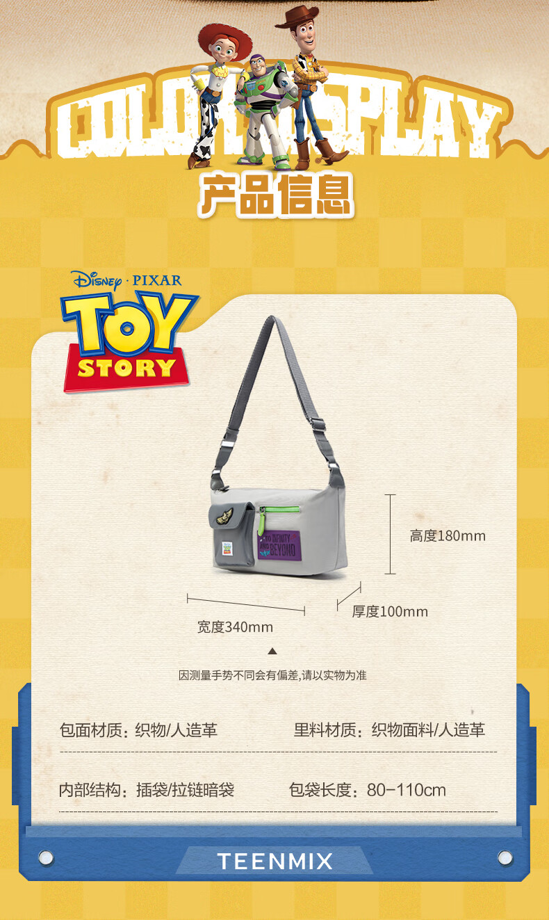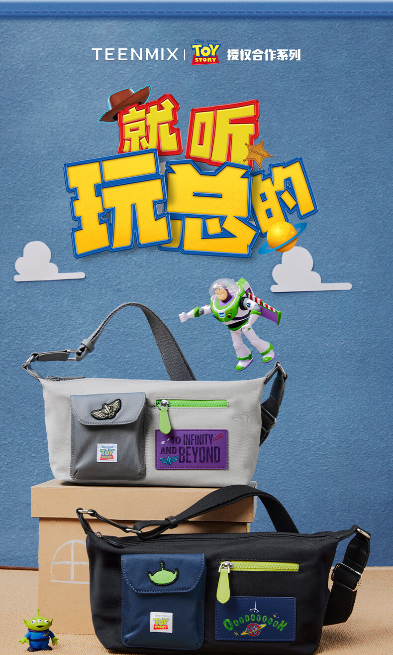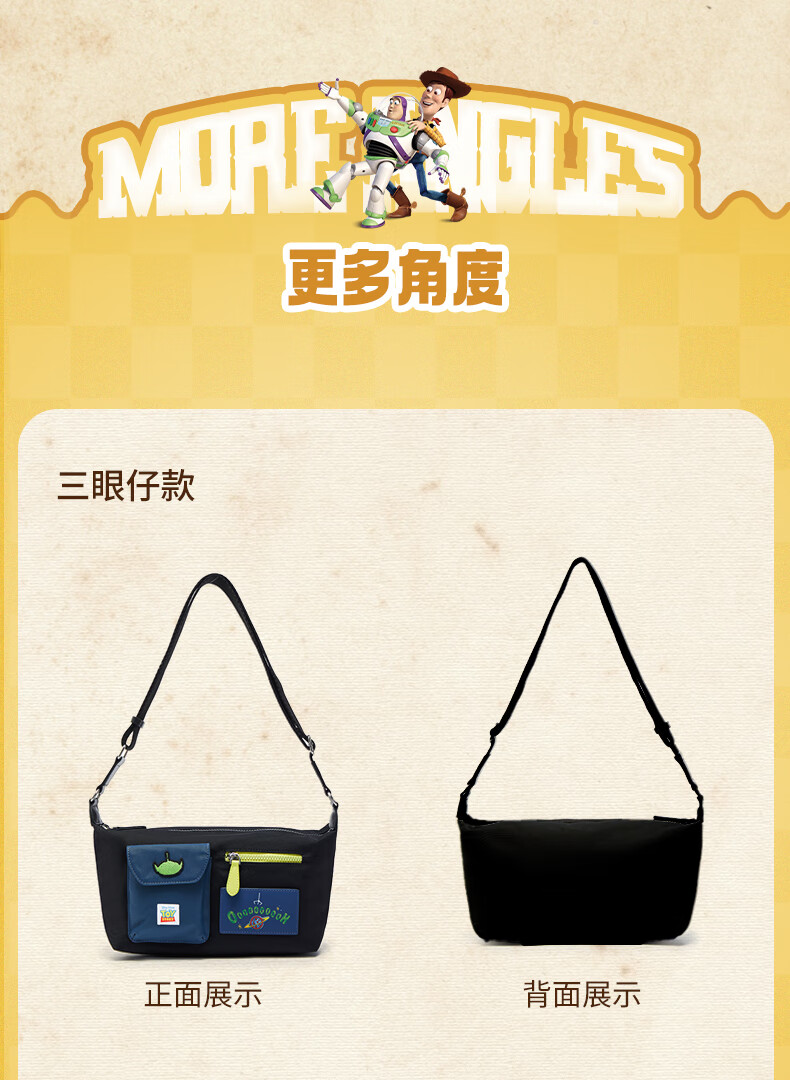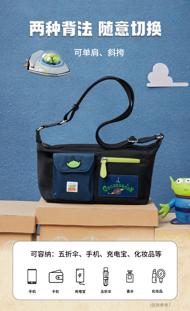 天美意玩具总动员联名户外休闲包包女邮差包单肩斜挎包2025秋新款 黑色 F