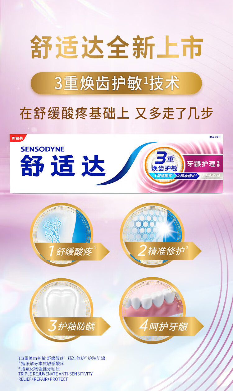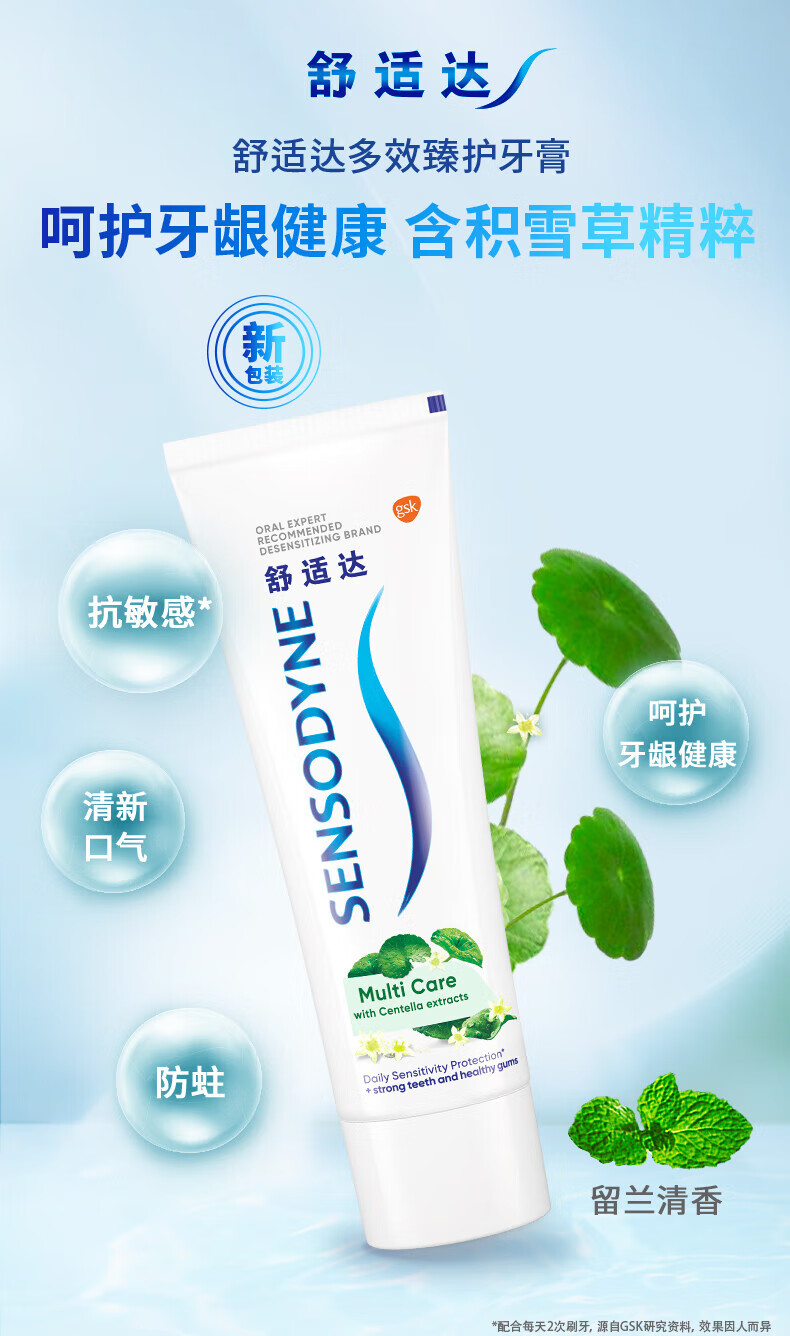 舒适达草本臻护牙龈护理牙膏 清新口气 劲速缓解牙敏感牙龈肿痛防蛀套装 牙龈护理100g*2+草本臻护100g