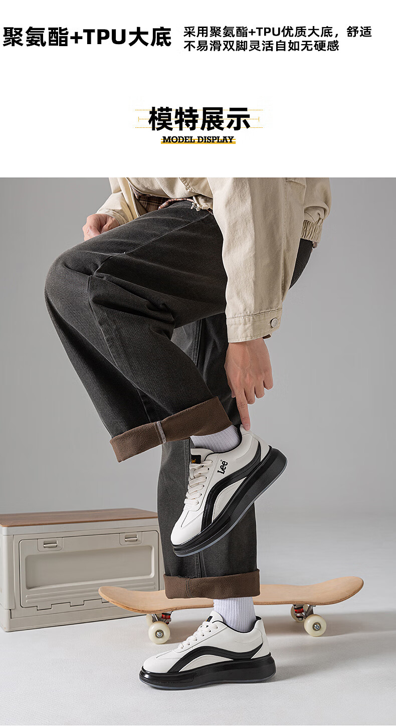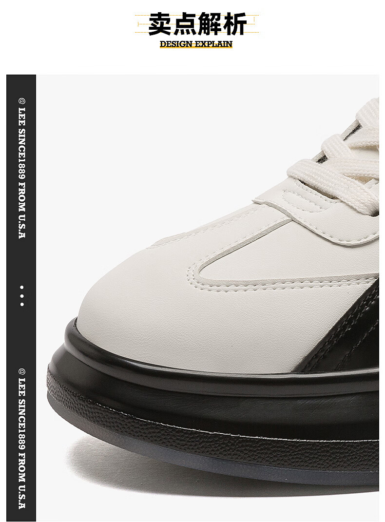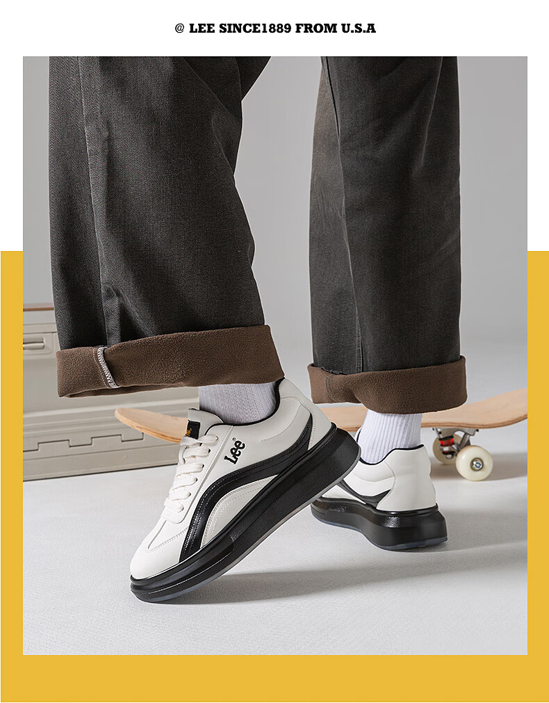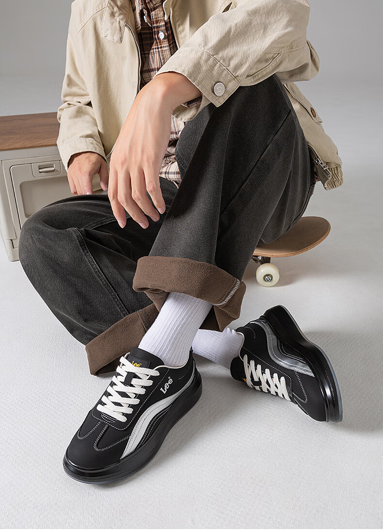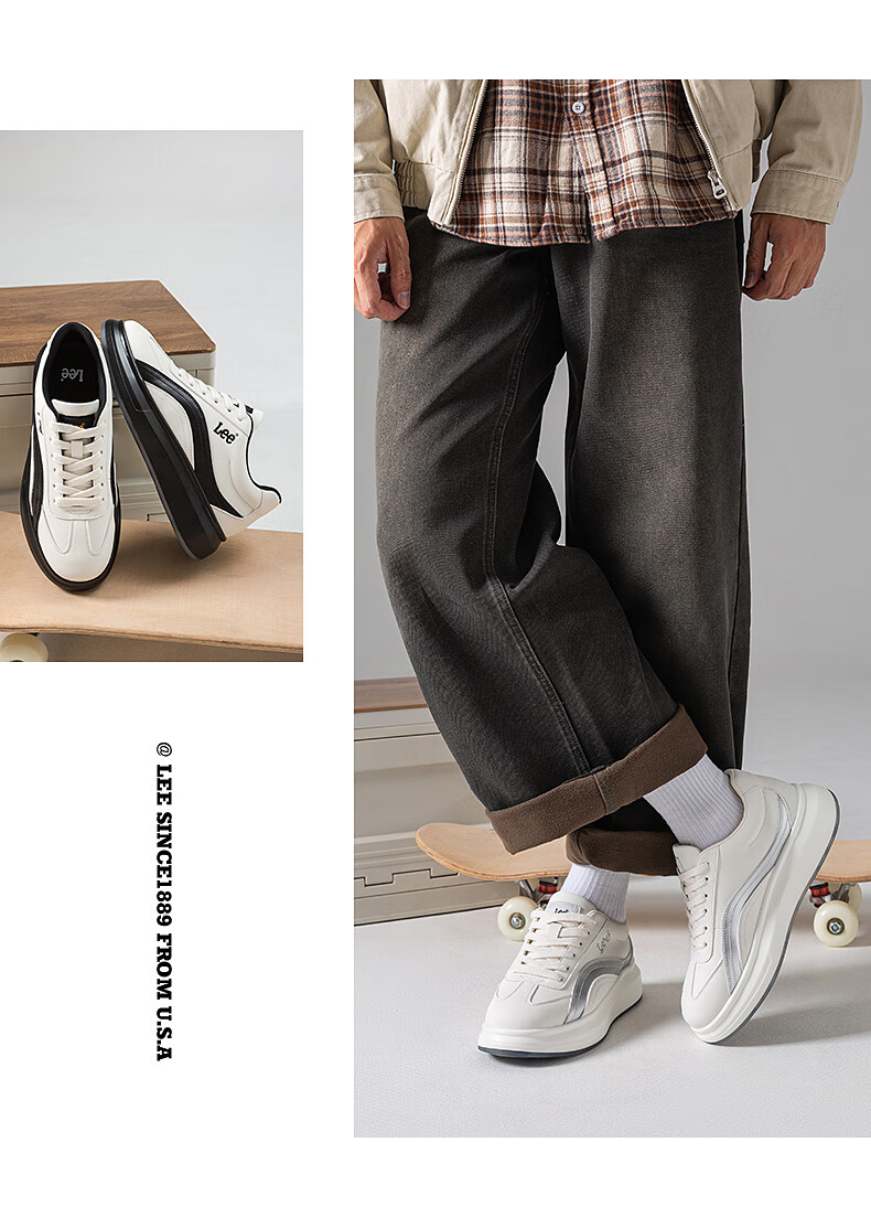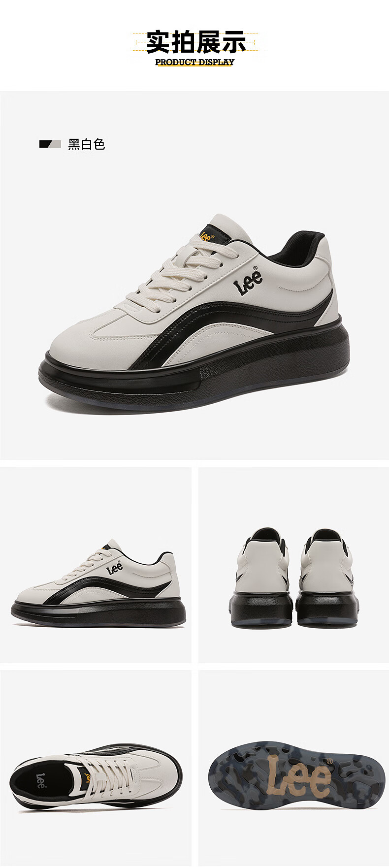 Lee男鞋秋季新款经典板鞋男士低帮潮流休闲鞋百搭厚底增高运动鞋子男 黑白 40 【偏大/请拍小一码】
