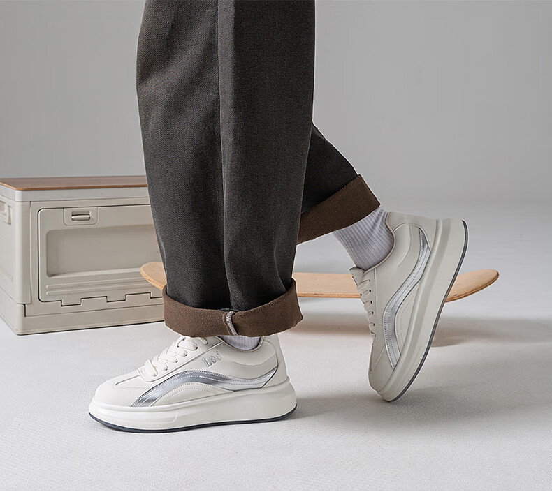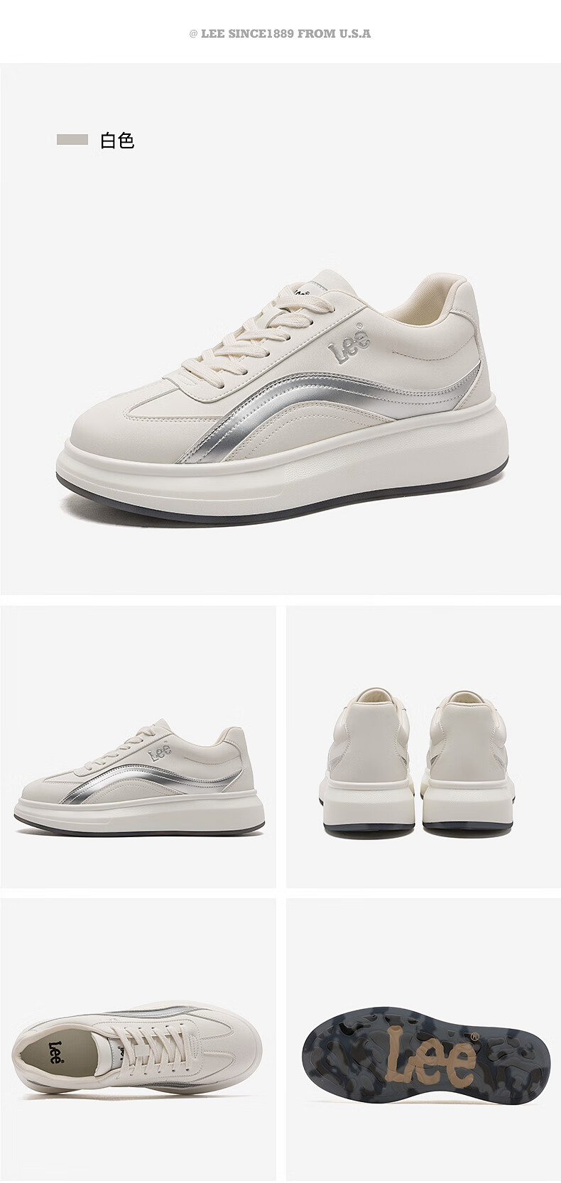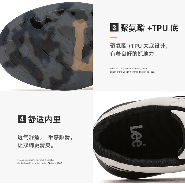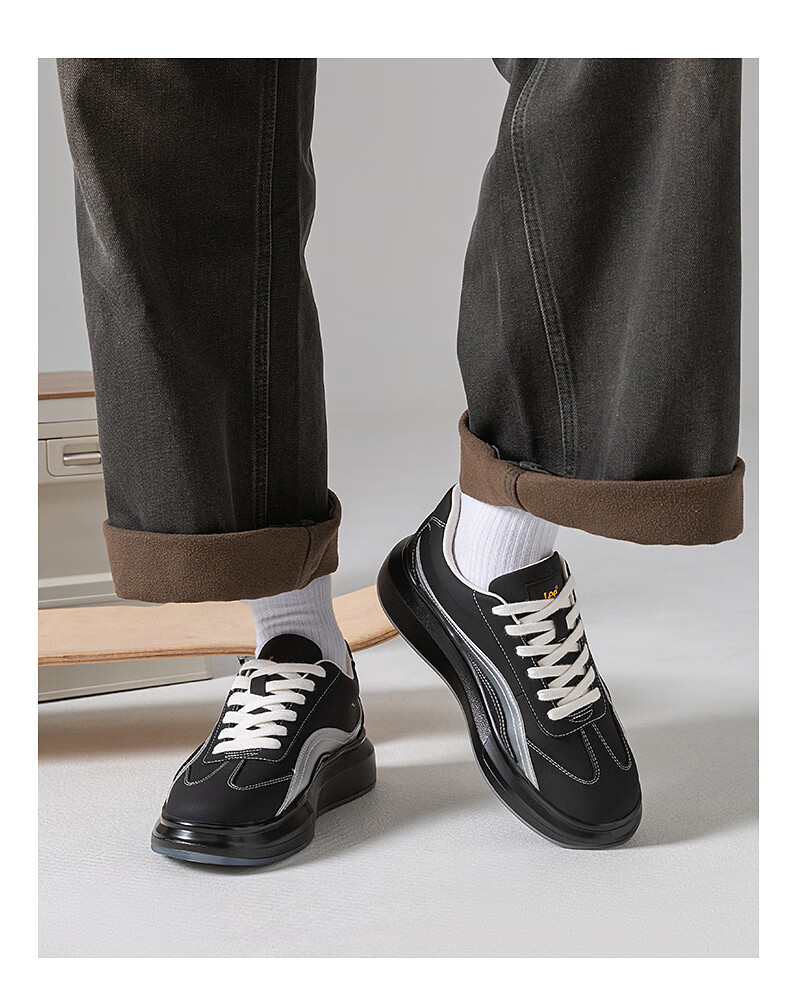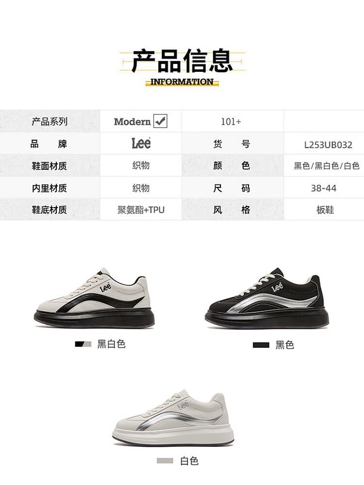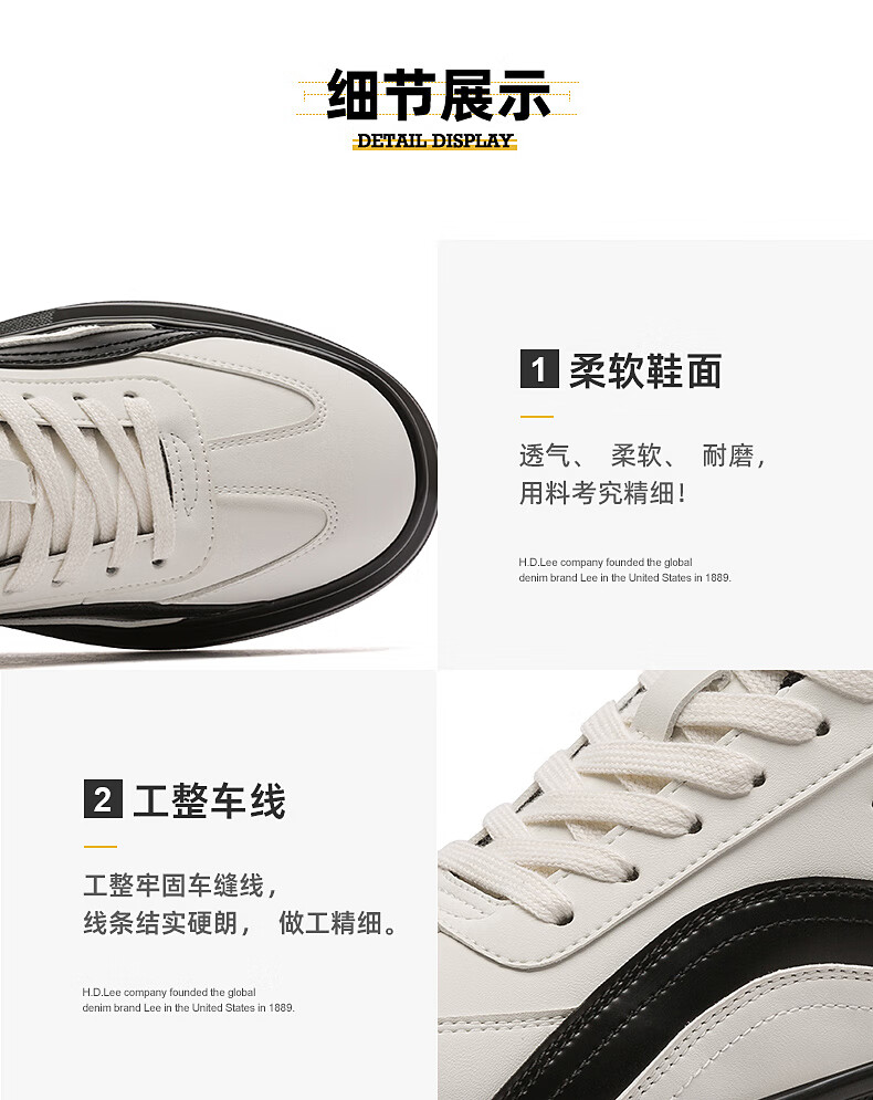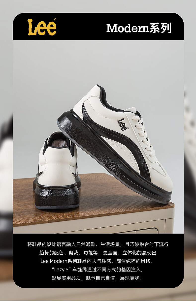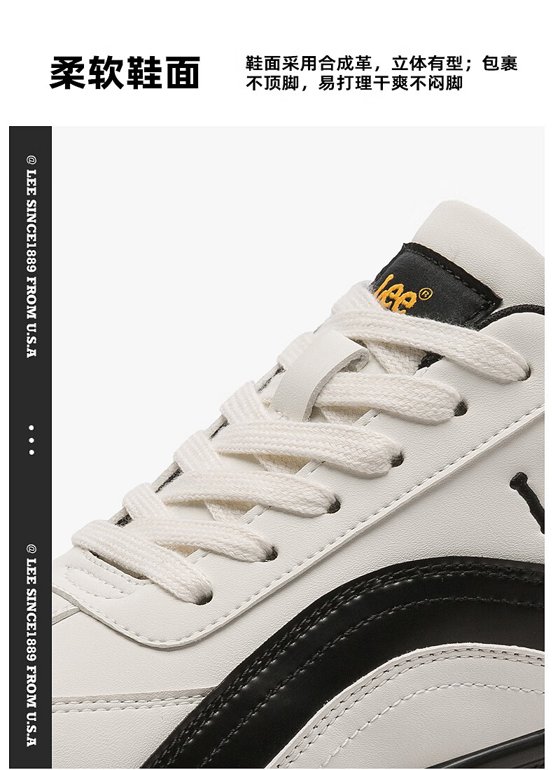 Lee男鞋秋季新款经典板鞋男士低帮潮流休闲鞋百搭厚底增高运动鞋子男 黑白 40 【偏大/请拍小一码】