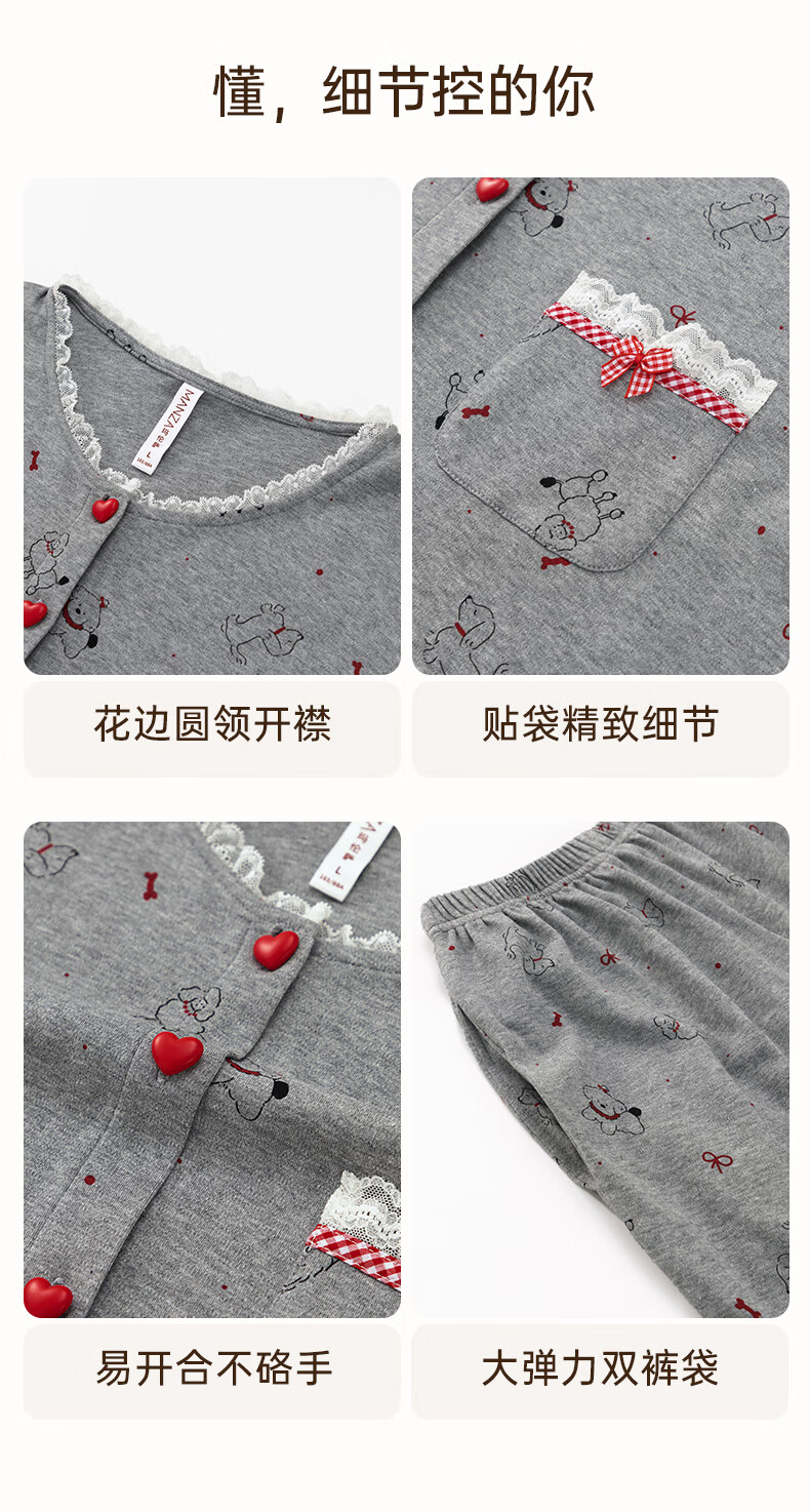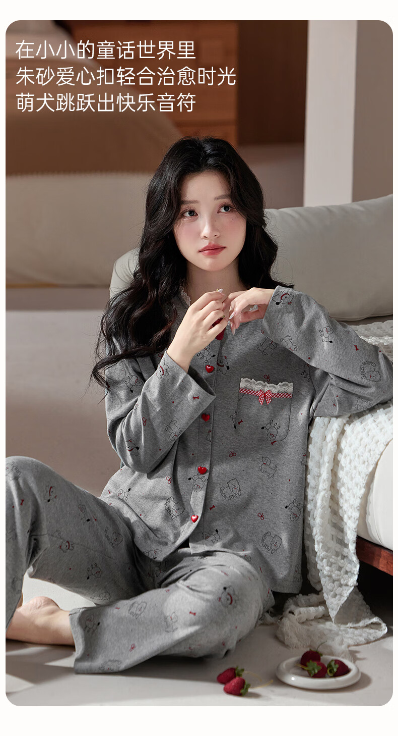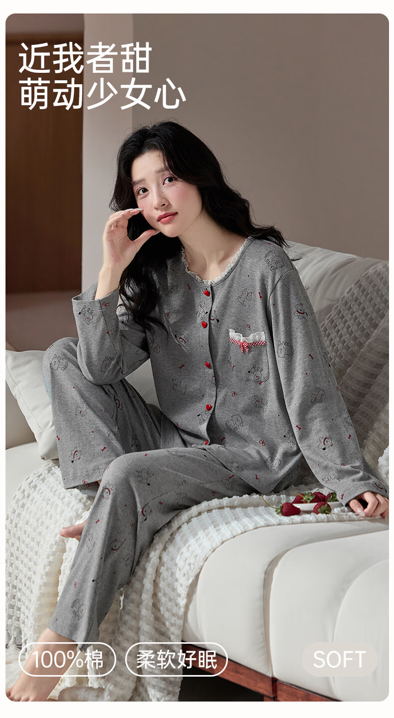 维多利亚的格调睡衣女春秋季长袖长裤2025新款云朵棉薄款可爱卡通夏天套装家居服 8835波点腊肠狗--云朵棉长袖长裤 M (80-95斤)