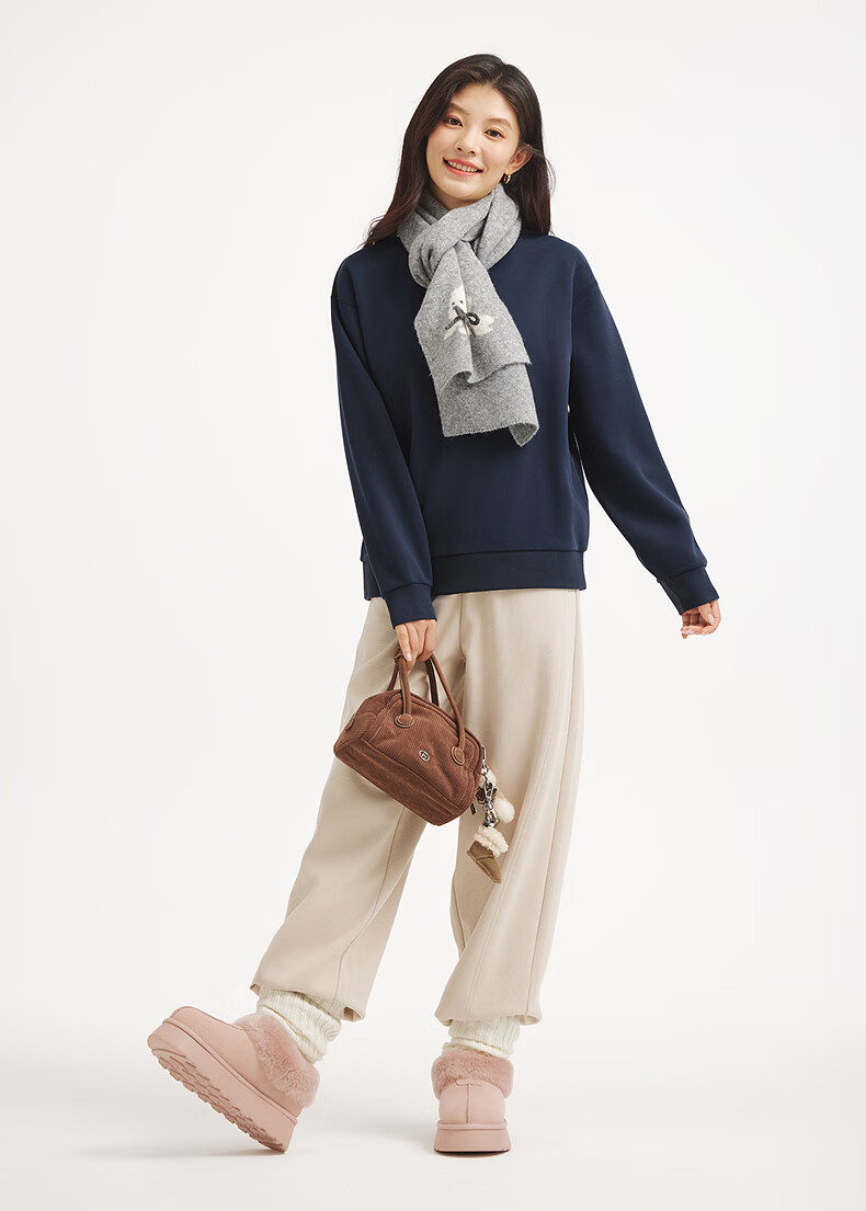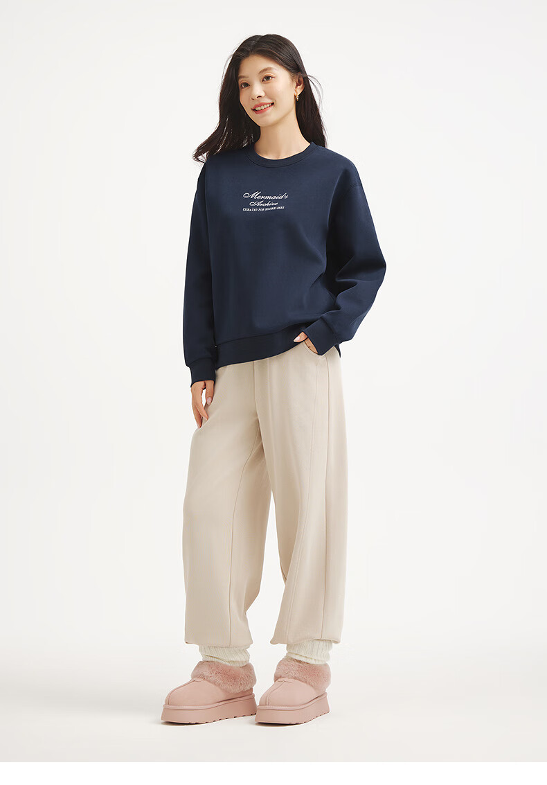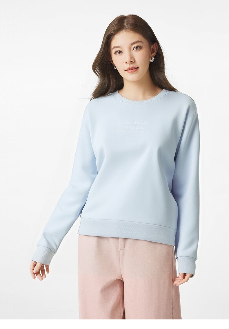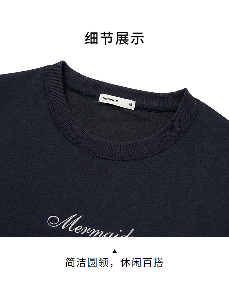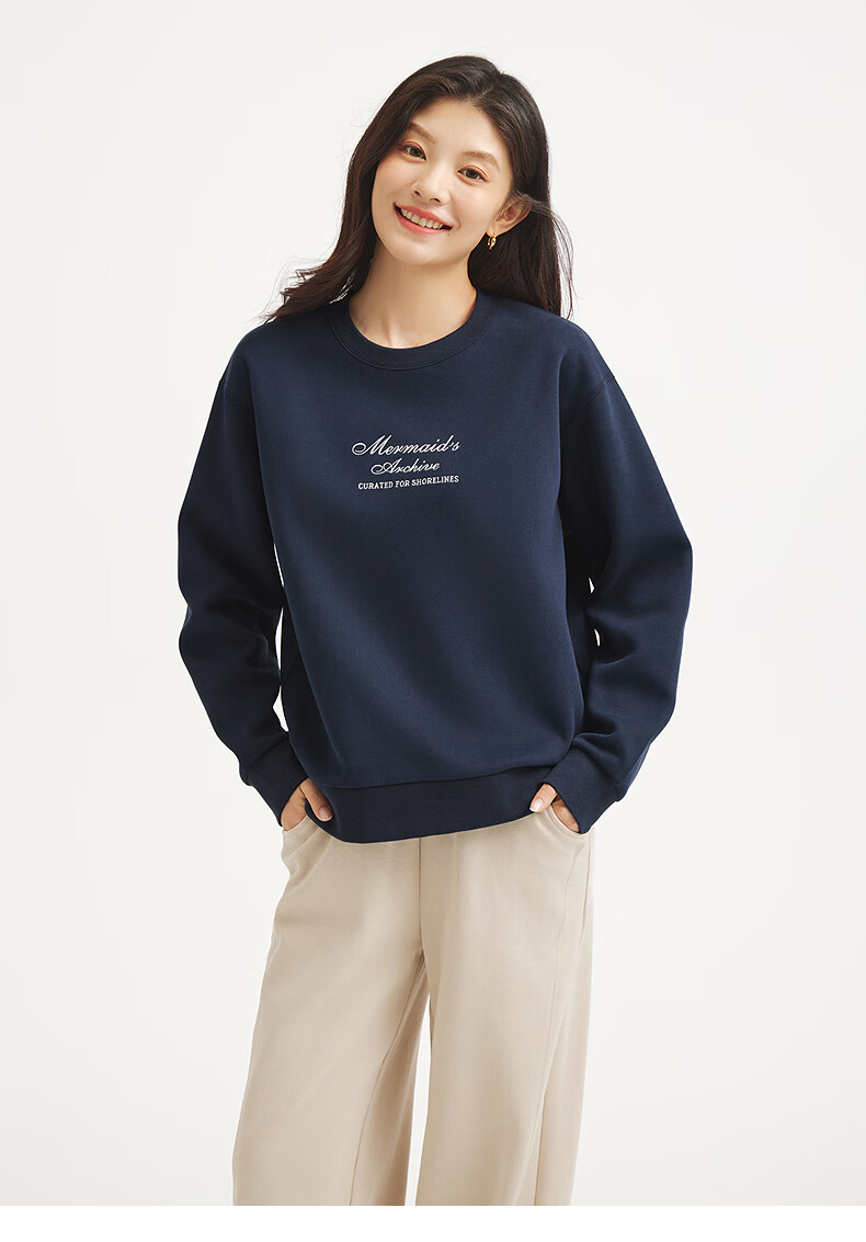 热风(Hotwind)女士套头圆领卫衣打底衫2025年秋季新款字母刺绣圆领卫衣上衣 29藏青兰 XL
