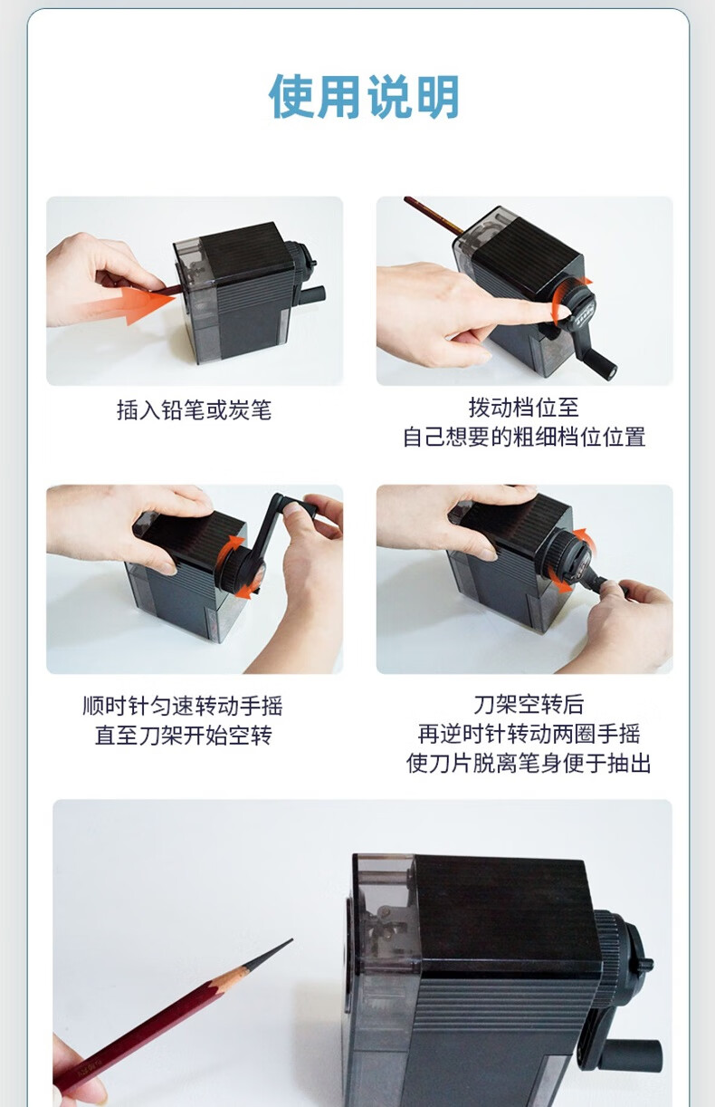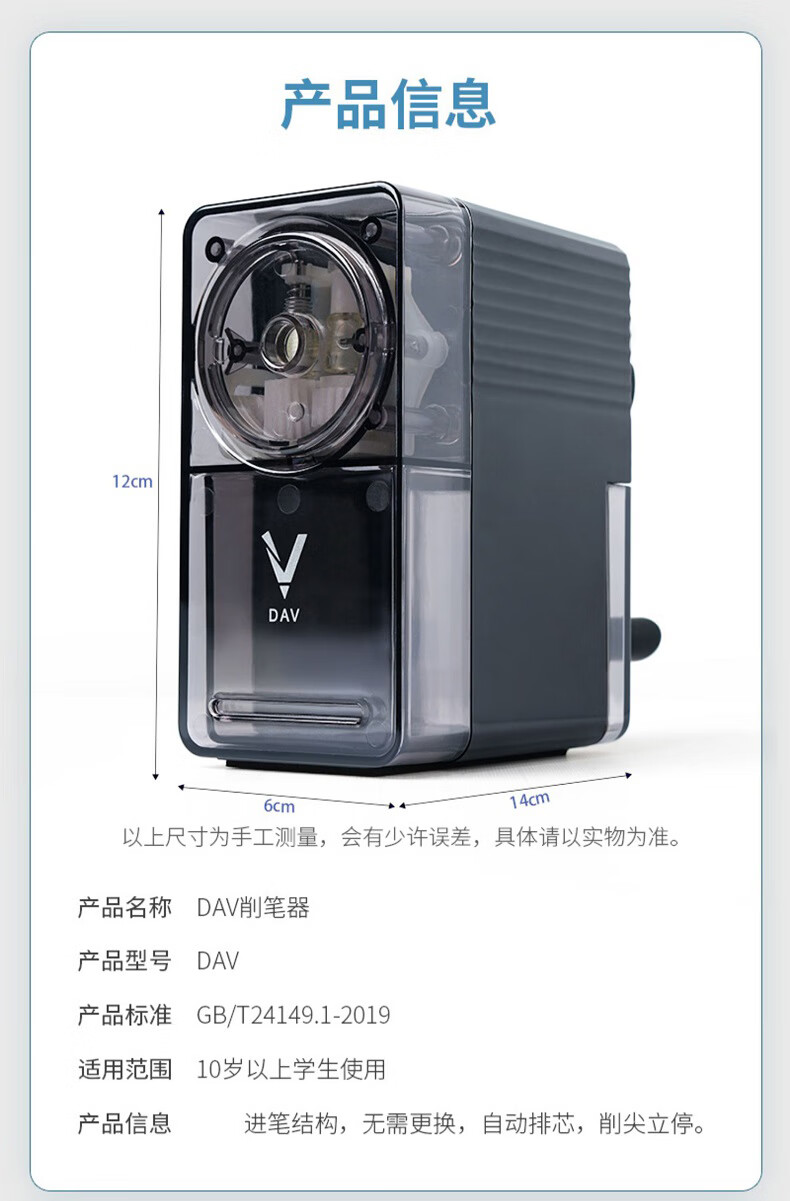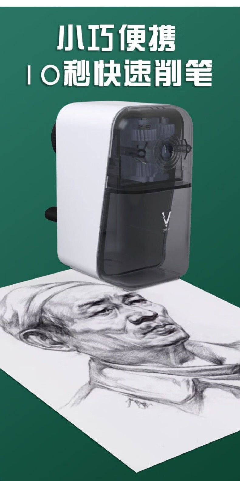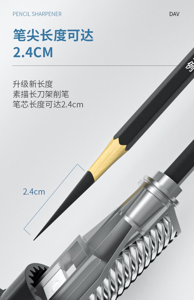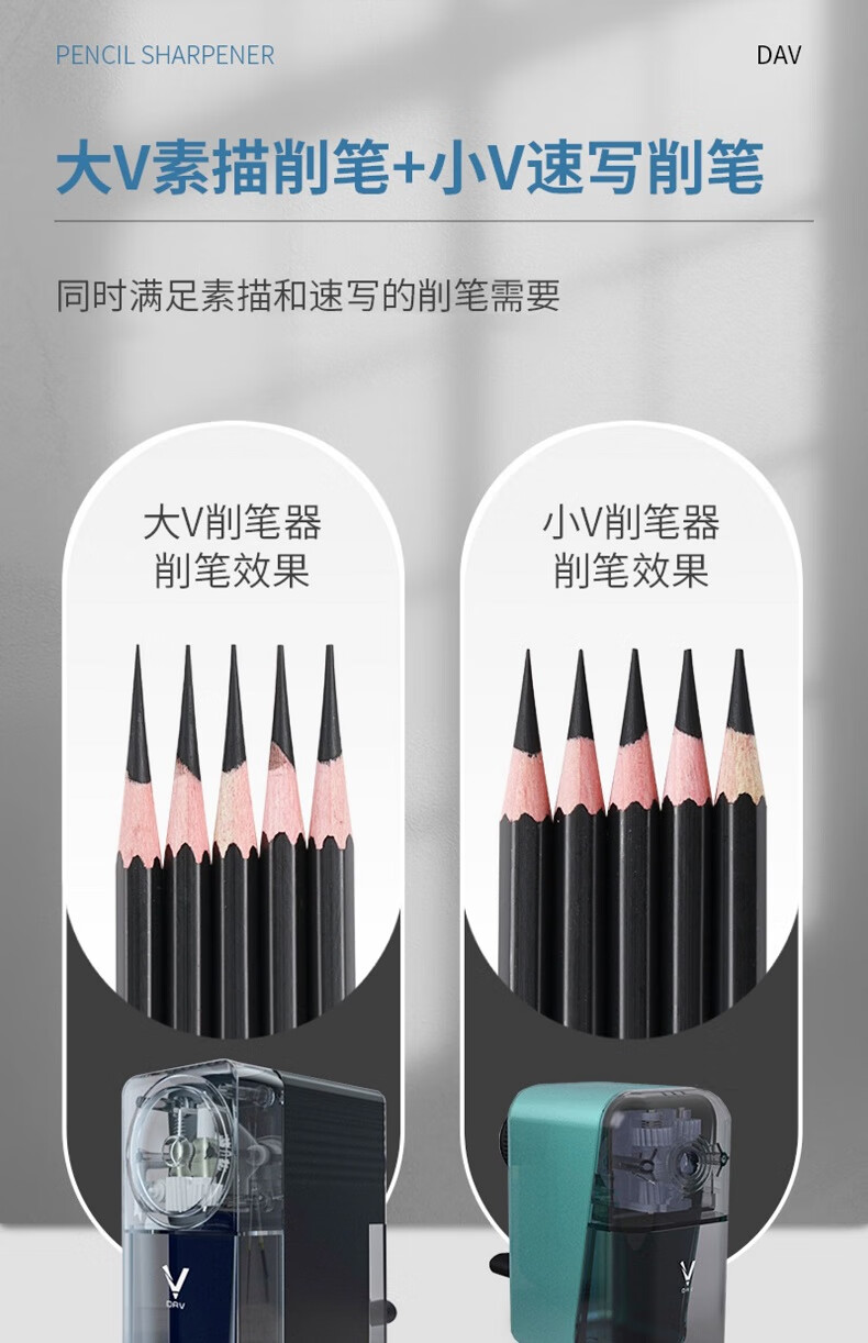 大VDAV速写削笔器素描削笔刀美术用手摇卷笔刀学生削笔刀 速写款【小V灰白】美院联名款 削笔器