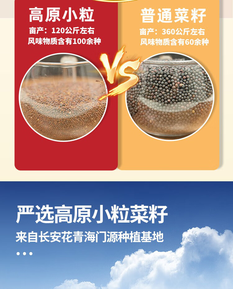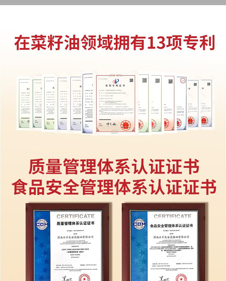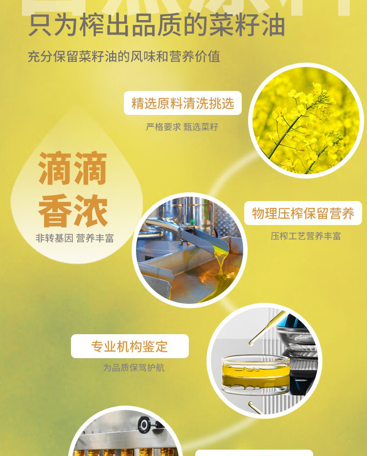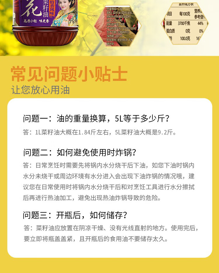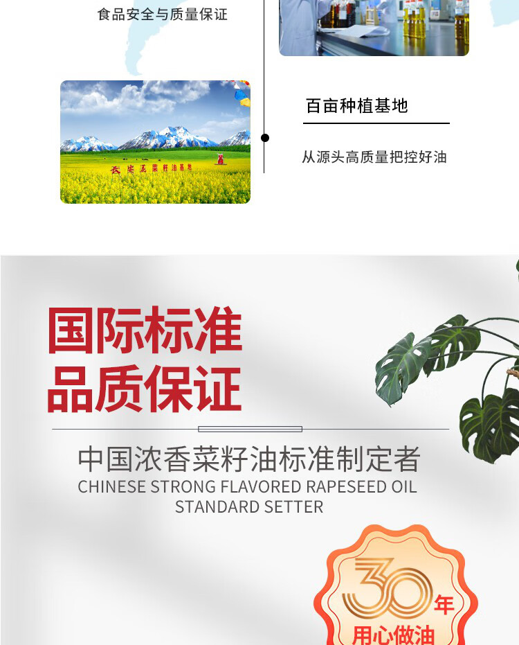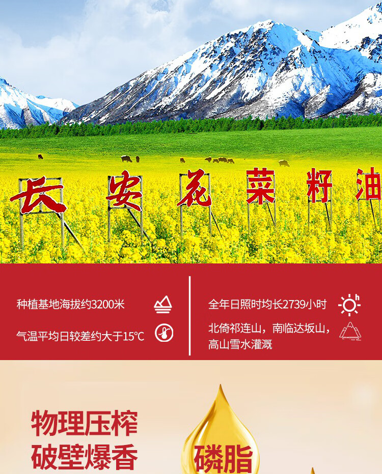 长安花 特香菜籽油5L 食用油 物理压榨 高原小粒 非转基因 陕西风味