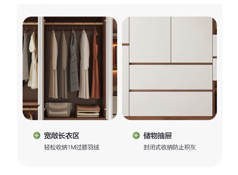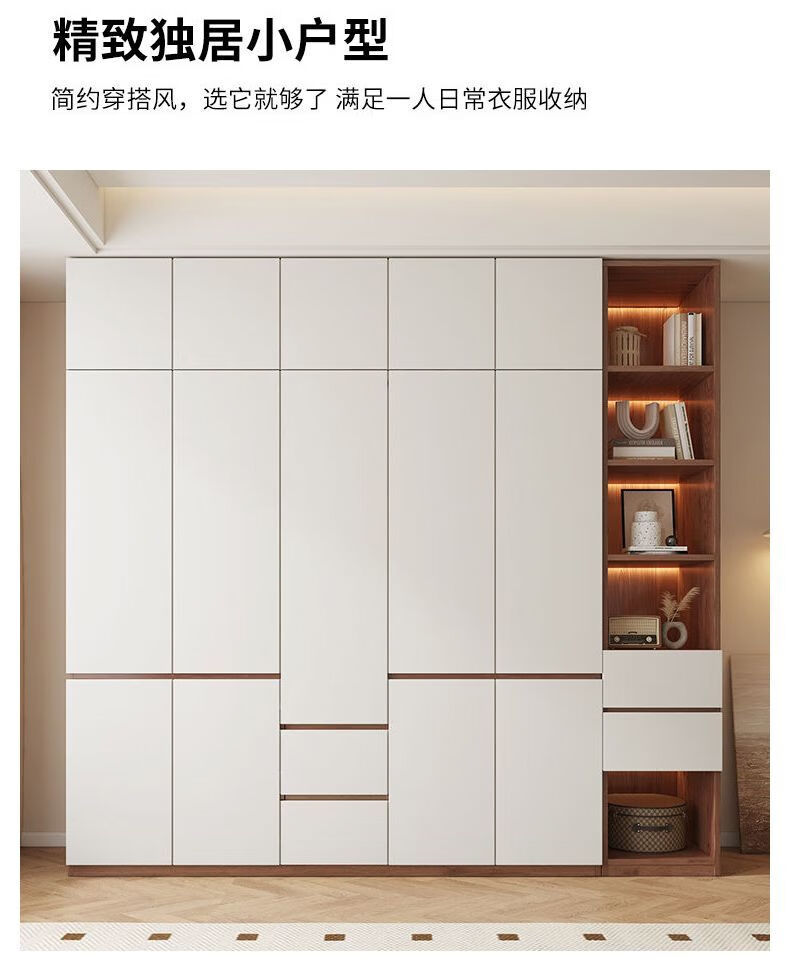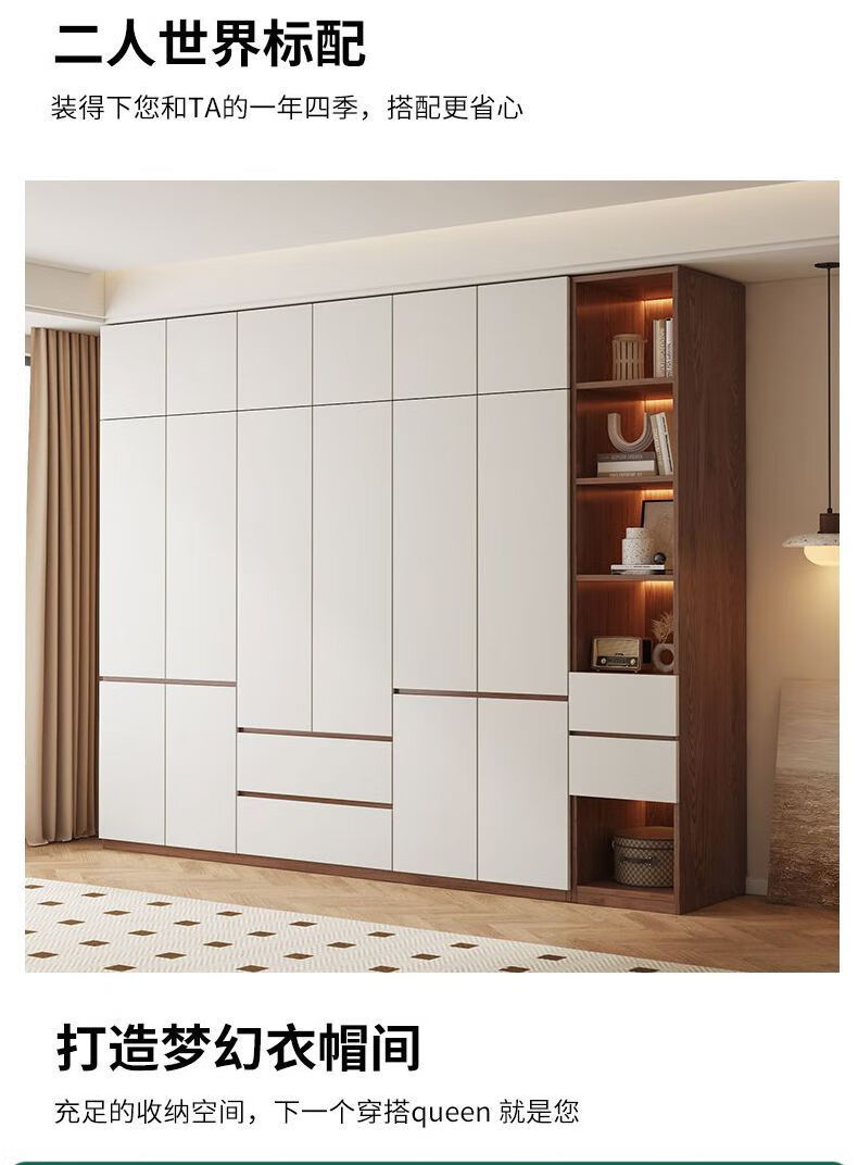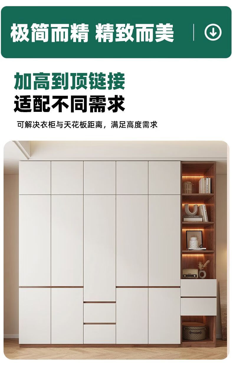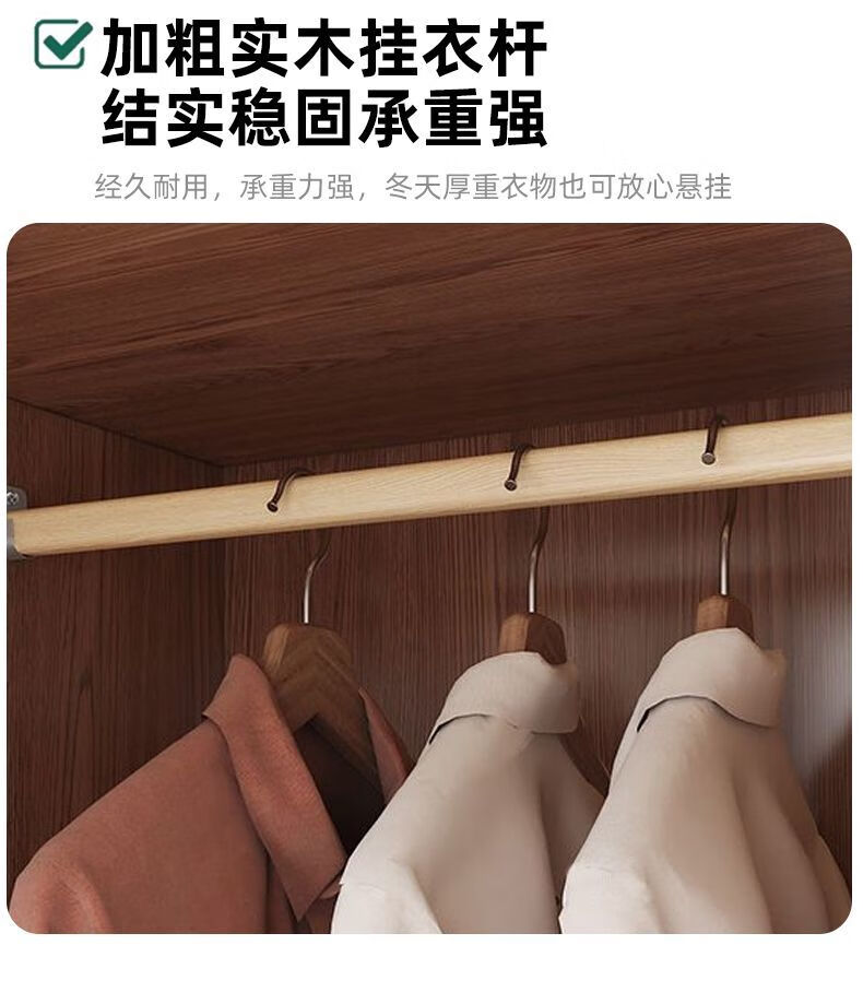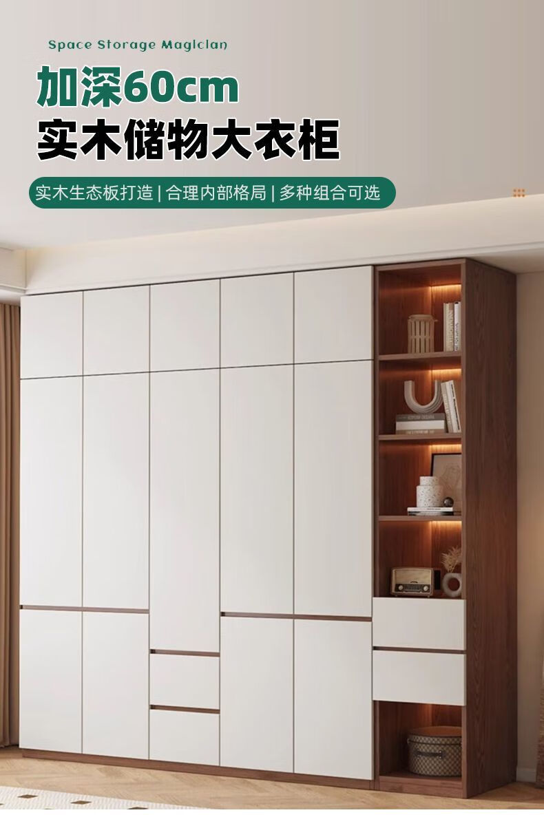 睦锦缘实木大衣柜卧室家用平开门带抽屉组合现代简易收纳储物柜 长240宽60高240cm衣柜+边柜-实木