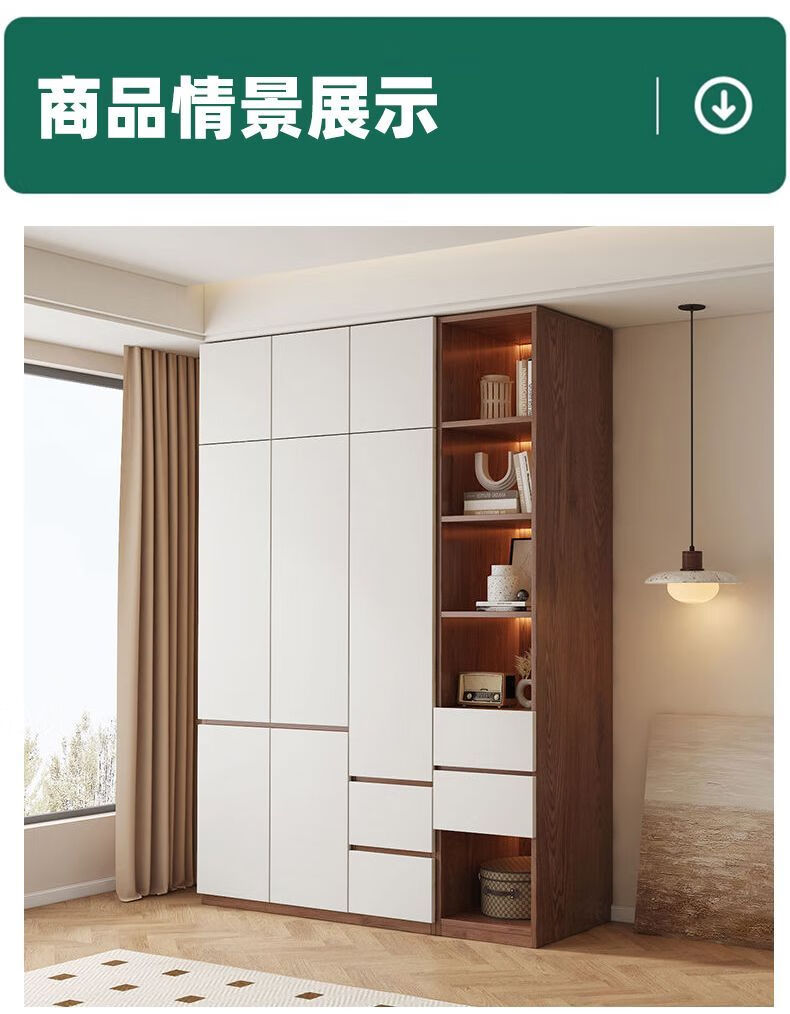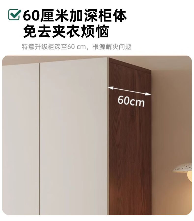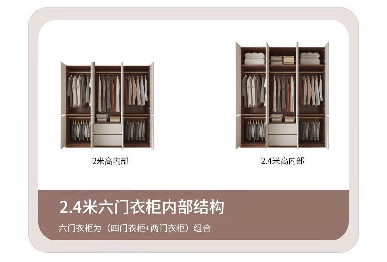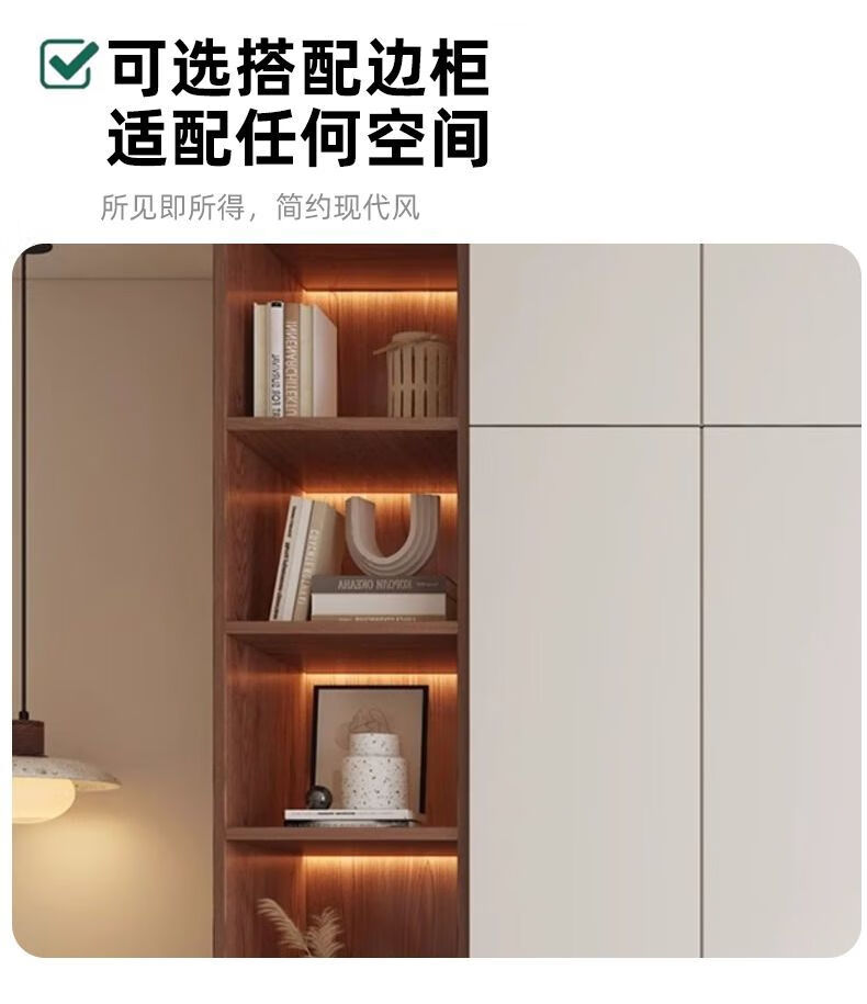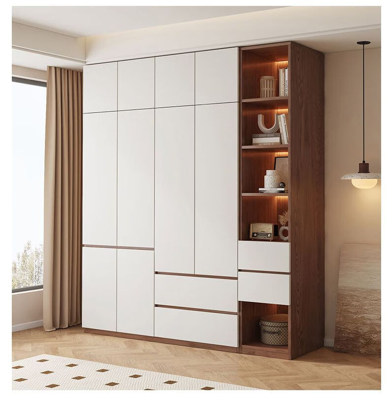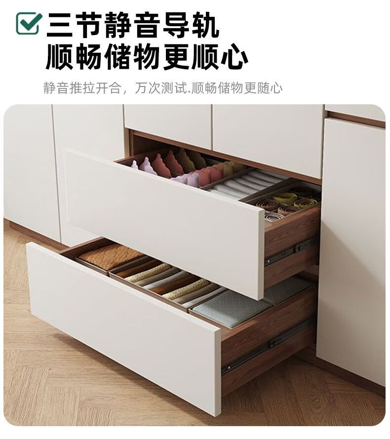 睦锦缘实木大衣柜卧室家用平开门带抽屉组合现代简易收纳储物柜 长240宽60高240cm衣柜+边柜-实木