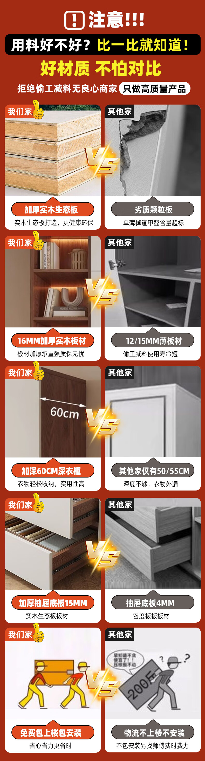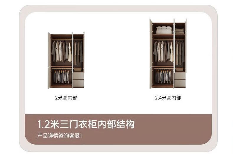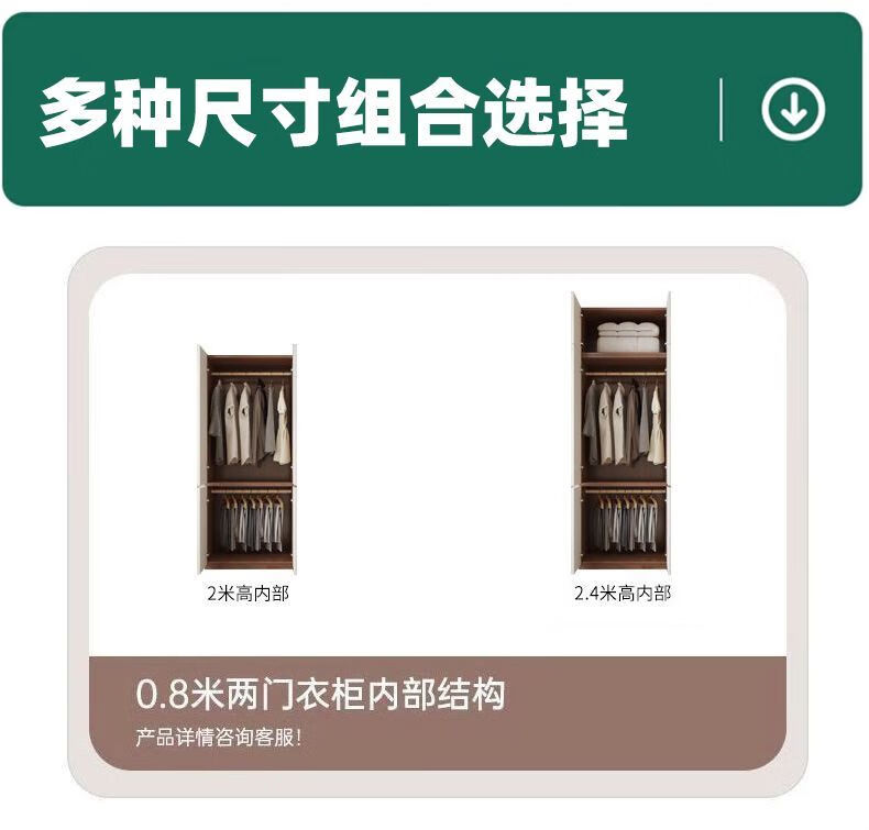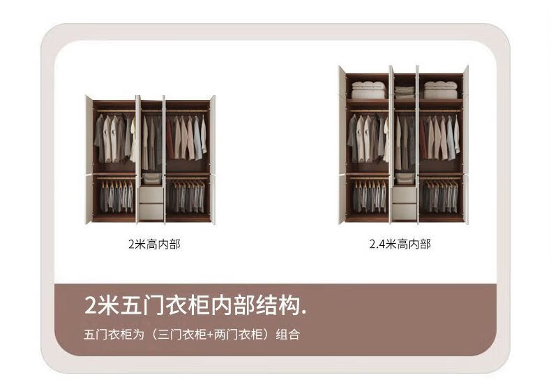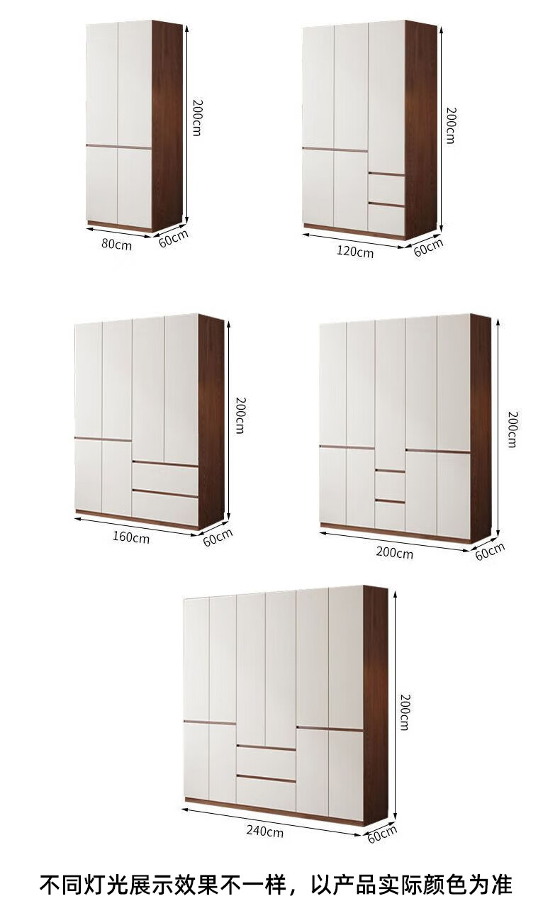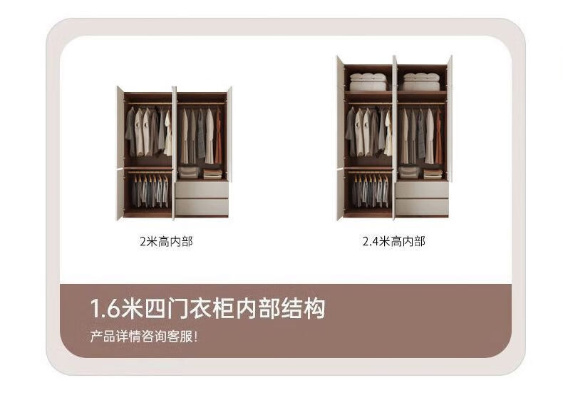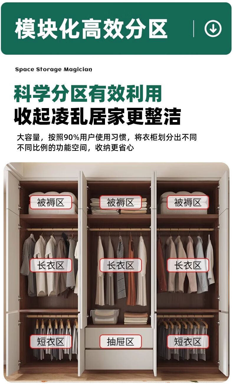 睦锦缘实木大衣柜卧室家用平开门带抽屉组合现代简易收纳储物柜 长240宽60高240cm衣柜+边柜-实木