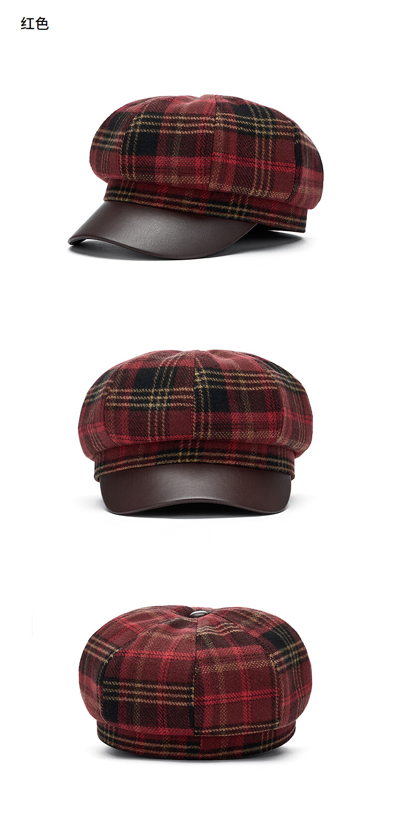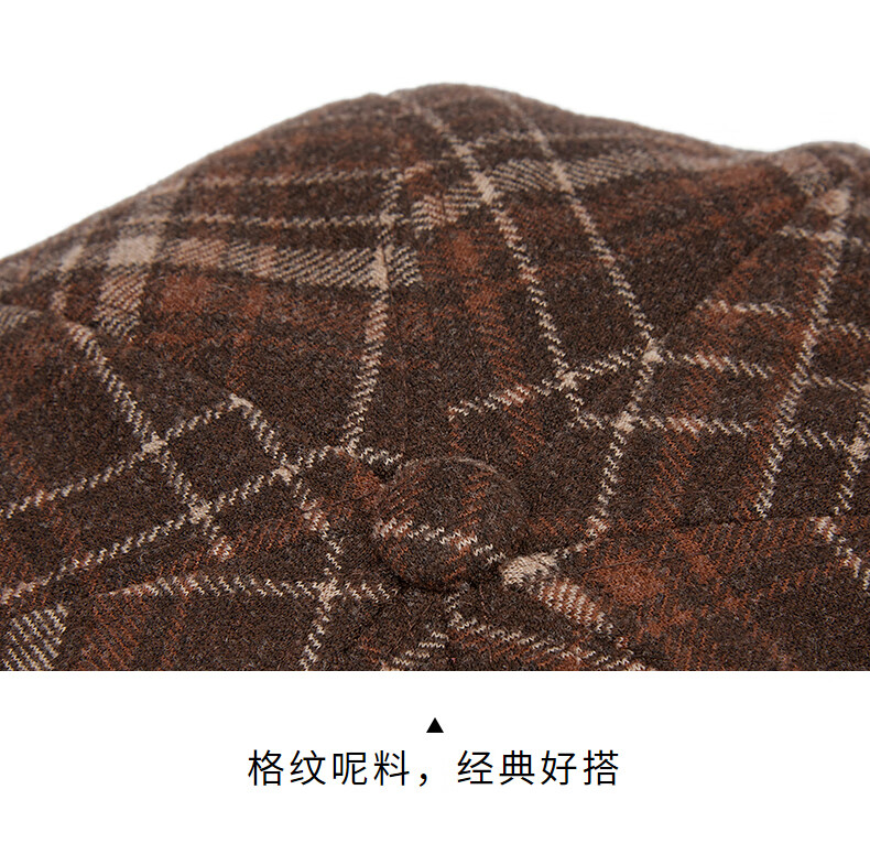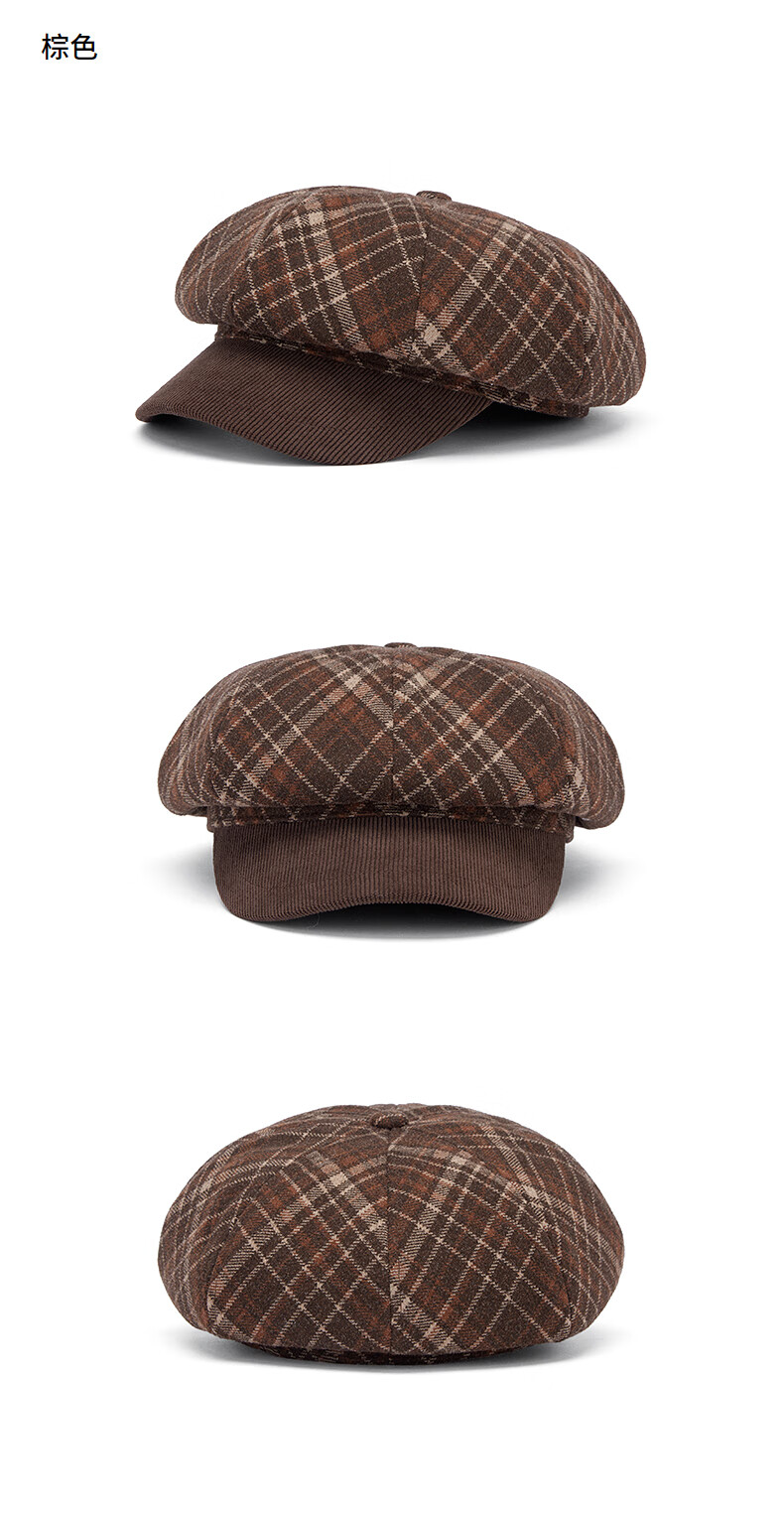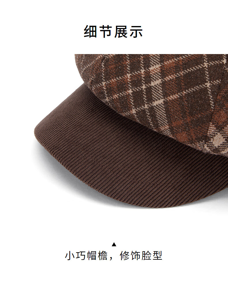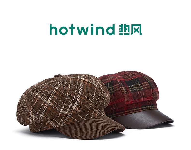 热风(Hotwind)【商场同款】女帽子格纹八角帽2025年冬新款拼接复古显脸小鸭舌帽 02棕色 F