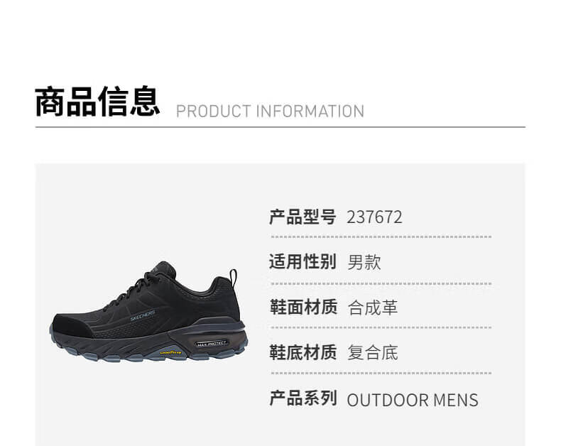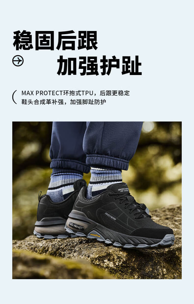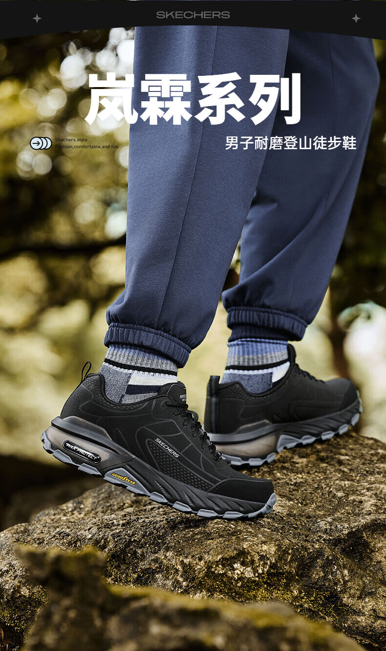 斯凯奇(SKECHERS)岚霖男鞋秋季户外登山鞋徒步鞋舒适耐磨厚底增高运动鞋237672