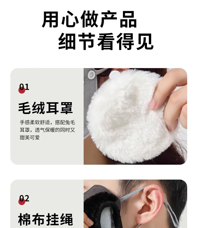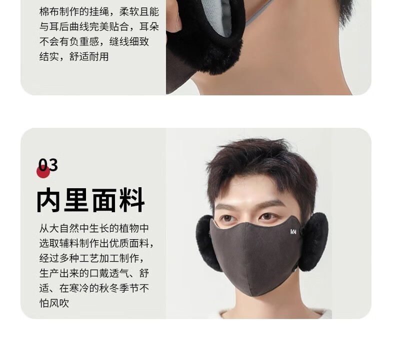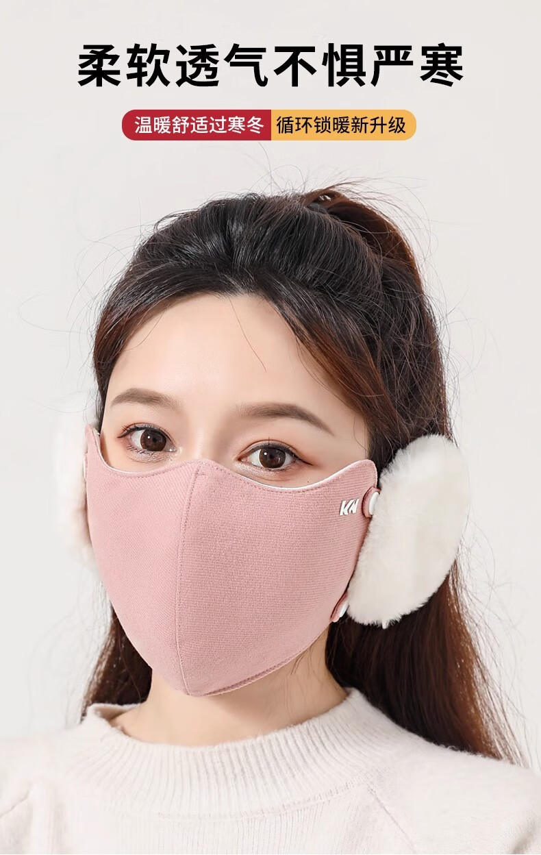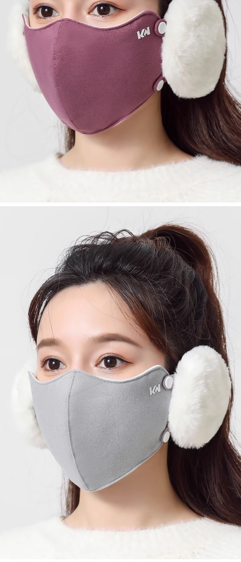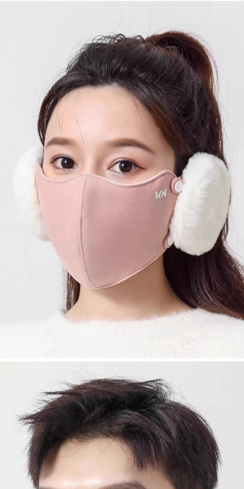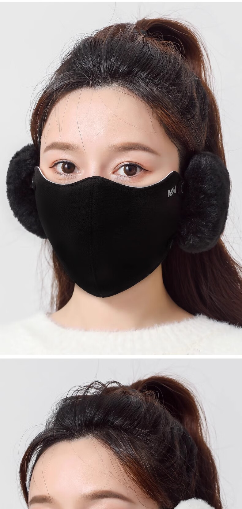 AILUKI日本口罩女冬季防风防冻外出骑行防寒加厚保暖骑车男女护耳可拆卸 家用升级-加大扫把头 男女通用2个装