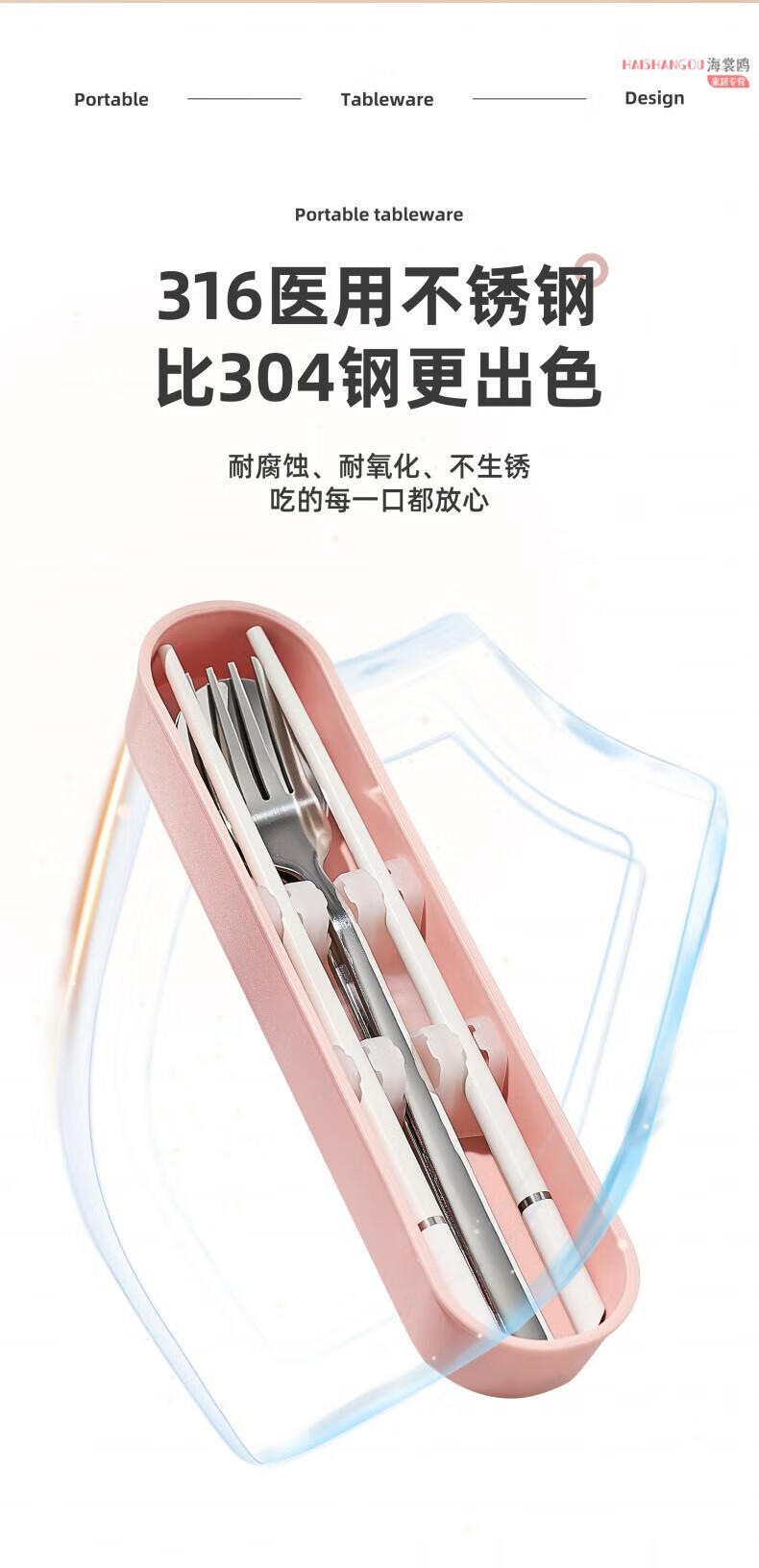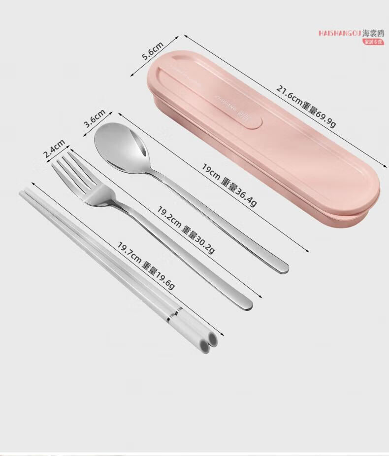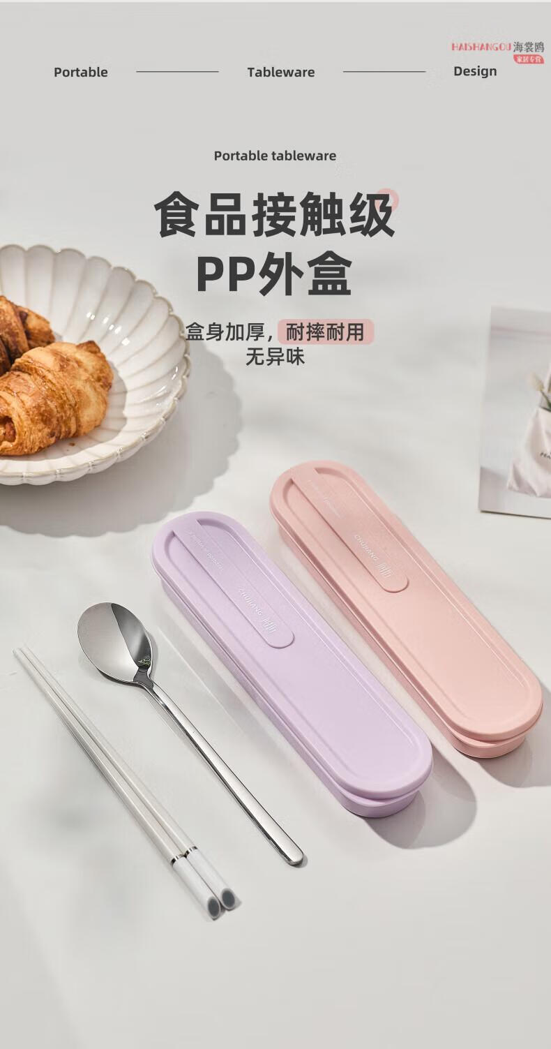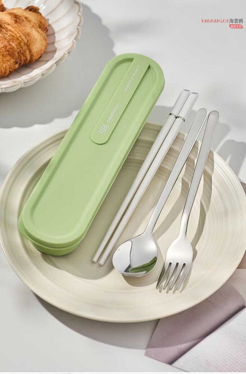 AILUKI日本316L不锈钢筷子勺子便携餐具套装一人用上班族餐具三件套收纳 黑色-【筷子勺子+餐具盒】 3件套