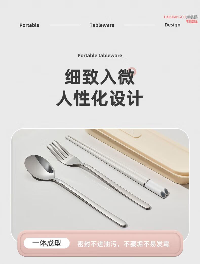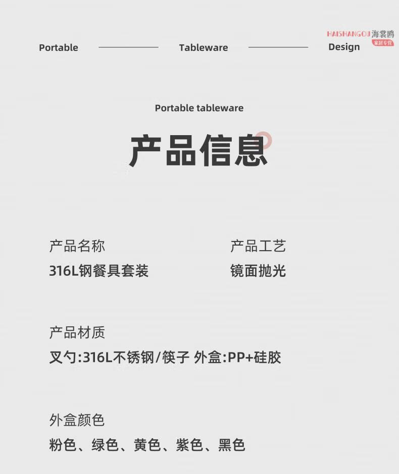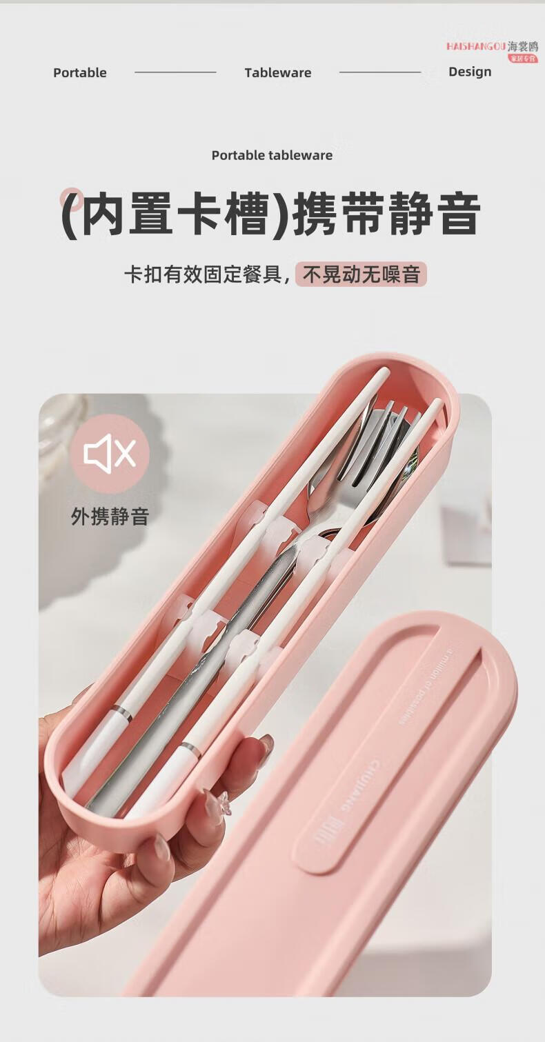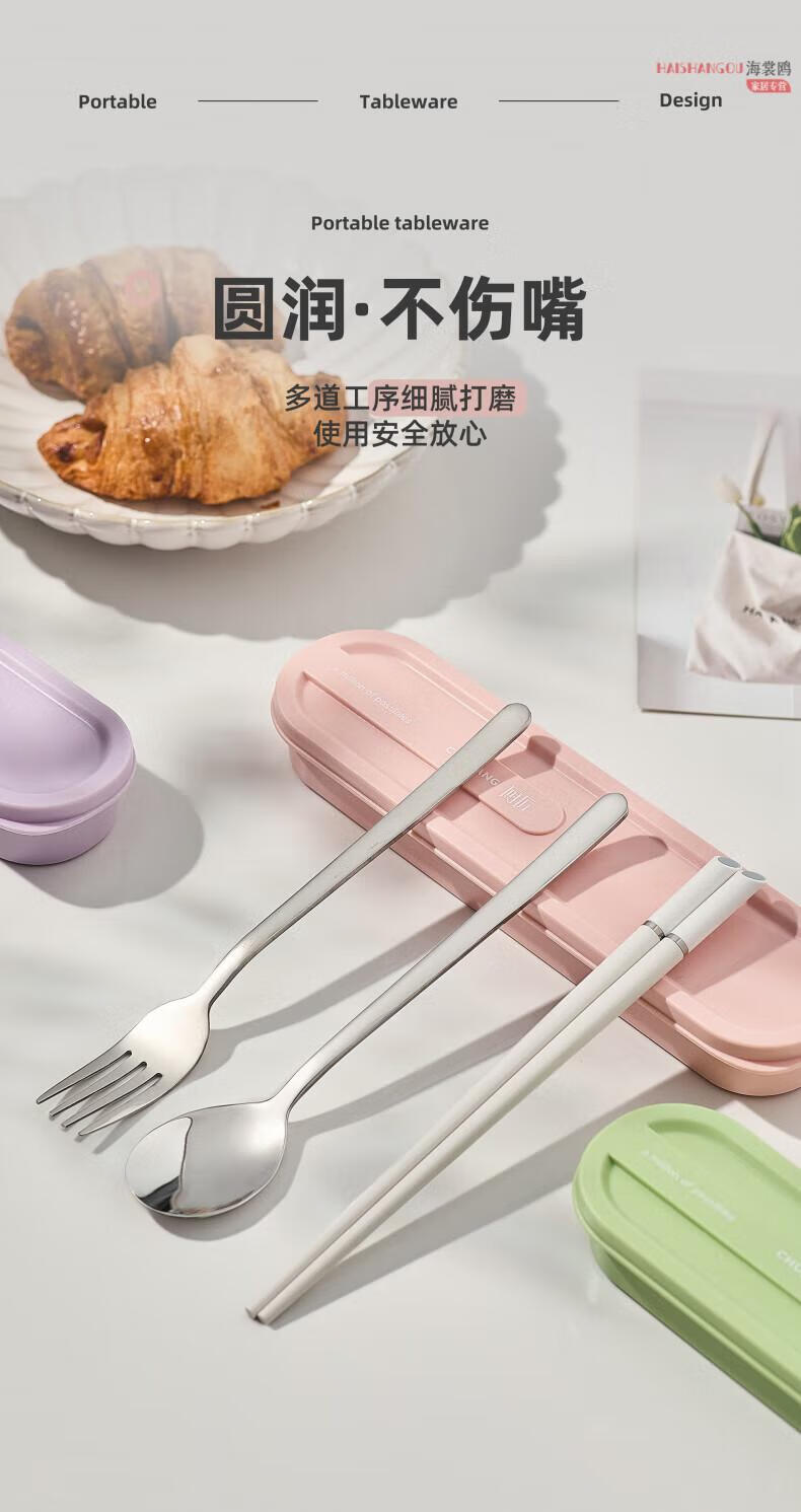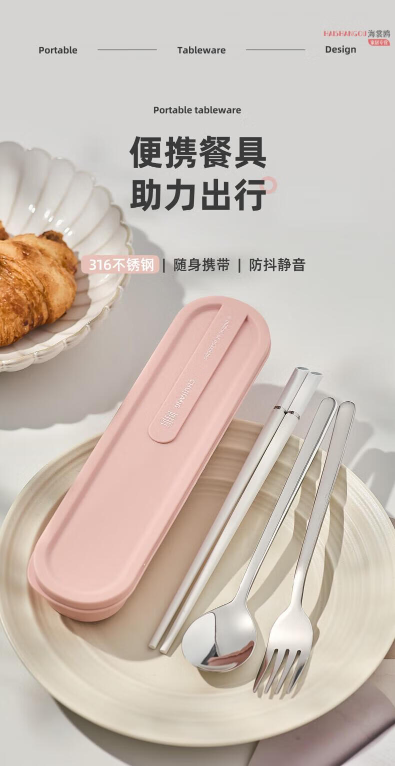 AILUKI日本316L不锈钢筷子勺子便携餐具套装一人用上班族餐具三件套收纳 黑色-【筷子勺子+餐具盒】 3件套