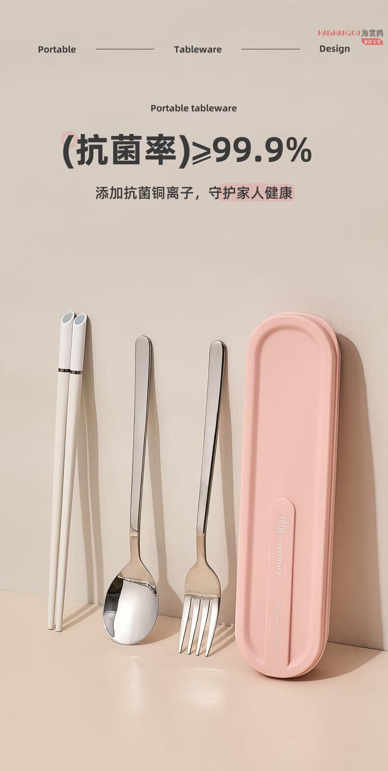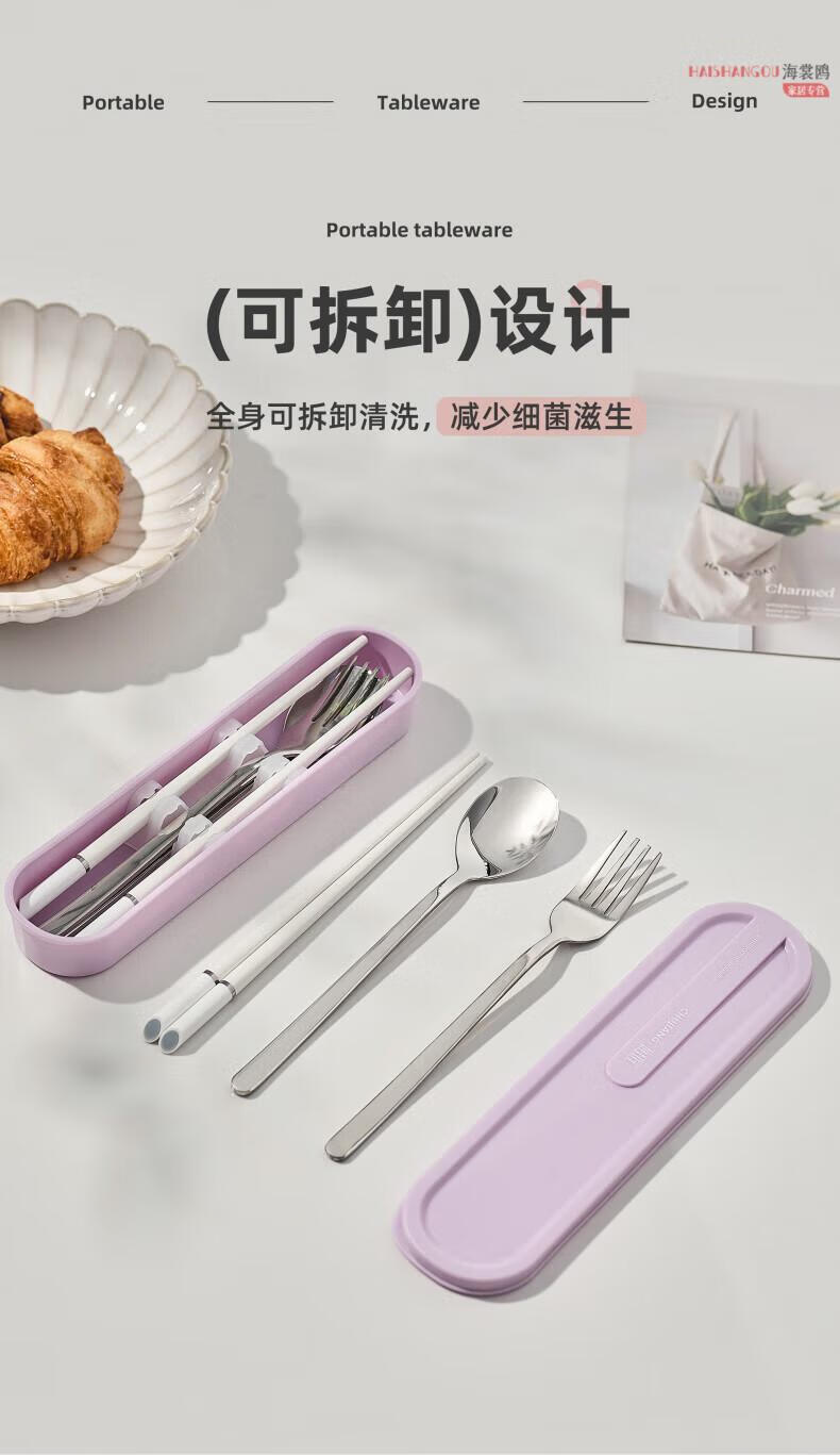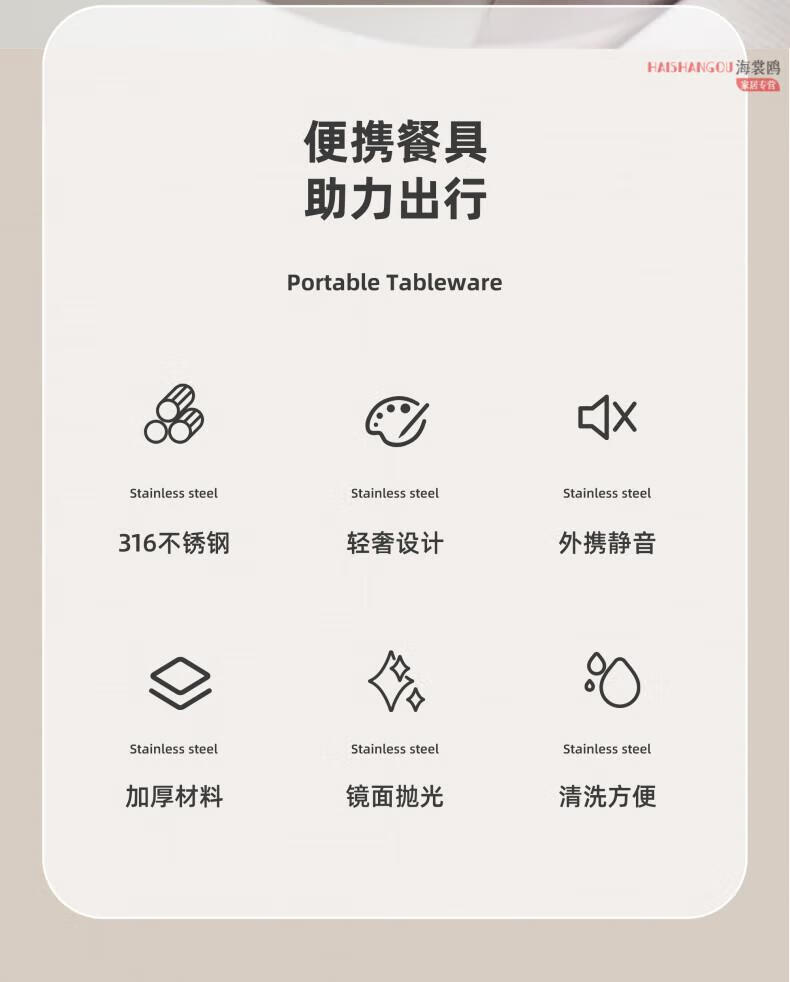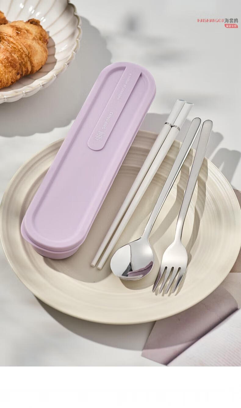 AILUKI日本316L不锈钢筷子勺子便携餐具套装一人用上班族餐具三件套收纳 黑色-【筷子勺子+餐具盒】 3件套