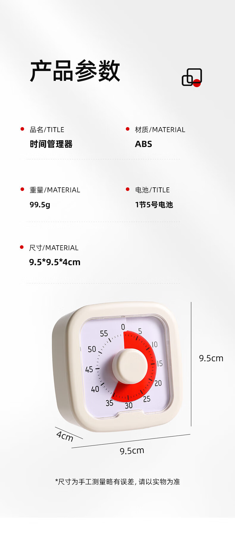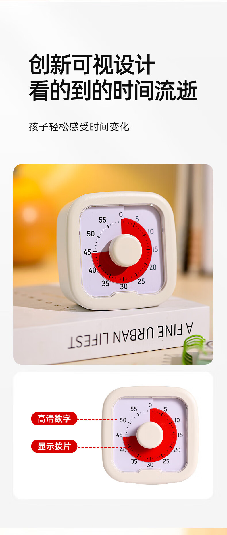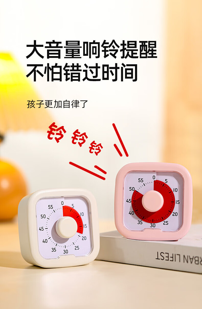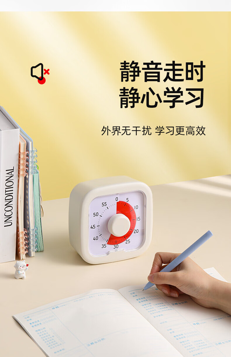 DEATKN德国高端钟表桌面小型可视化计时器儿童学习小学生自律时间管理闹钟定时提醒器 米白色走时【含5号电池】